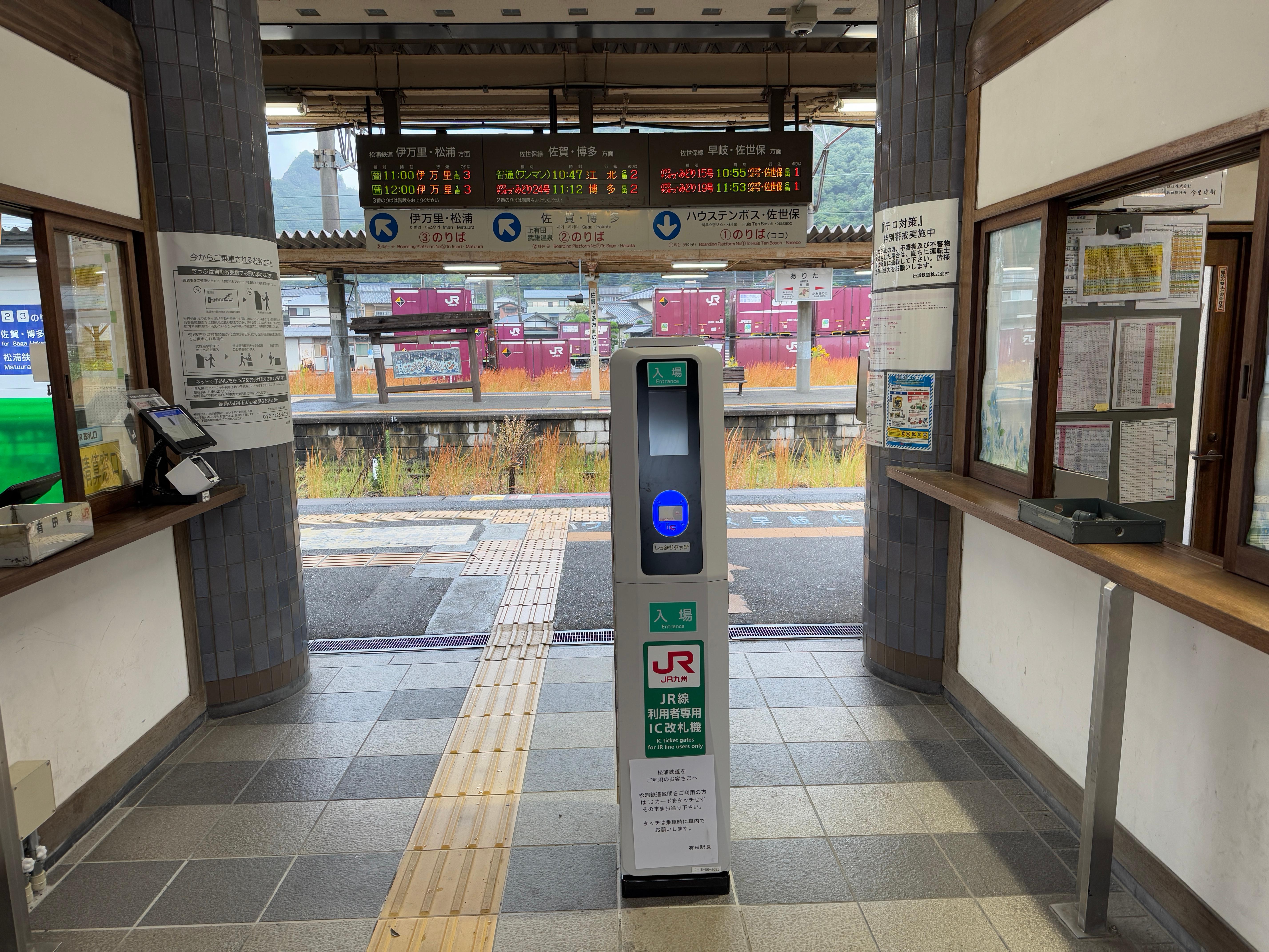 마츠우라 철도 열차를 이용할 승객은 아리타역 개찰구를 그냥 통과해 여기서 카드를 찍어야 합니다.