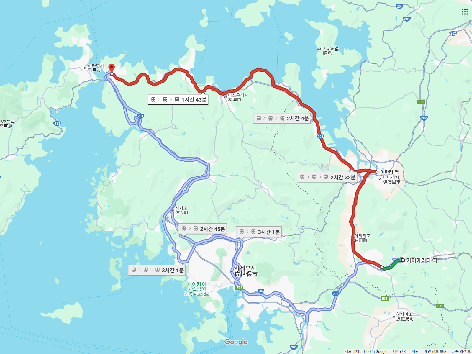 아리타역에서 니시큐슈선의 반대쪽 끝인 사세보역까지 바로 갈 수가 없어서