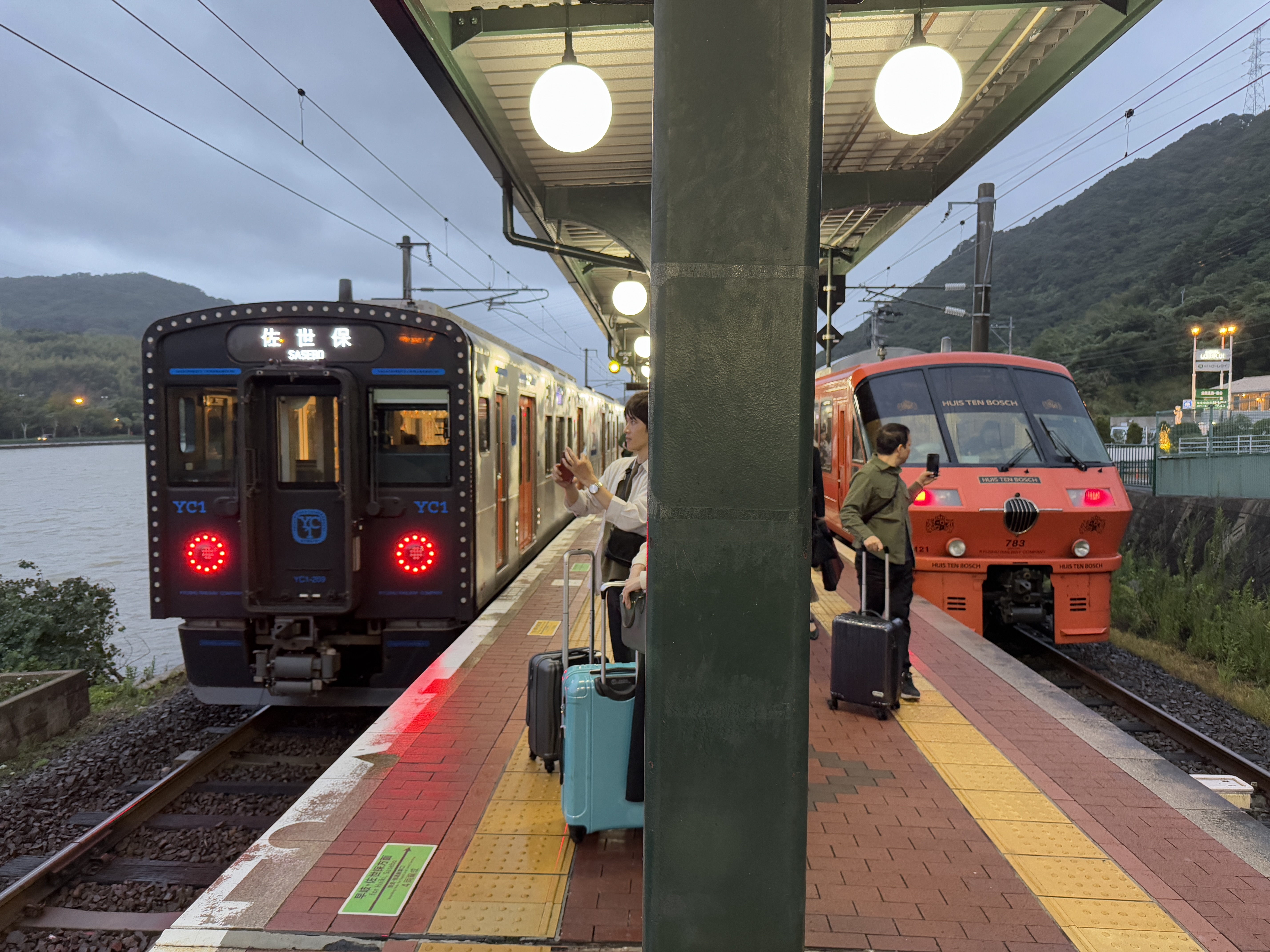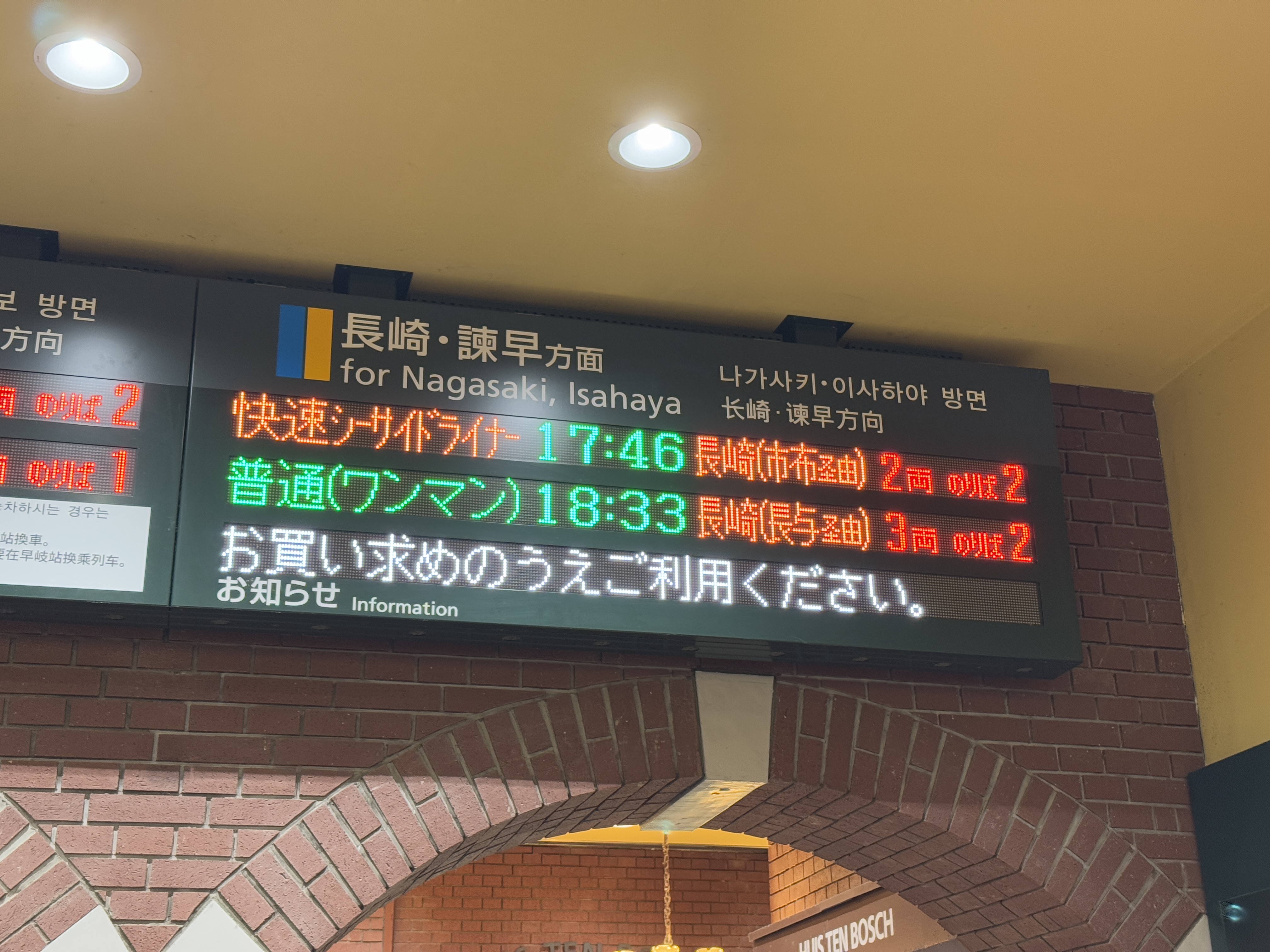 나가사키로 가는 열차를 기다립니다.