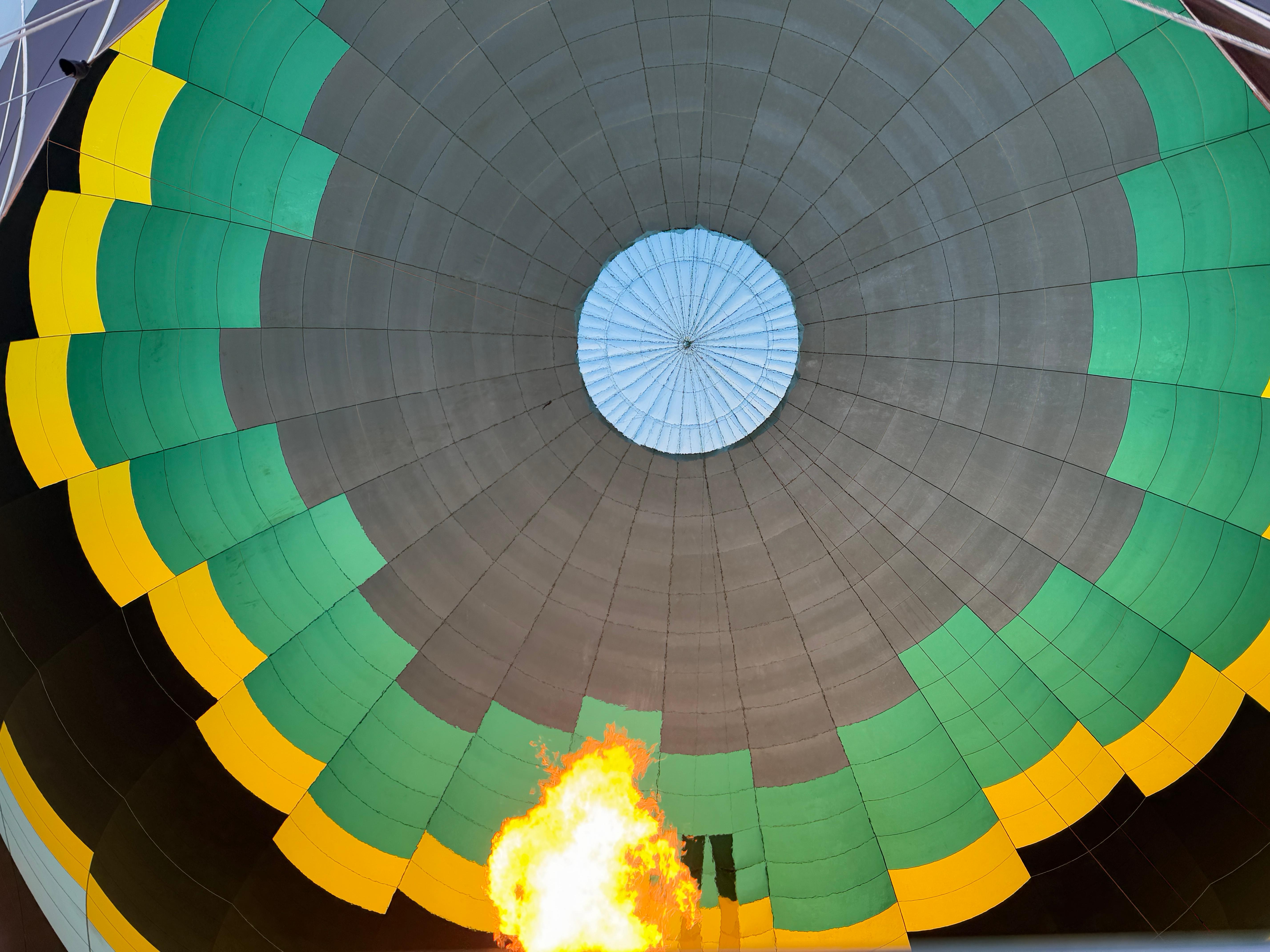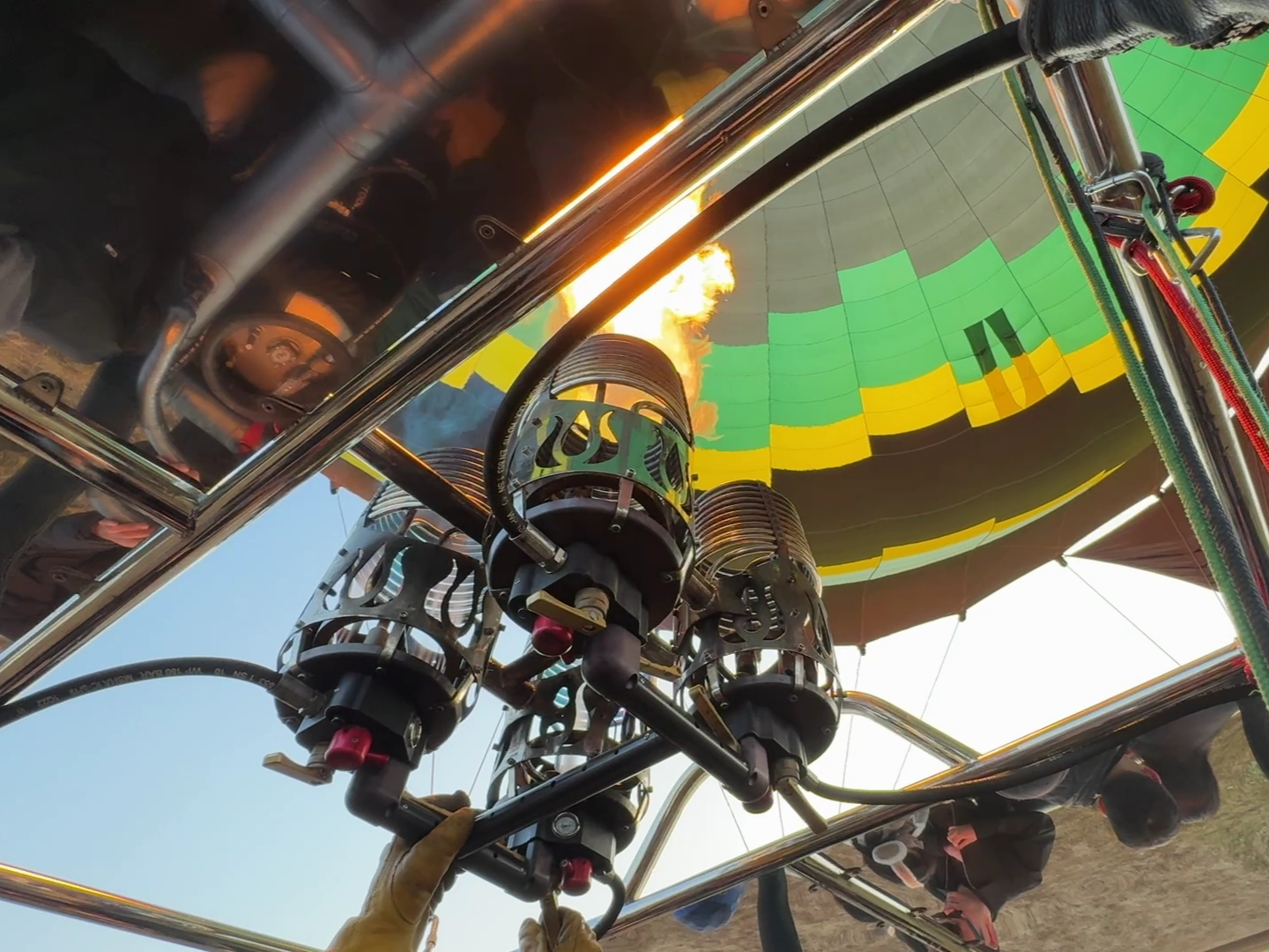 바구니에 달린 버너로 공기를 데우기 시작합니다.