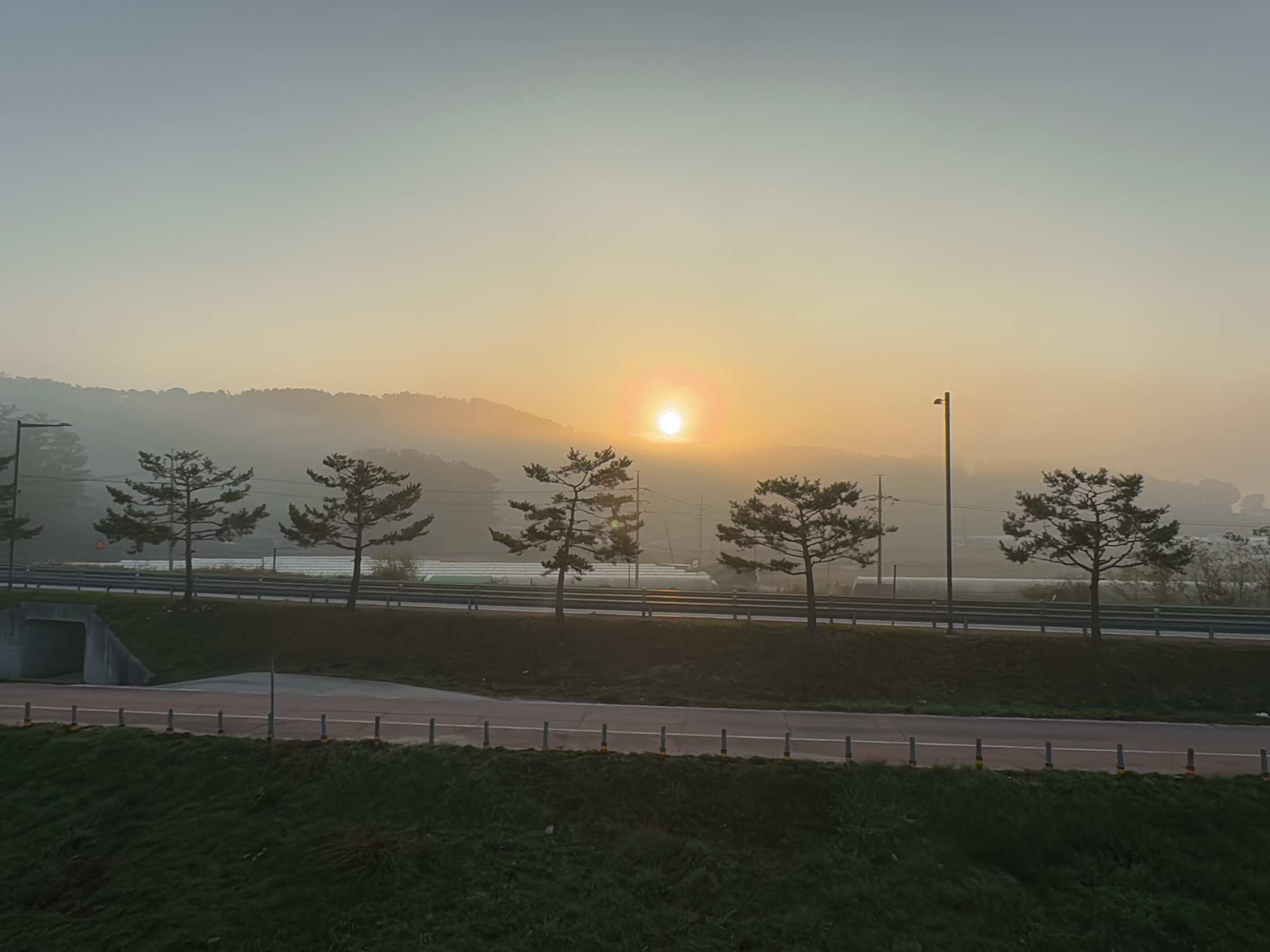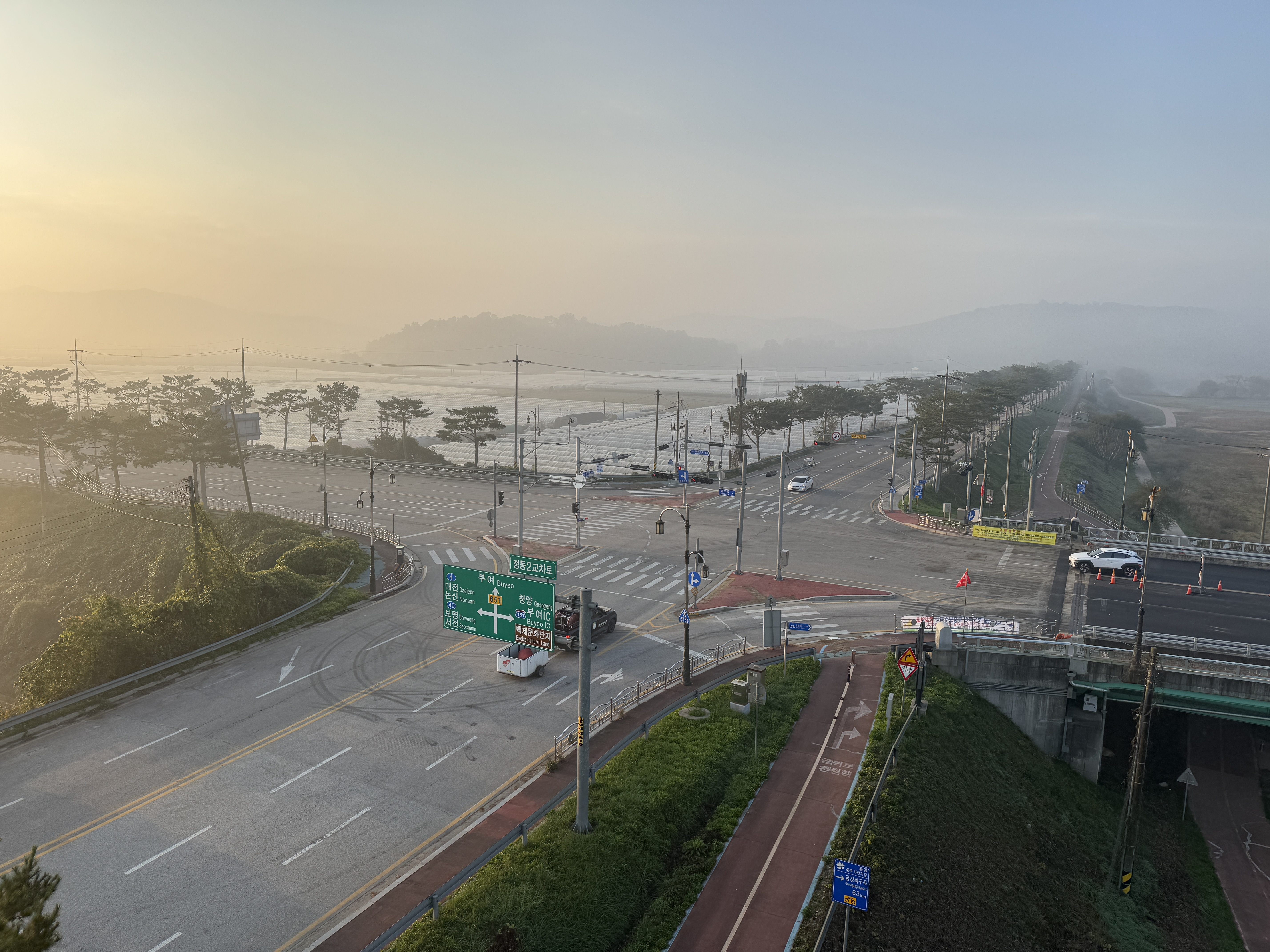 새벽에 국밥으로 배를 채우고 차를 몰아