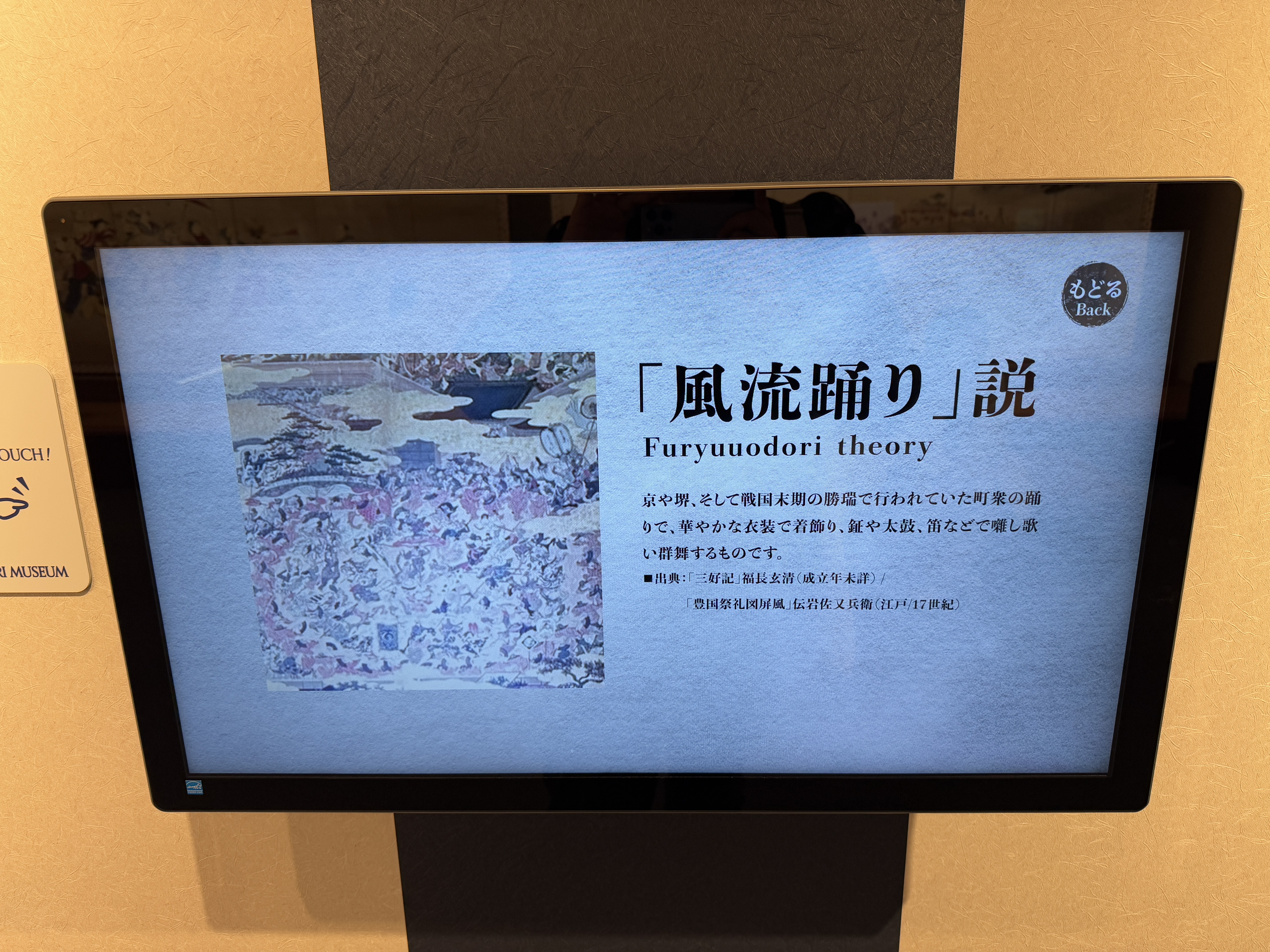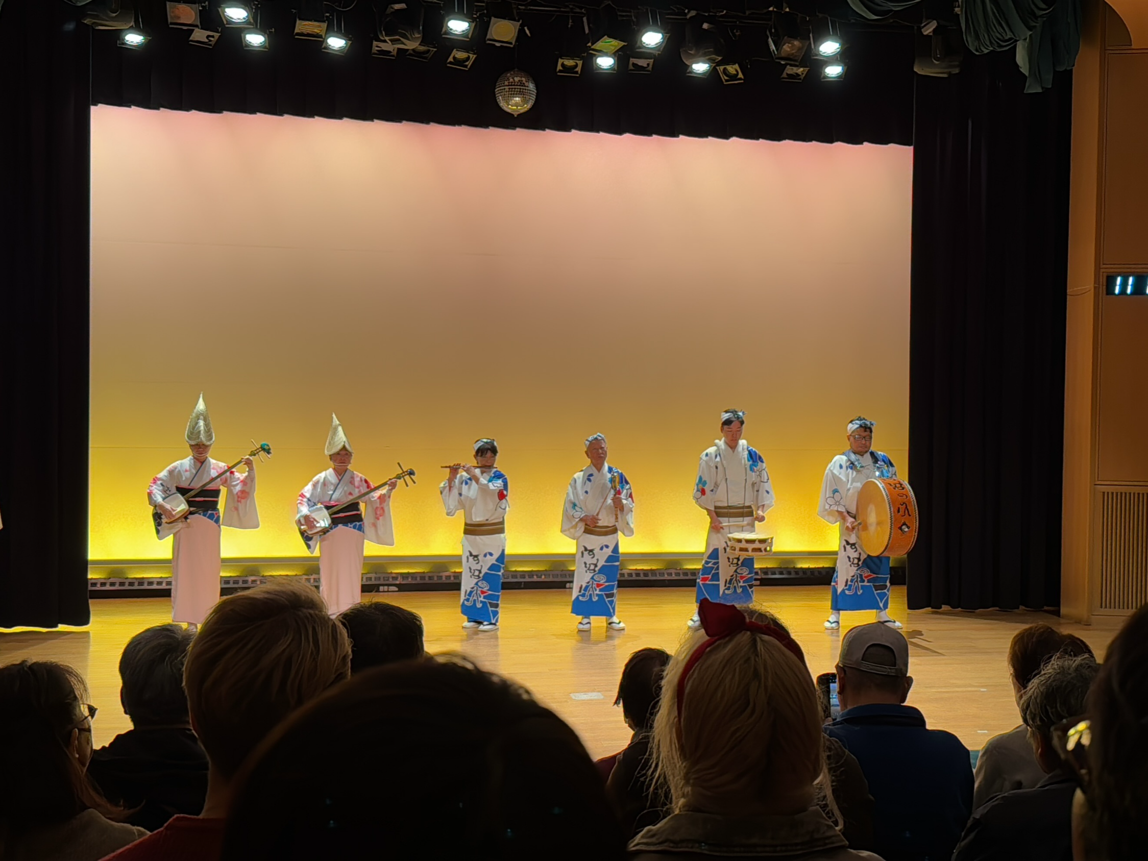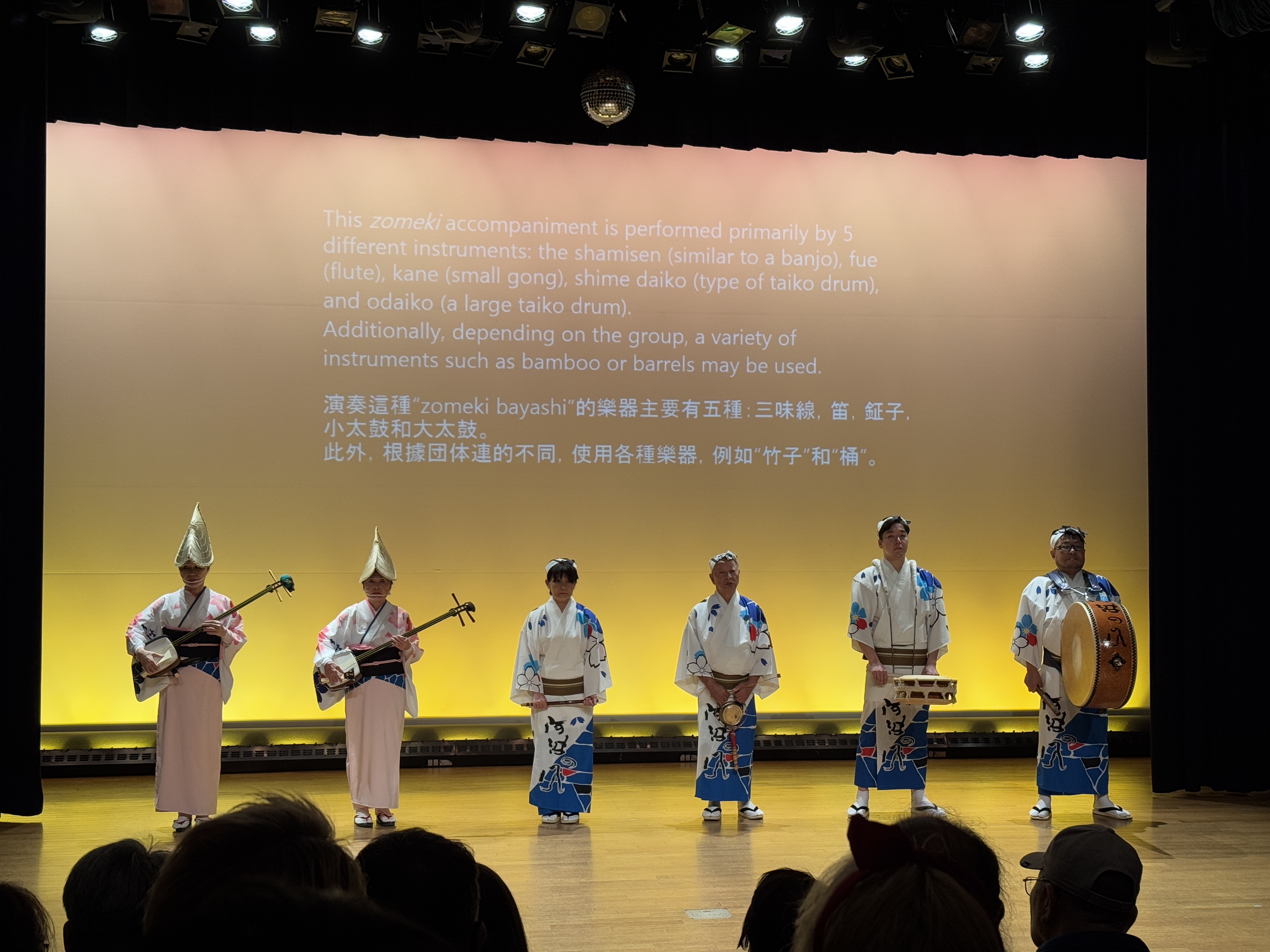 춤을 출 때 흘러나오는 조메키(ぞめき)라 불리는 곡들을 연주하는 5가지 악기도 함께 소개하는데