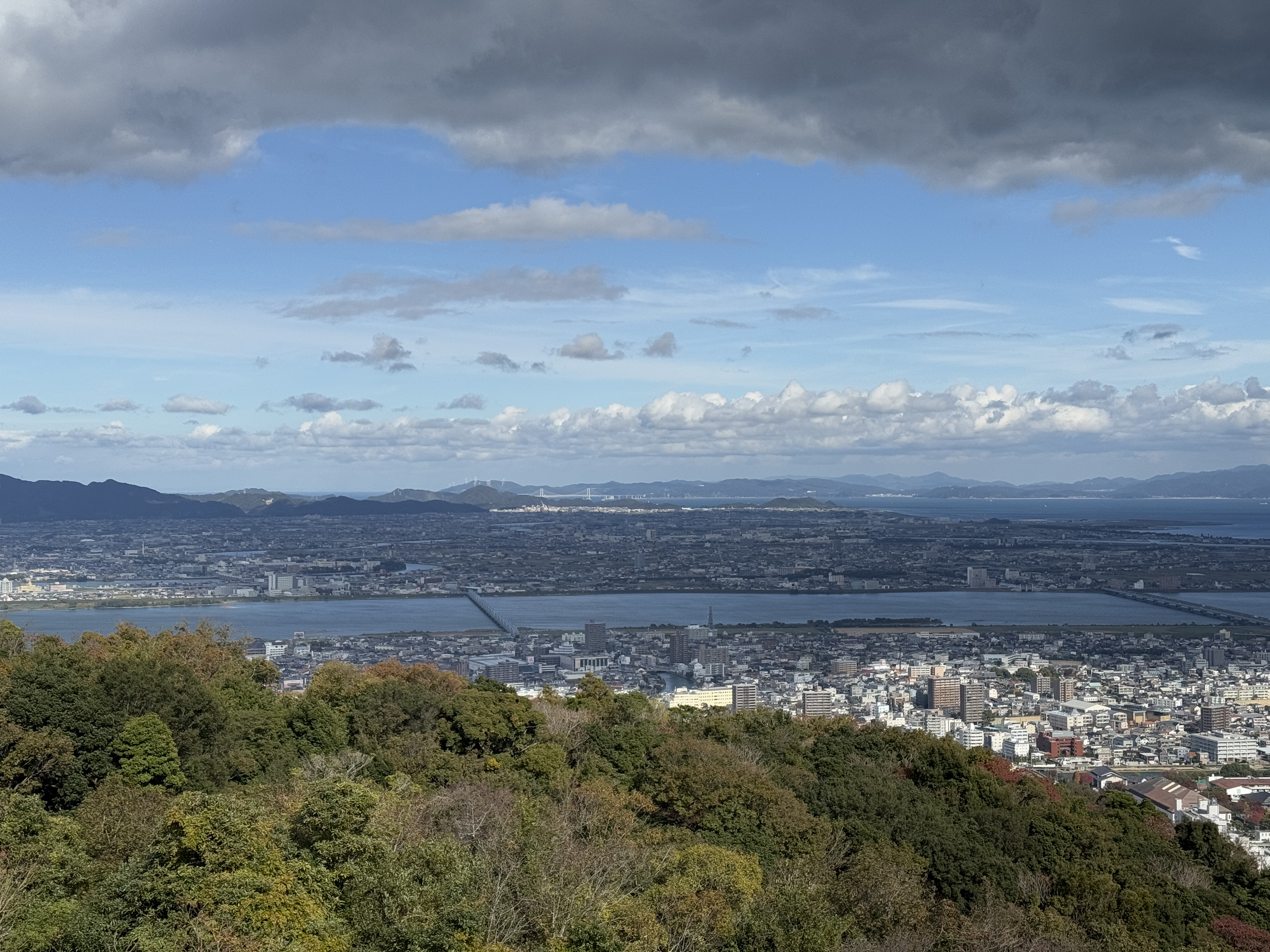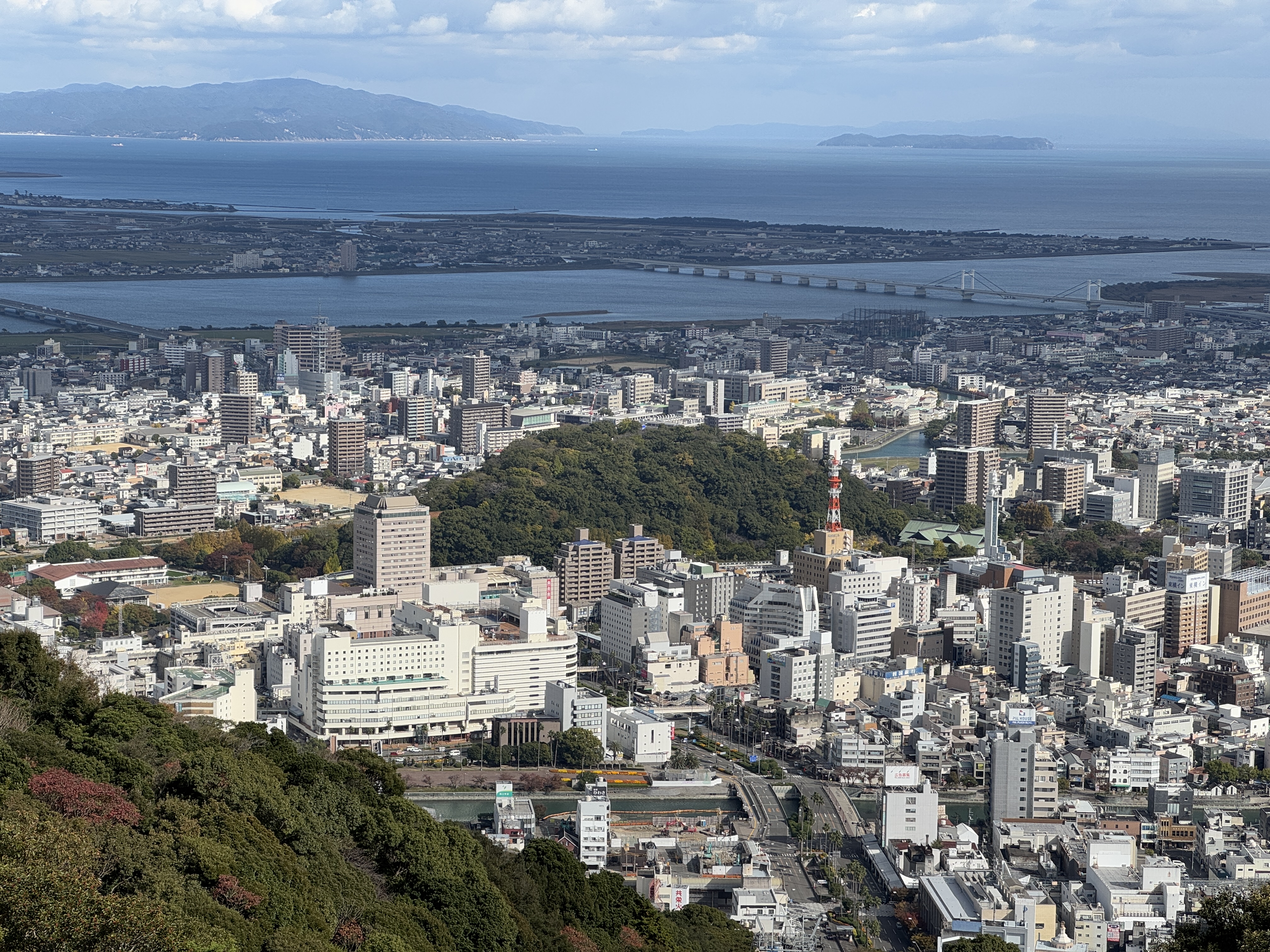 산 옆에 조그맣게 보이는 토쿠시마성터와