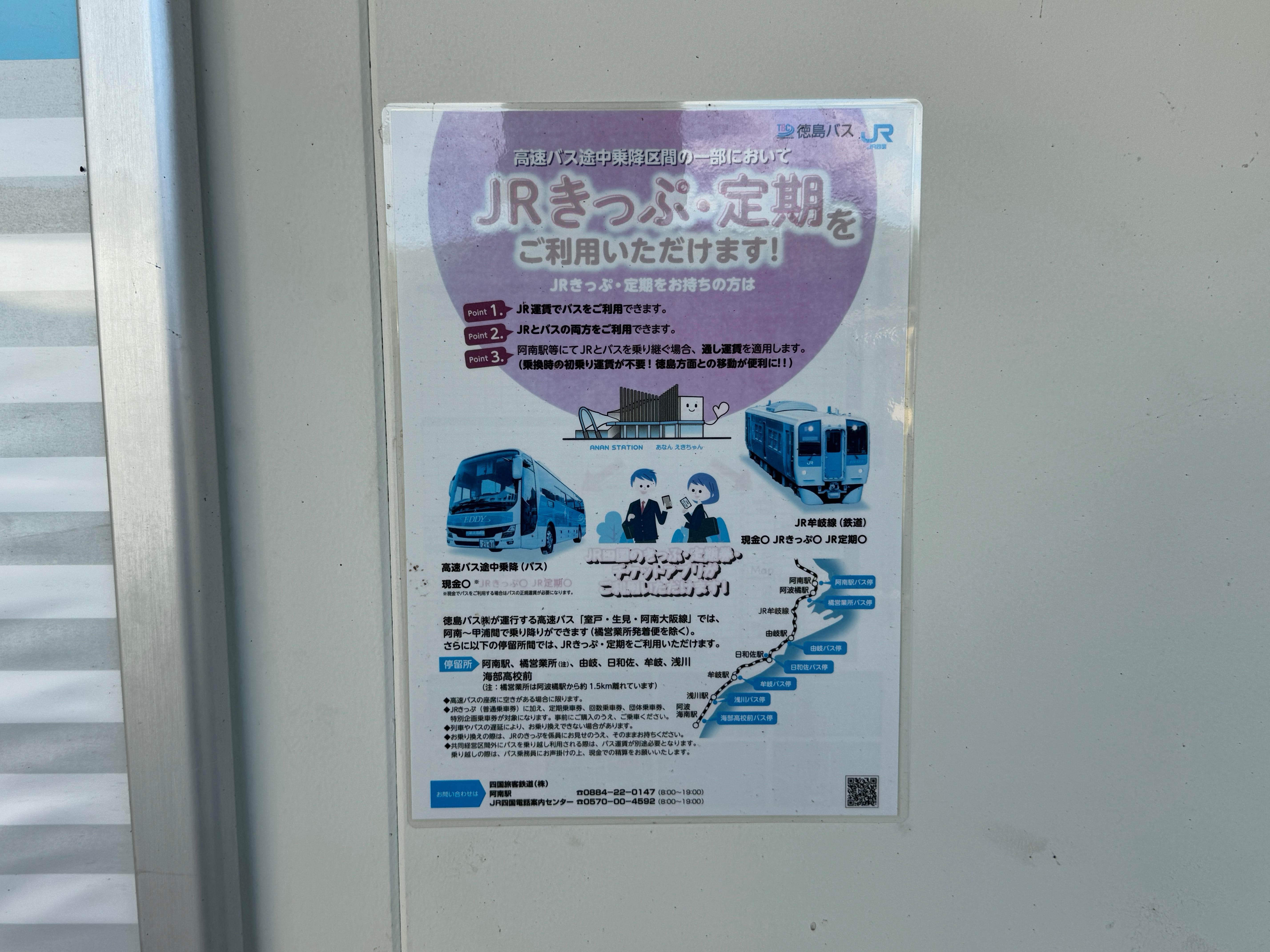 아와카이난역에서 아난역 사이 구간에서는 JR 승차권을 가지고 고속버스도 탈 수 있는 특례가 있어서