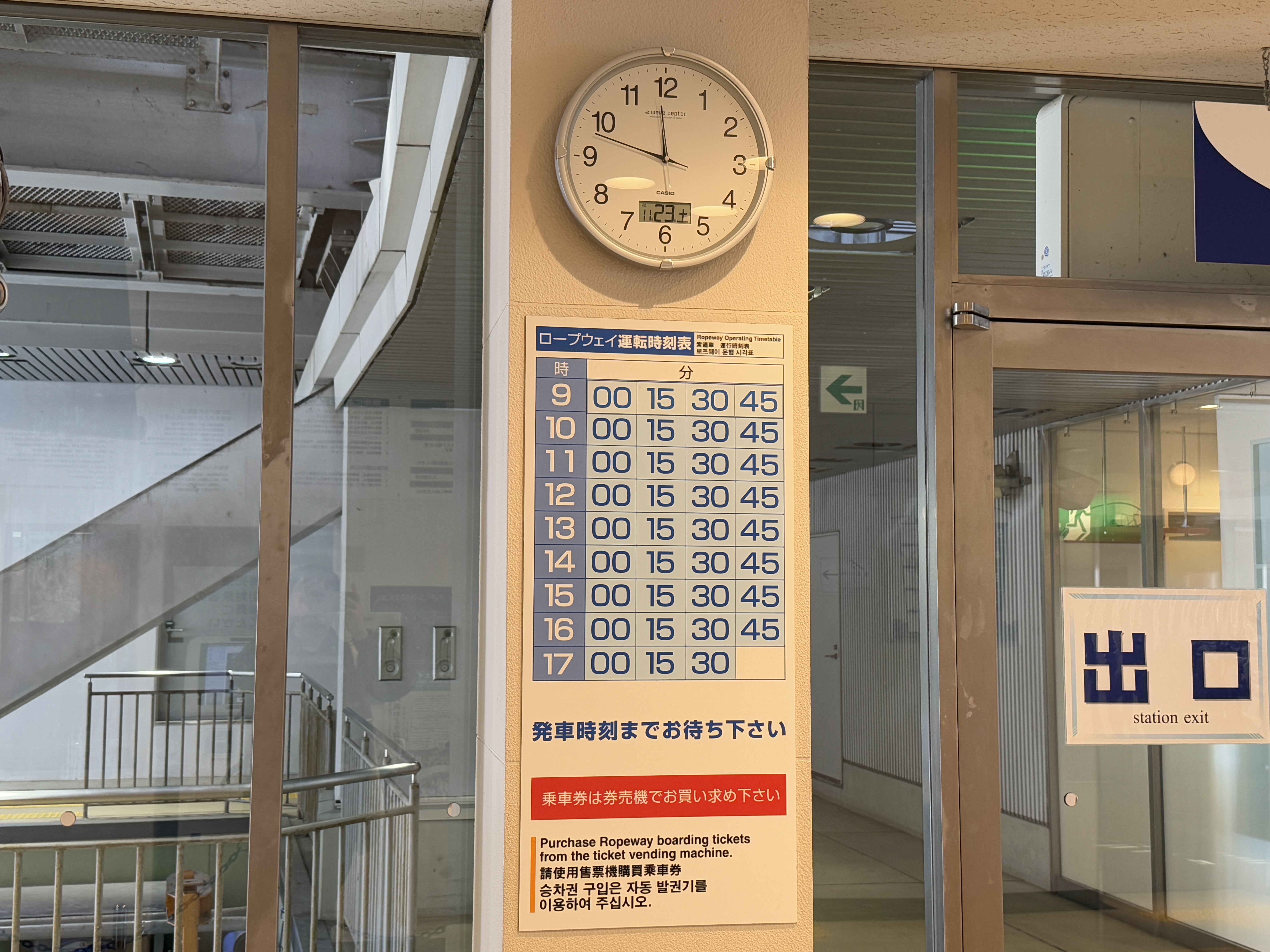 15분 간격으로 아와오도리 회관과 비잔 정상을 잇는 로프웨이가 운행하고 있는데요.