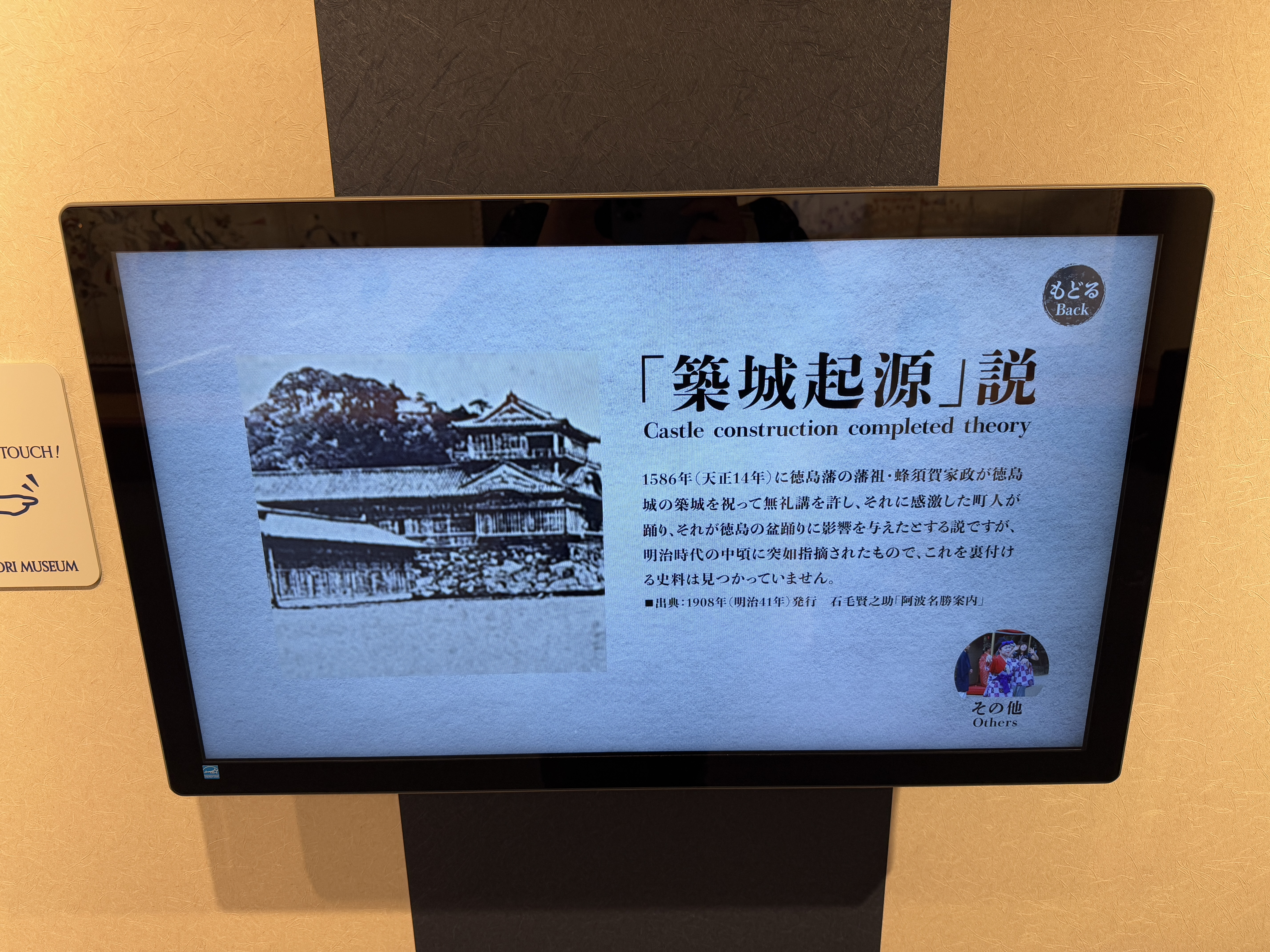 토쿠시마성이 축성된 뒤 이를 기념해서 모두가 모여 춤을 춘 것에서 기원했다는 축성기원설 등
