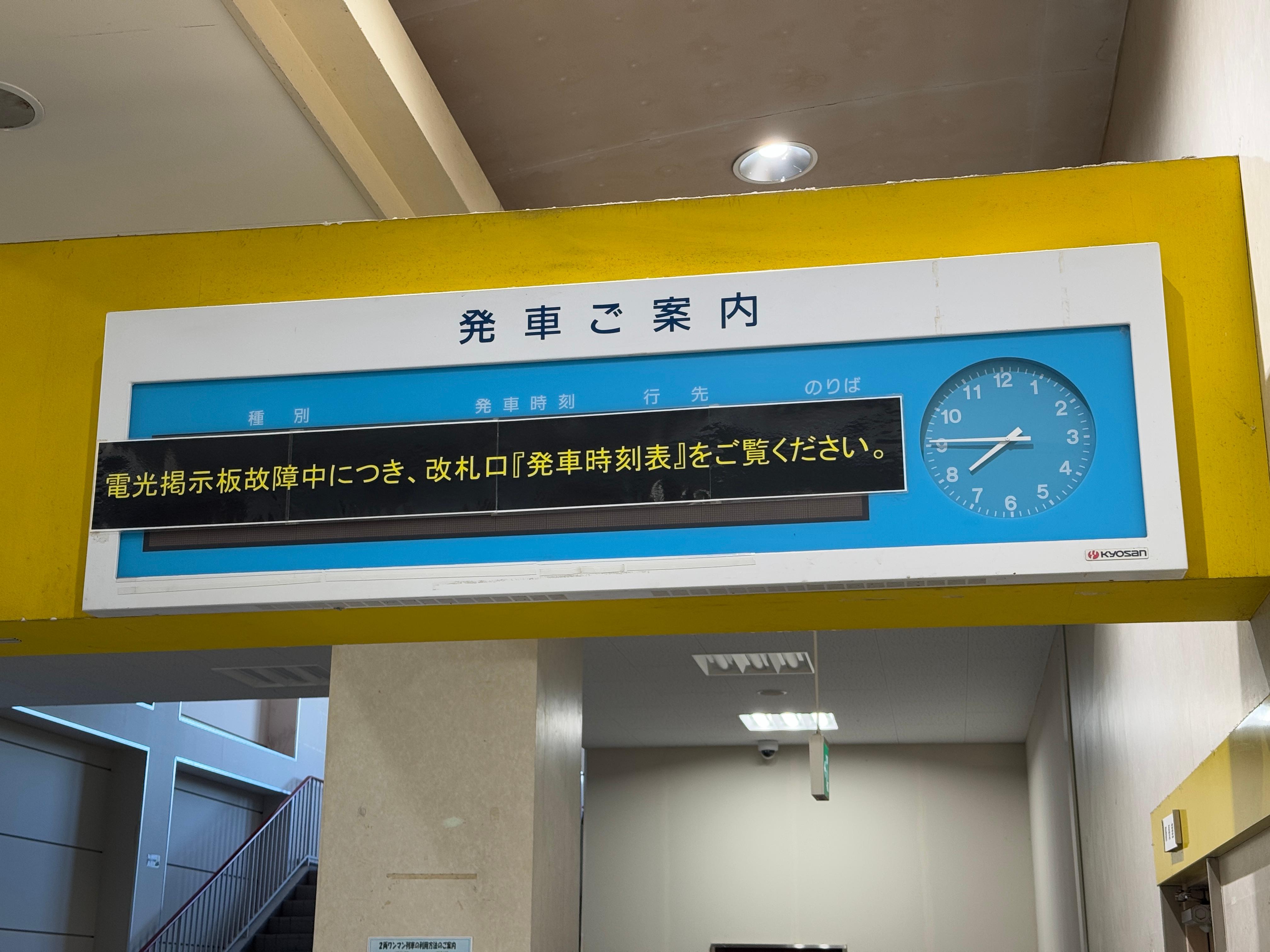 열차 발차 안내 LED를 꺼두고 벽에 붙은 시각표를 참조하라는 안내문구가 좀 짜치네요.
