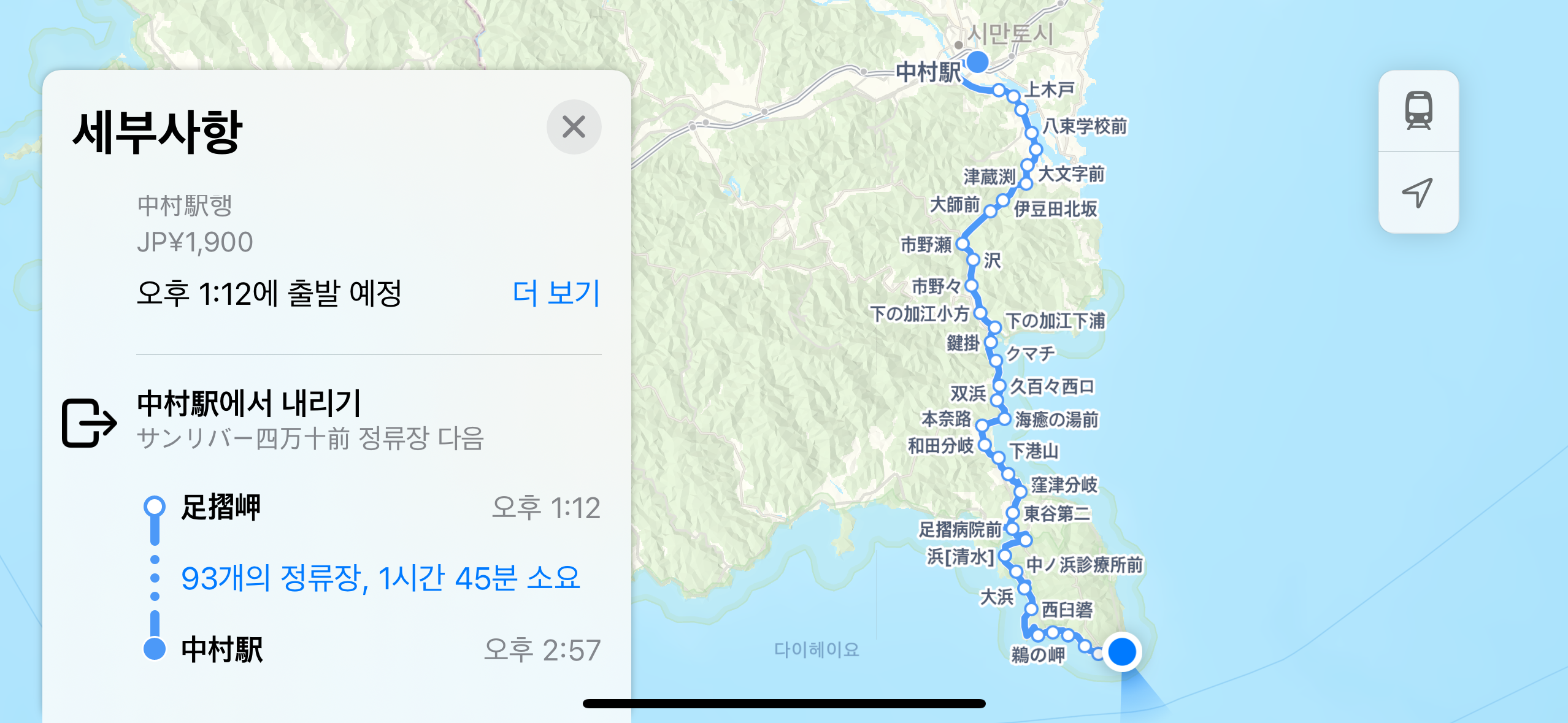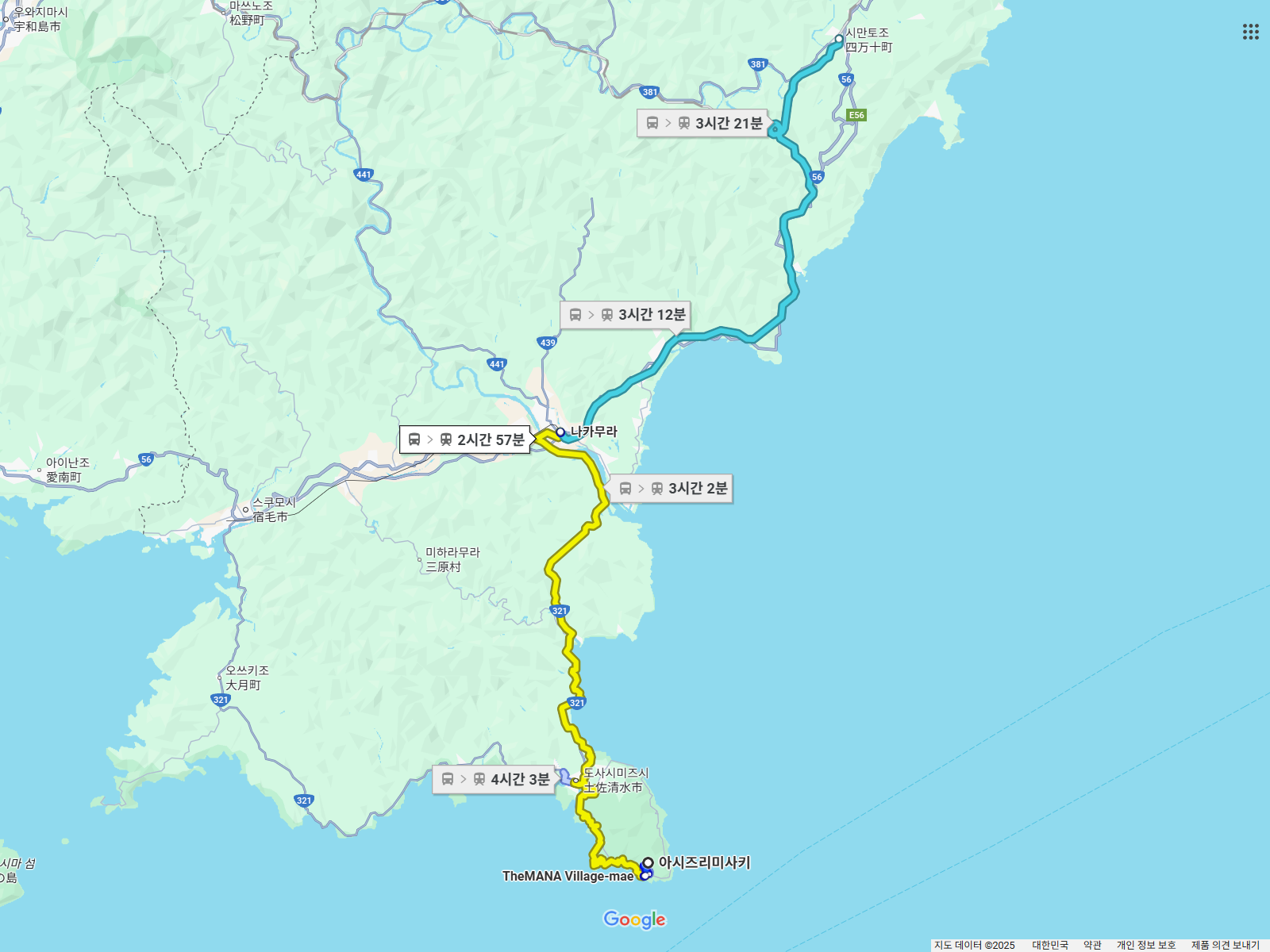 아시즈리미사키에서 출발해 숙소로 가기 위한 먼 여정을 시작합니다.