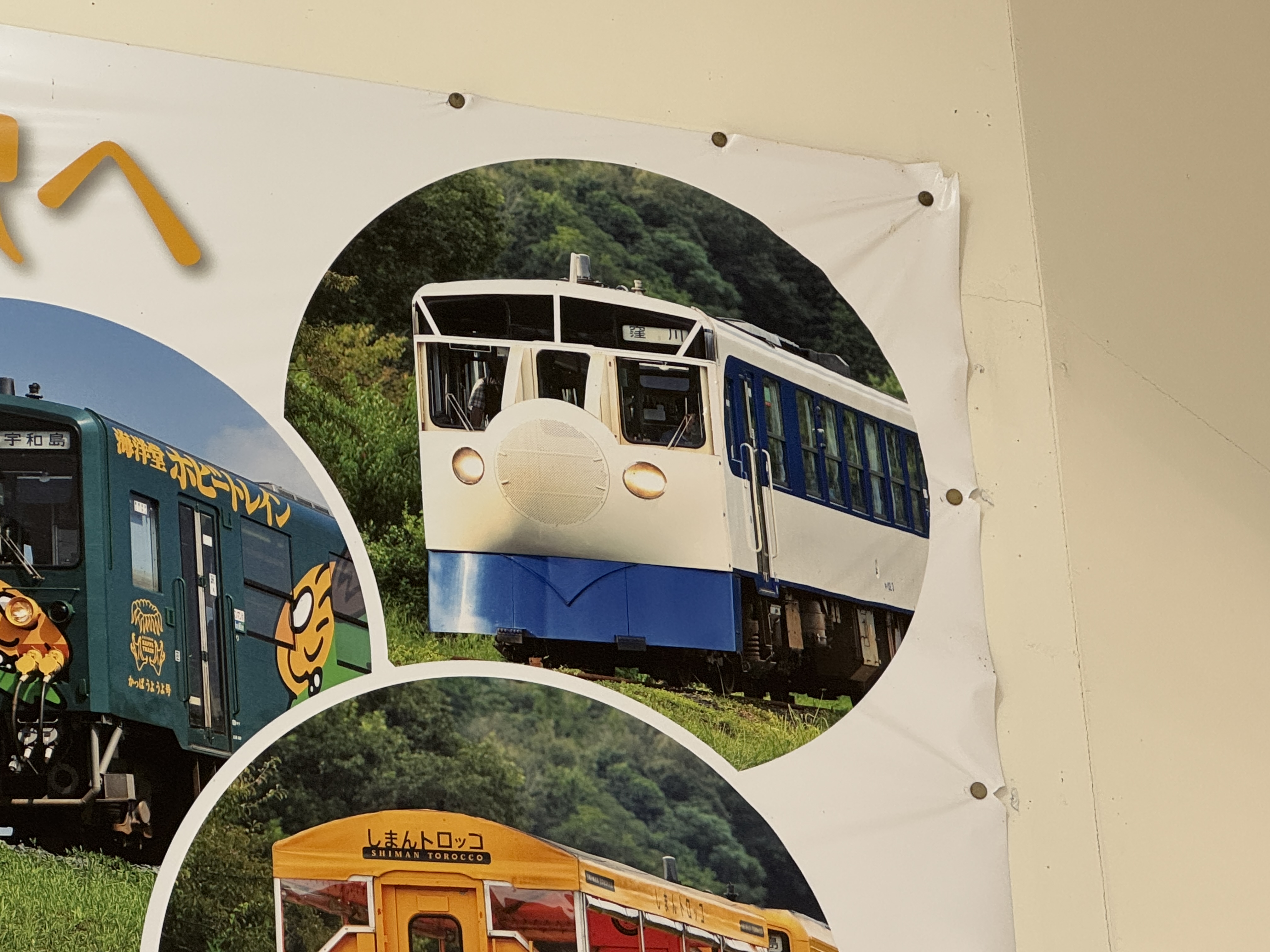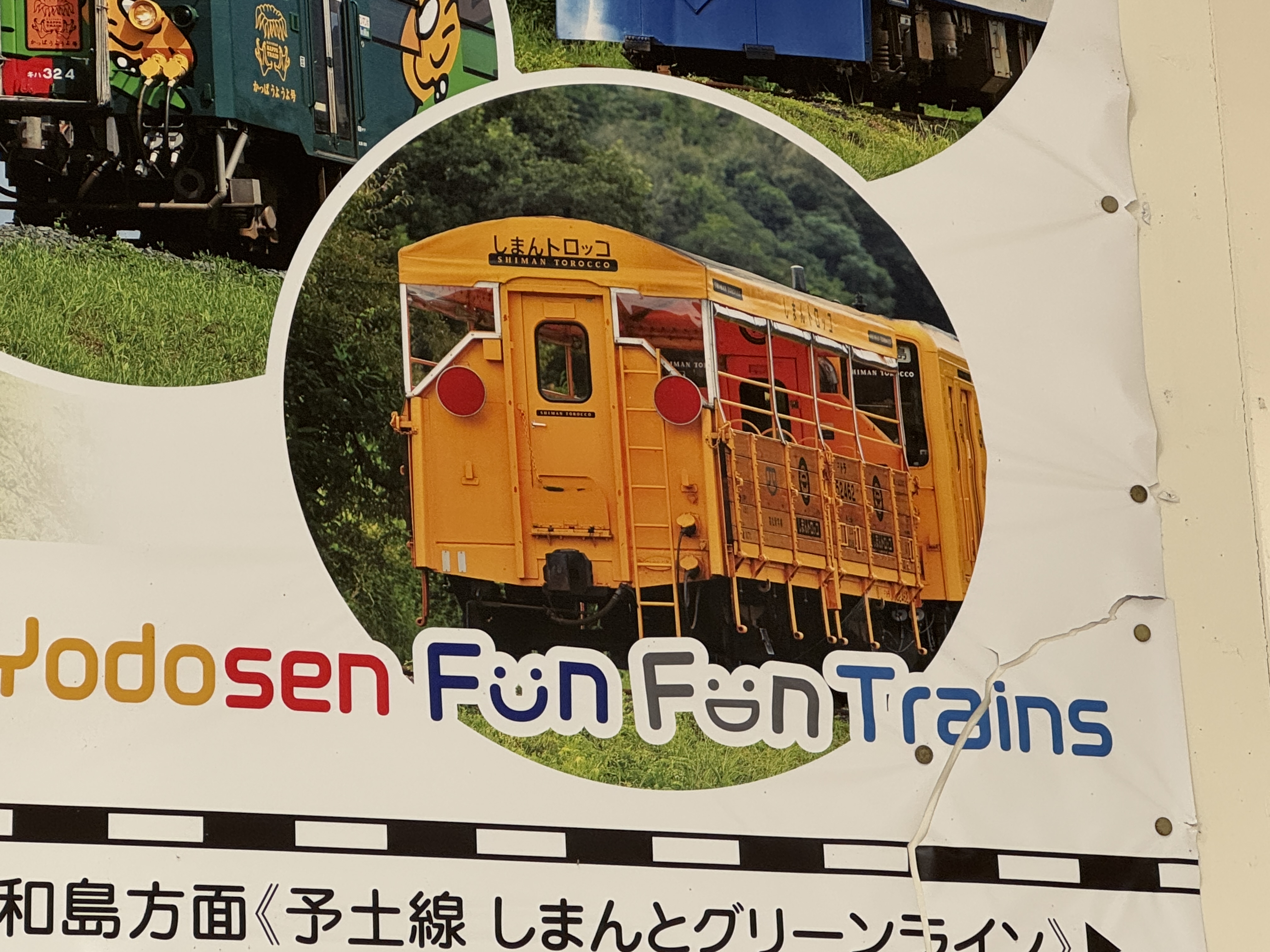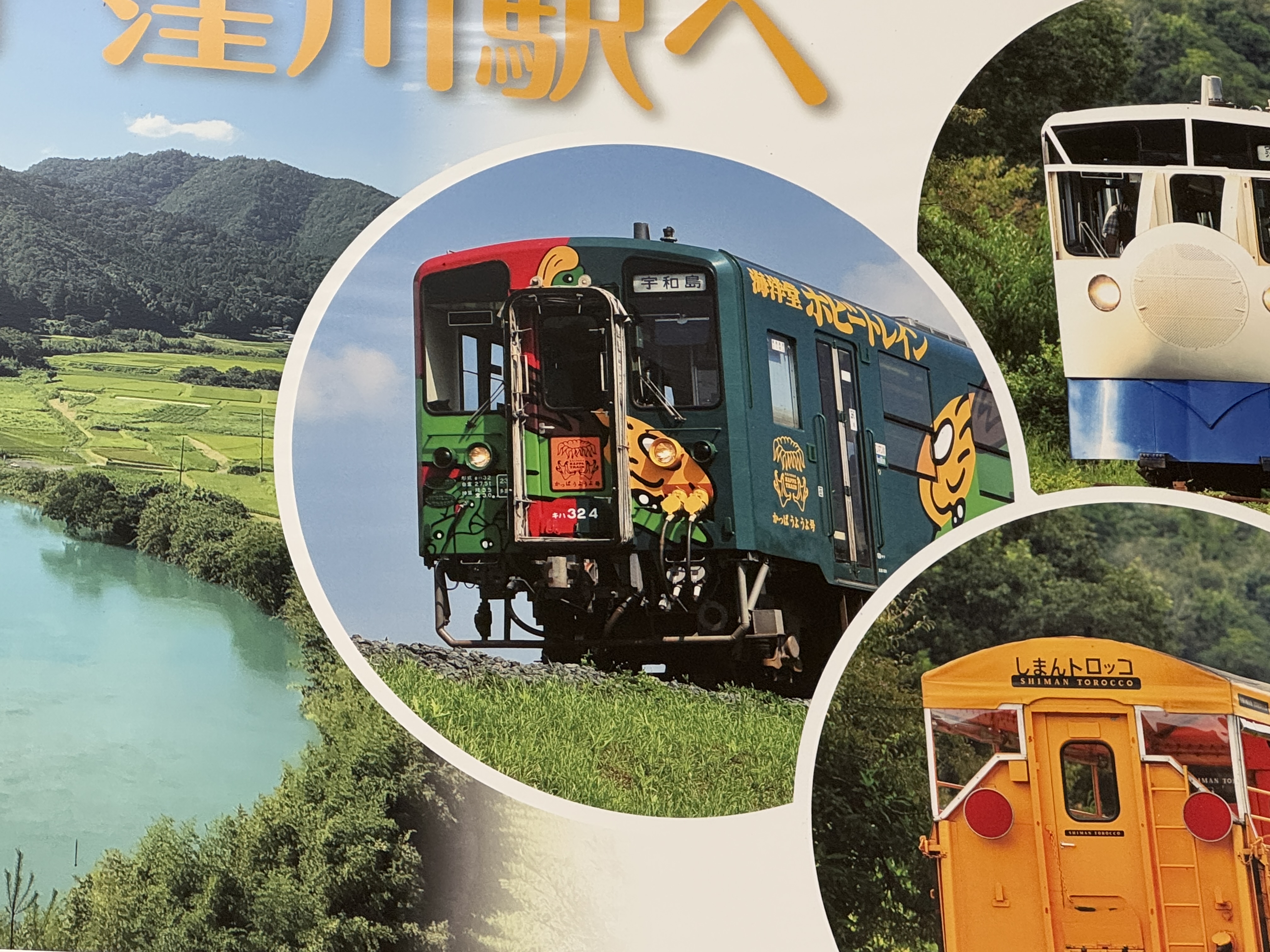 시만토강(시만토가와) 옆으로 굽이굽이 난 철길을 따라 달리는 관광열차가 많다는 특징이 있습니다.