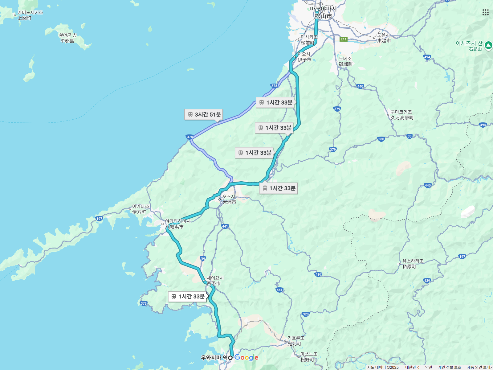이요오즈역과 마츠야마역을 빠르게 잇는 우치코선을 경유해