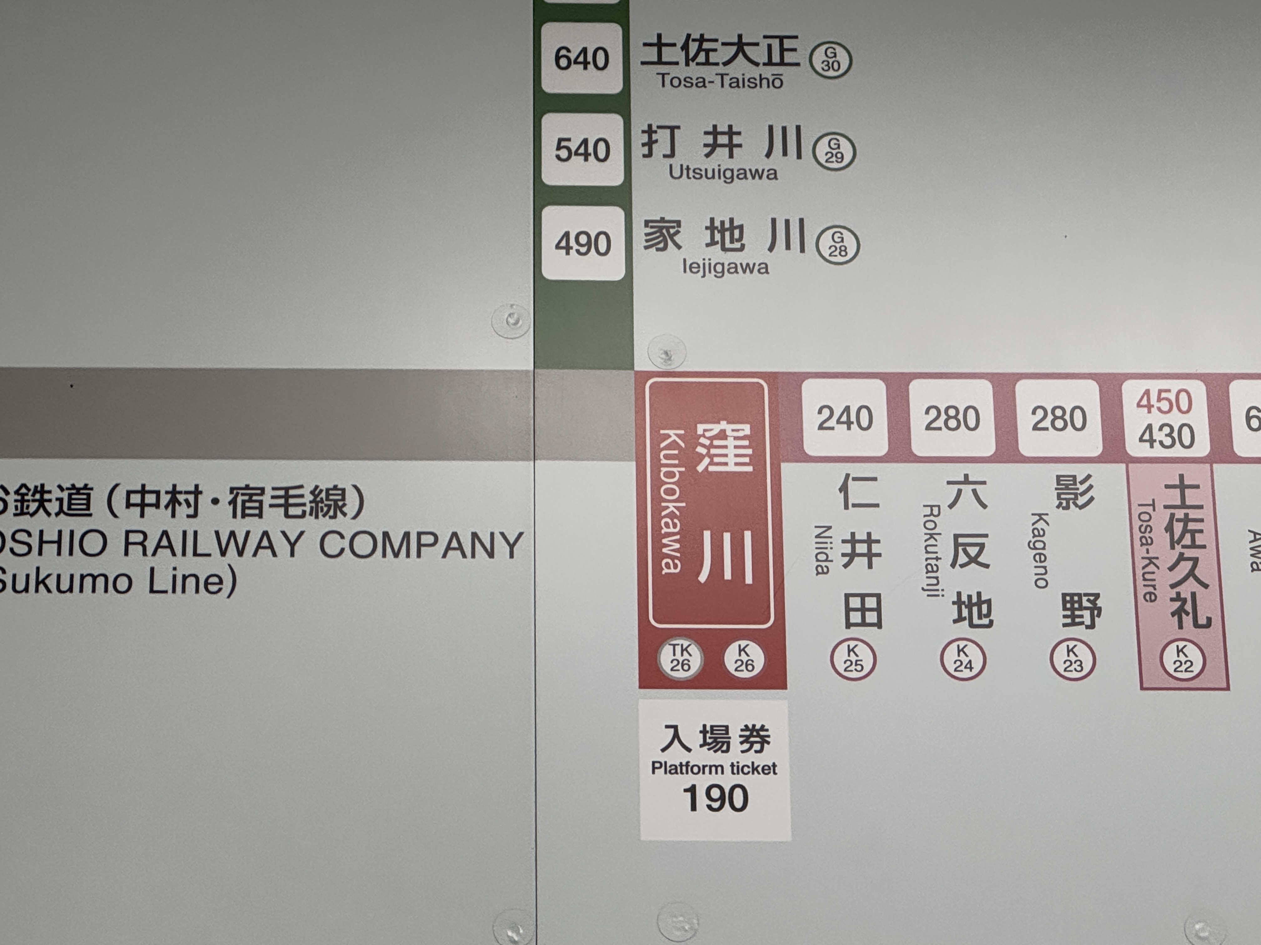이에지가와역에서 쿠보카와역까지는 토사 쿠로시오 철도 나카무라·스쿠모선이라는 사철 노선이라서