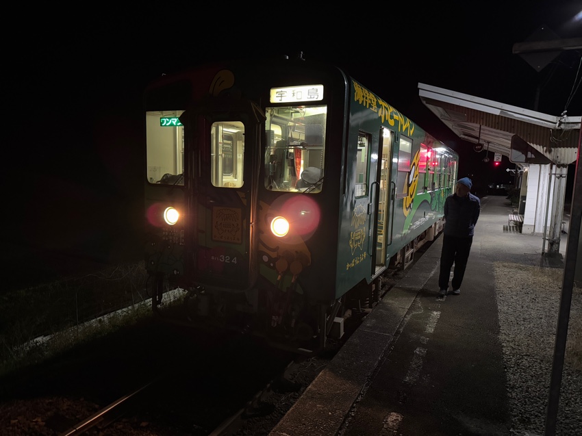 20시 15분 요도선 열차의 종착역인 우와지마역에 도착했습니다.
