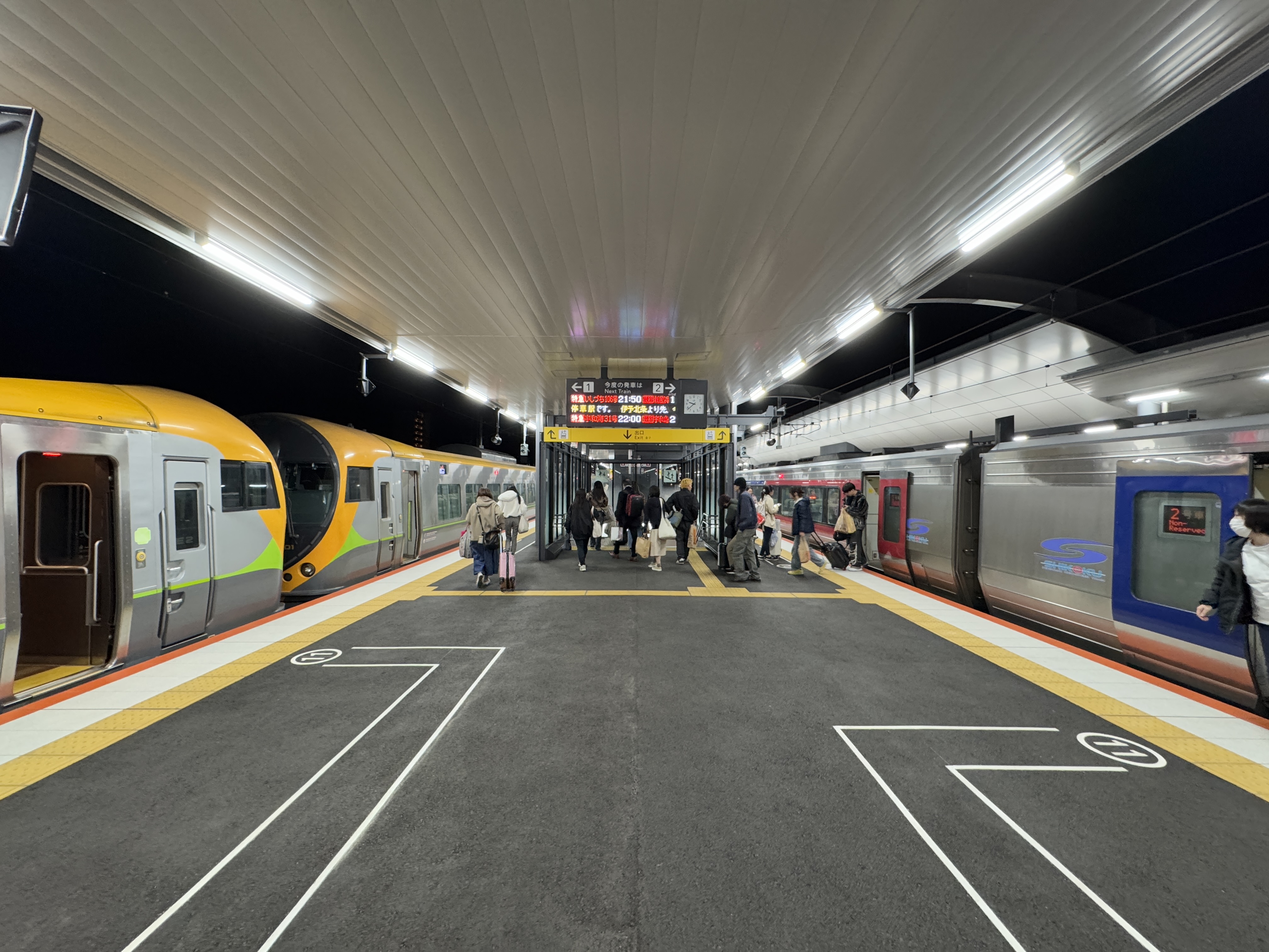 여기서 20시 17분에 출발하는 마츠야마행 특급 우만카이를 타기 위해