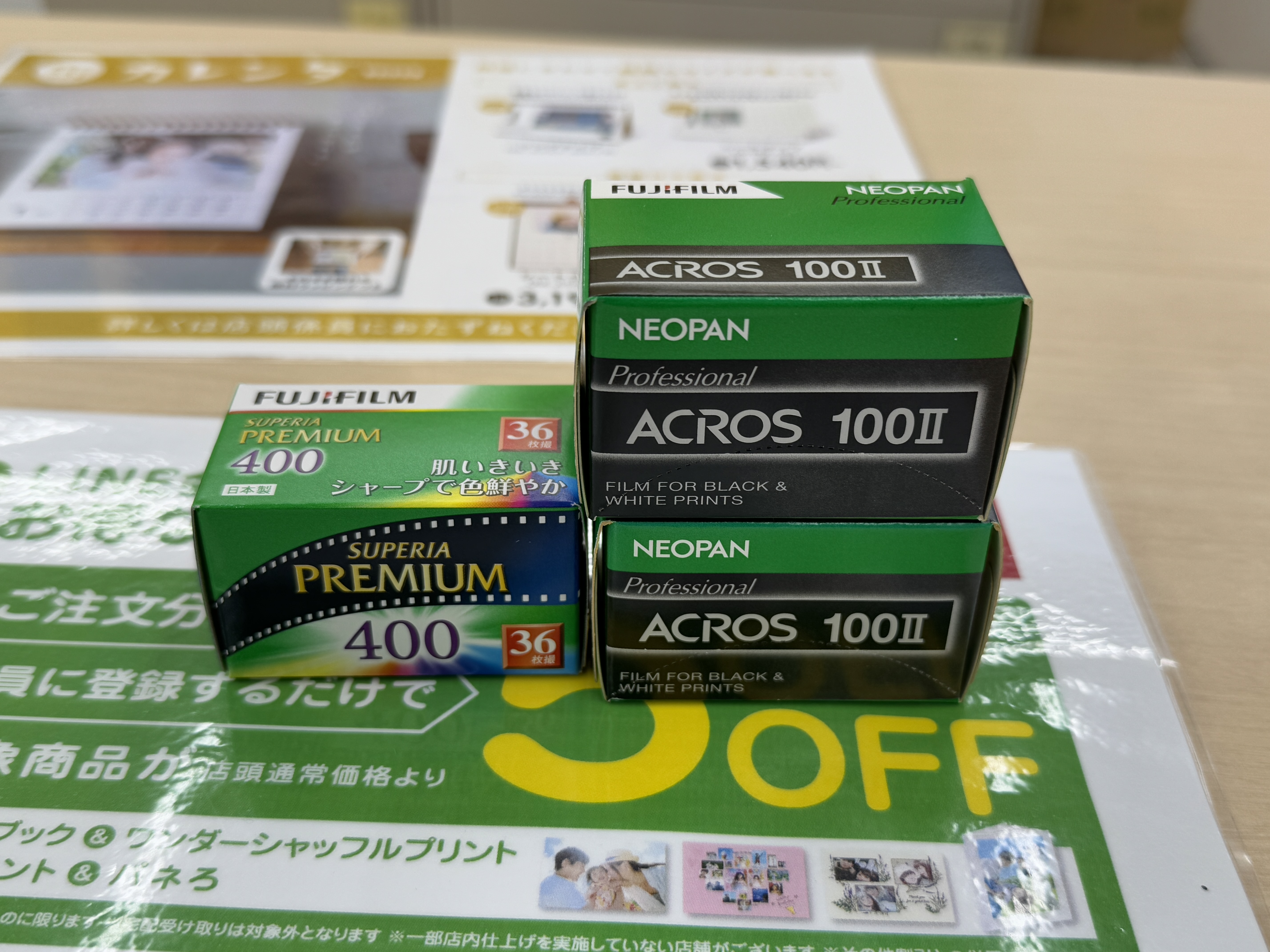 작은 도시에 있는 지점이다 보니 판매하고 있는 필름 종류도 많지 않고 면세도 안 되네요.
