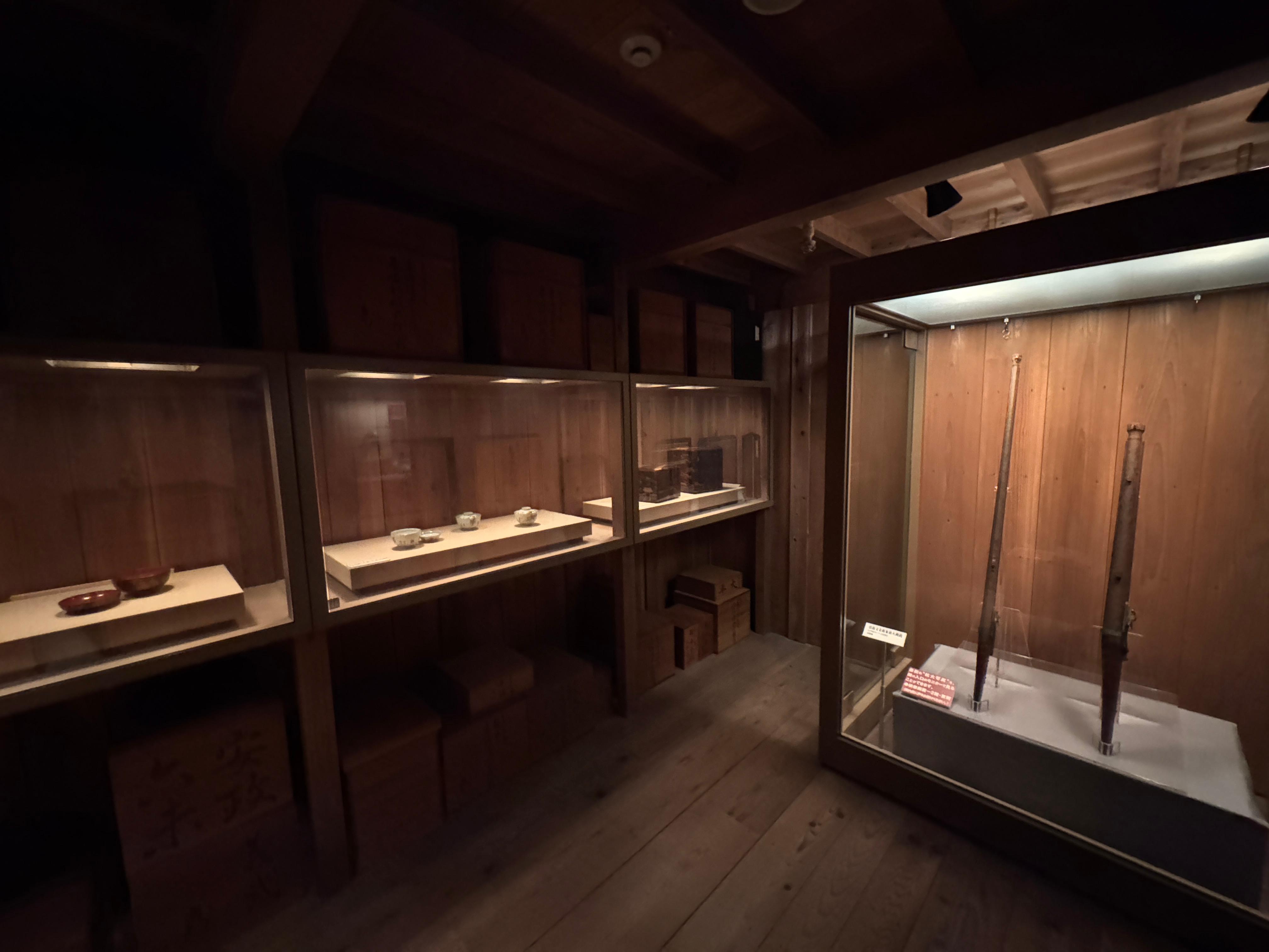 에도 시대 마을 대표 역할을 하던 쇼야(庄屋)의 창고(쿠라, 蔵)를 작게 재현한 건물 안으로 들어가서