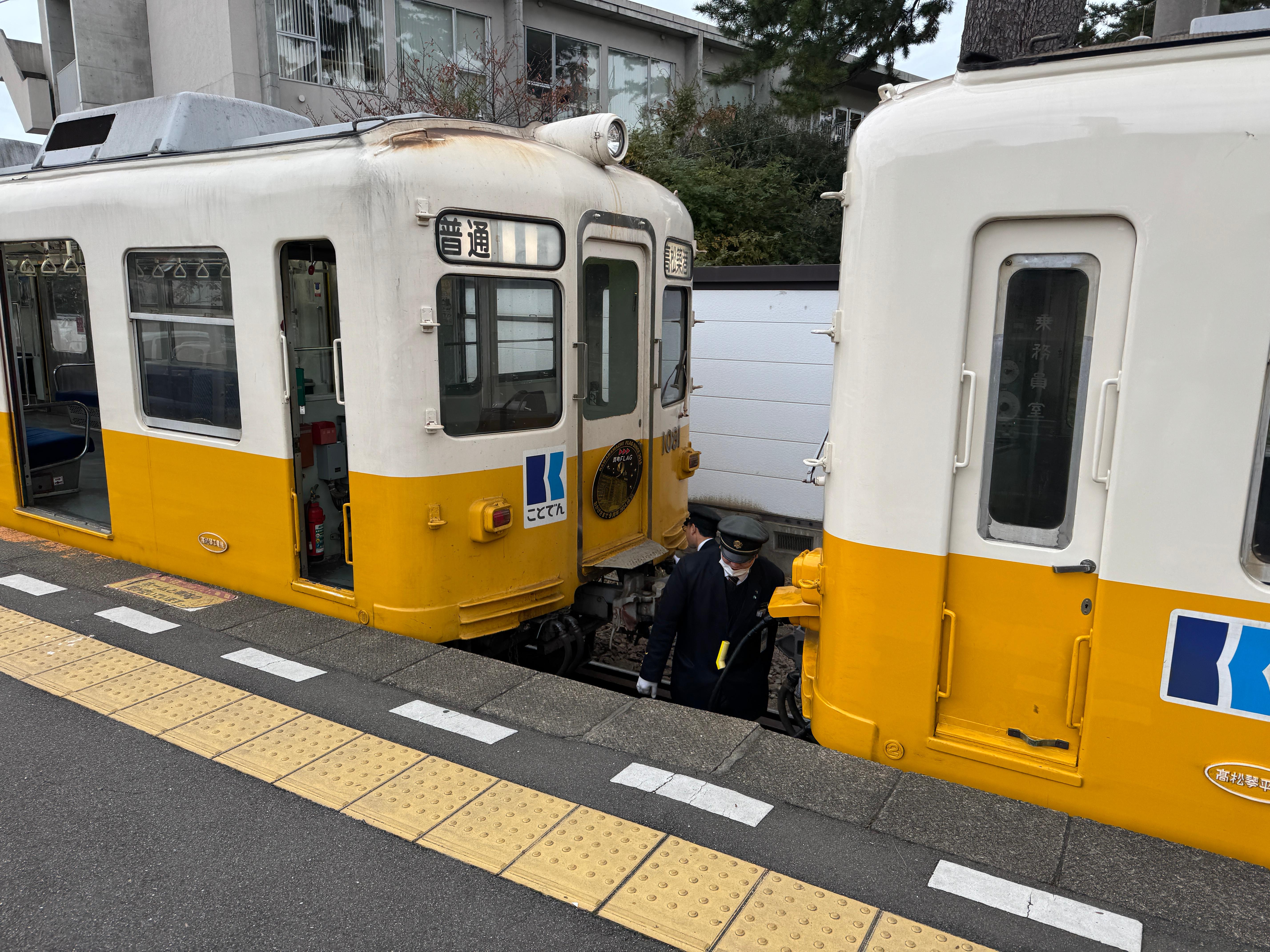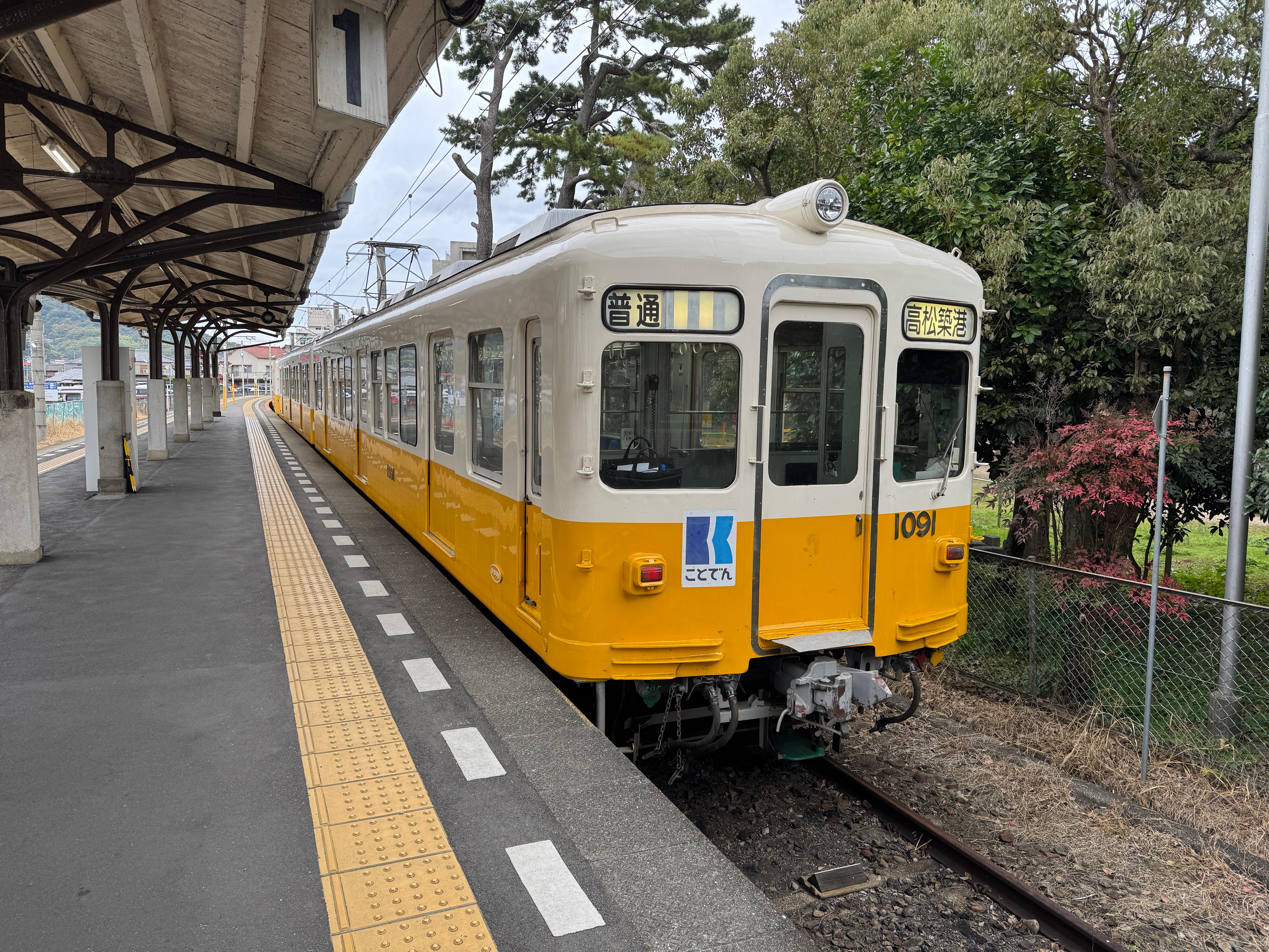 코토덴 열차를 타고 코토히라를 떠납니다.