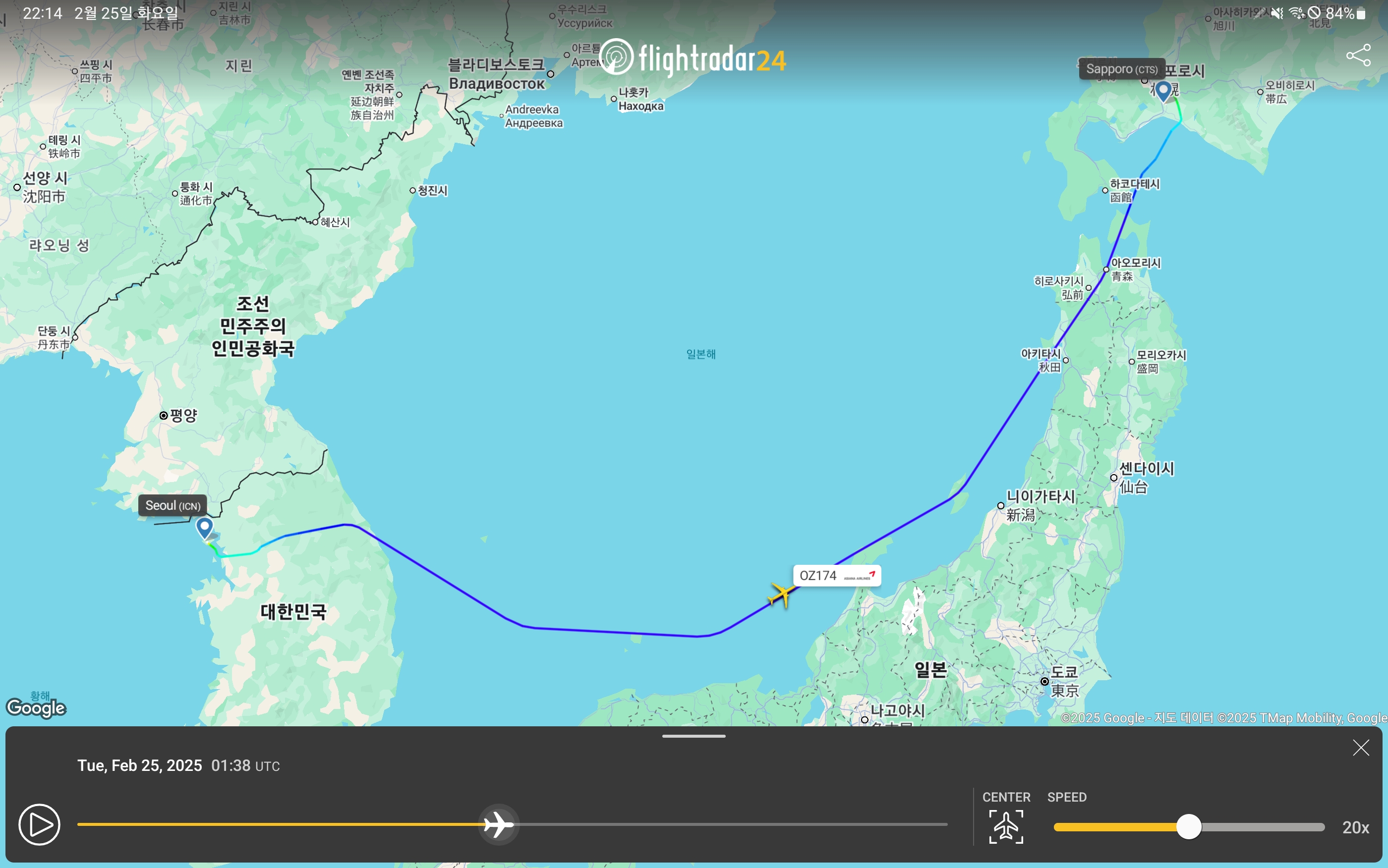 어느새 일본 상공에 진입했네요.