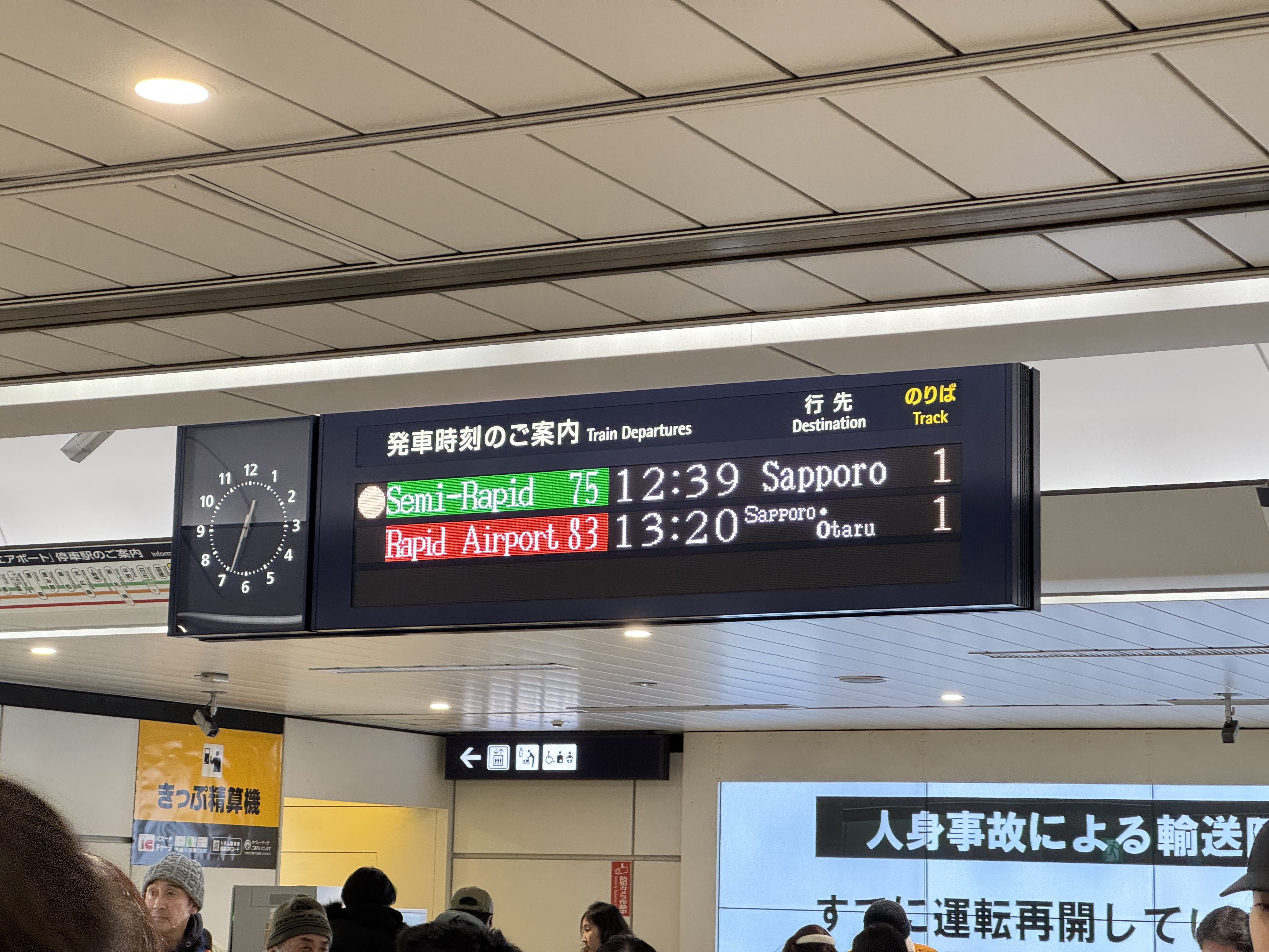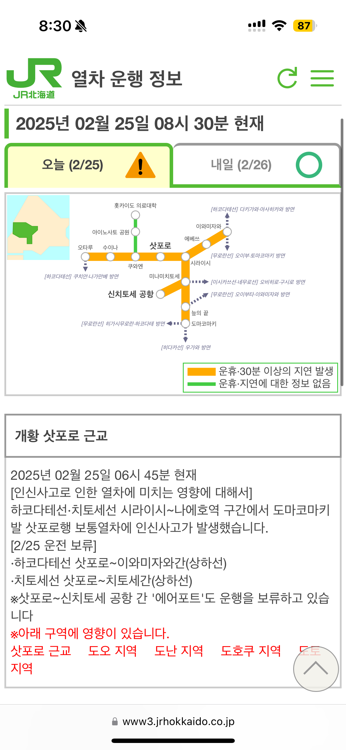삿포로행 전철은 여전히 파행 운행 중입니다.