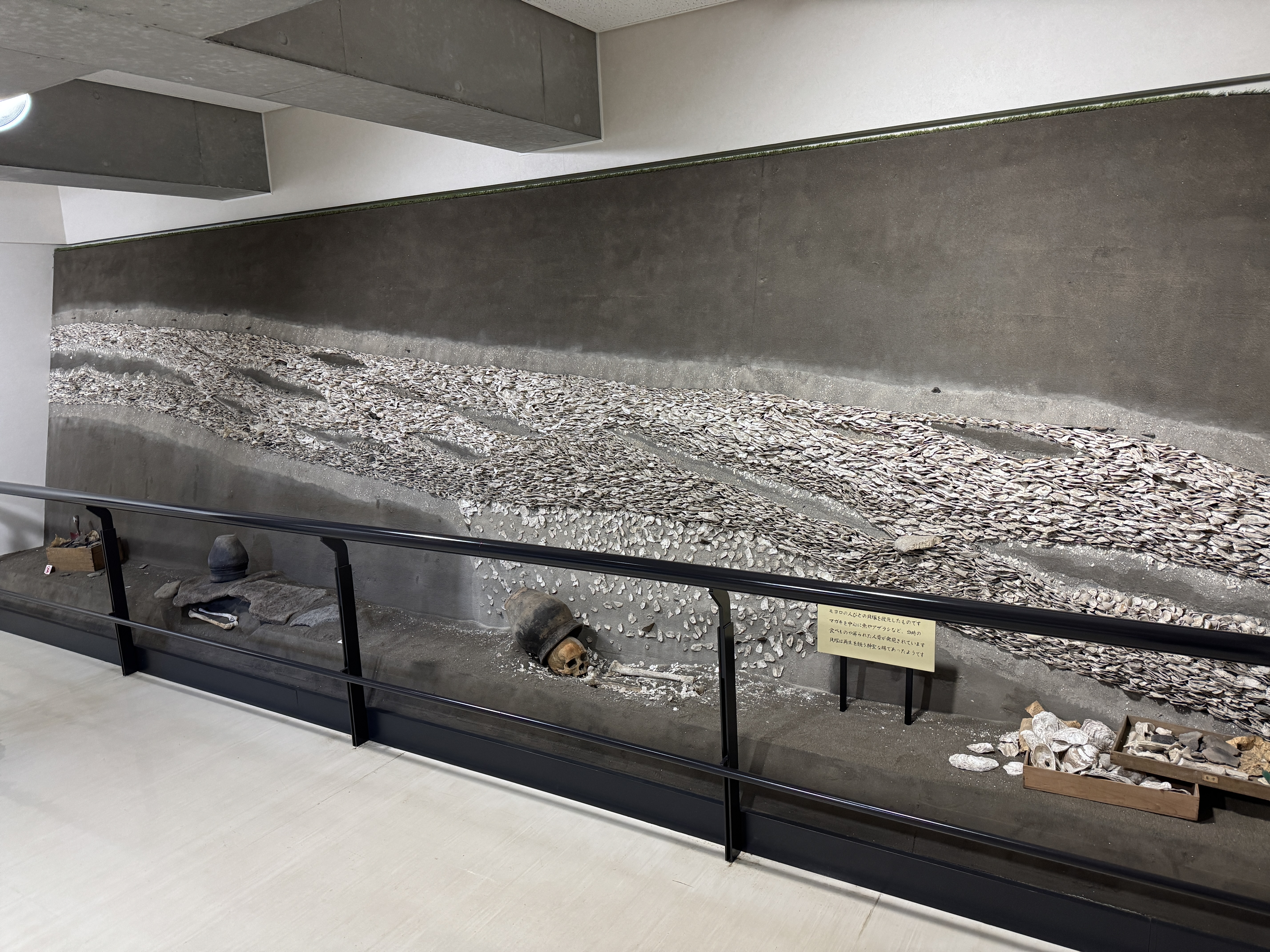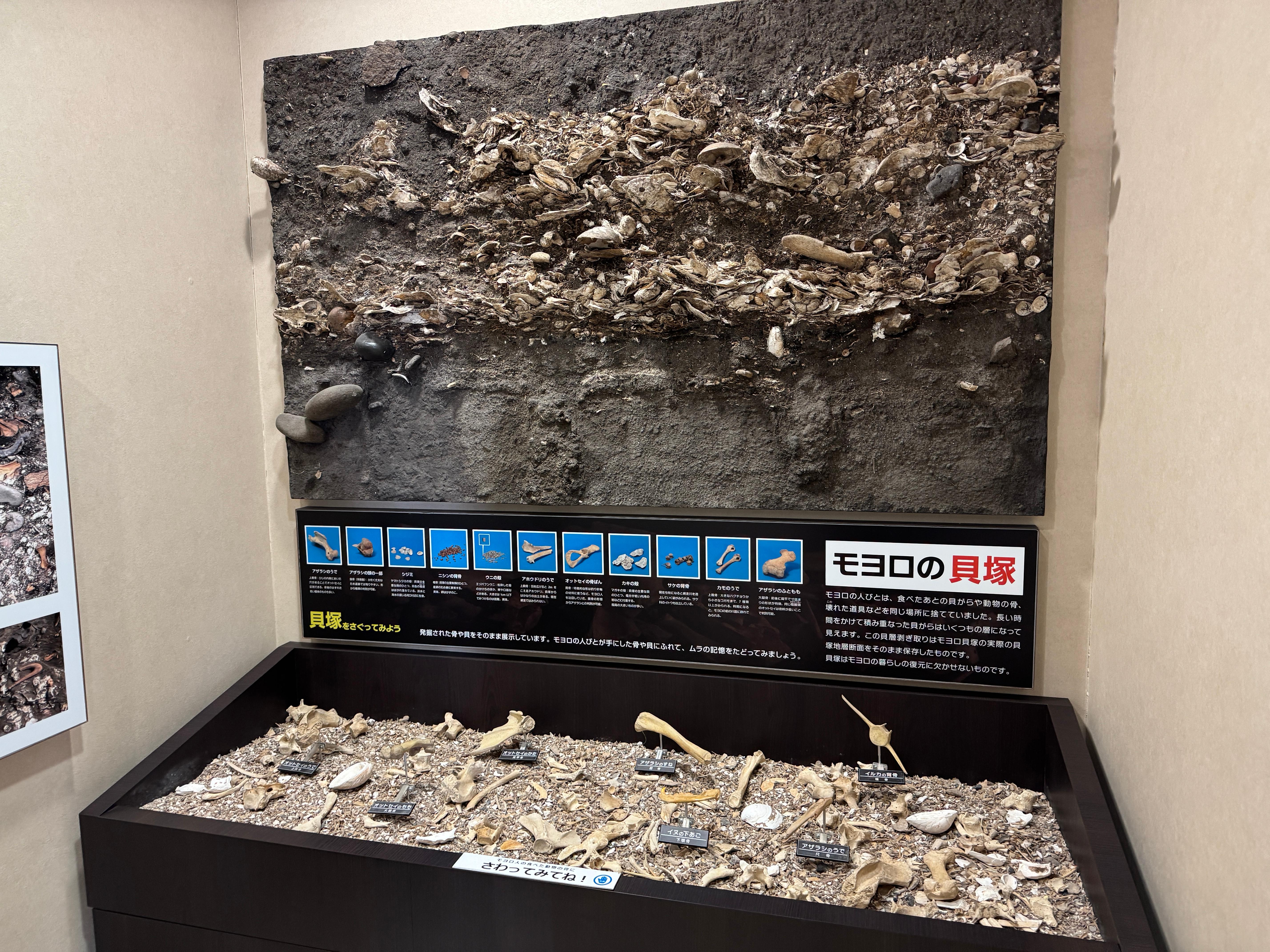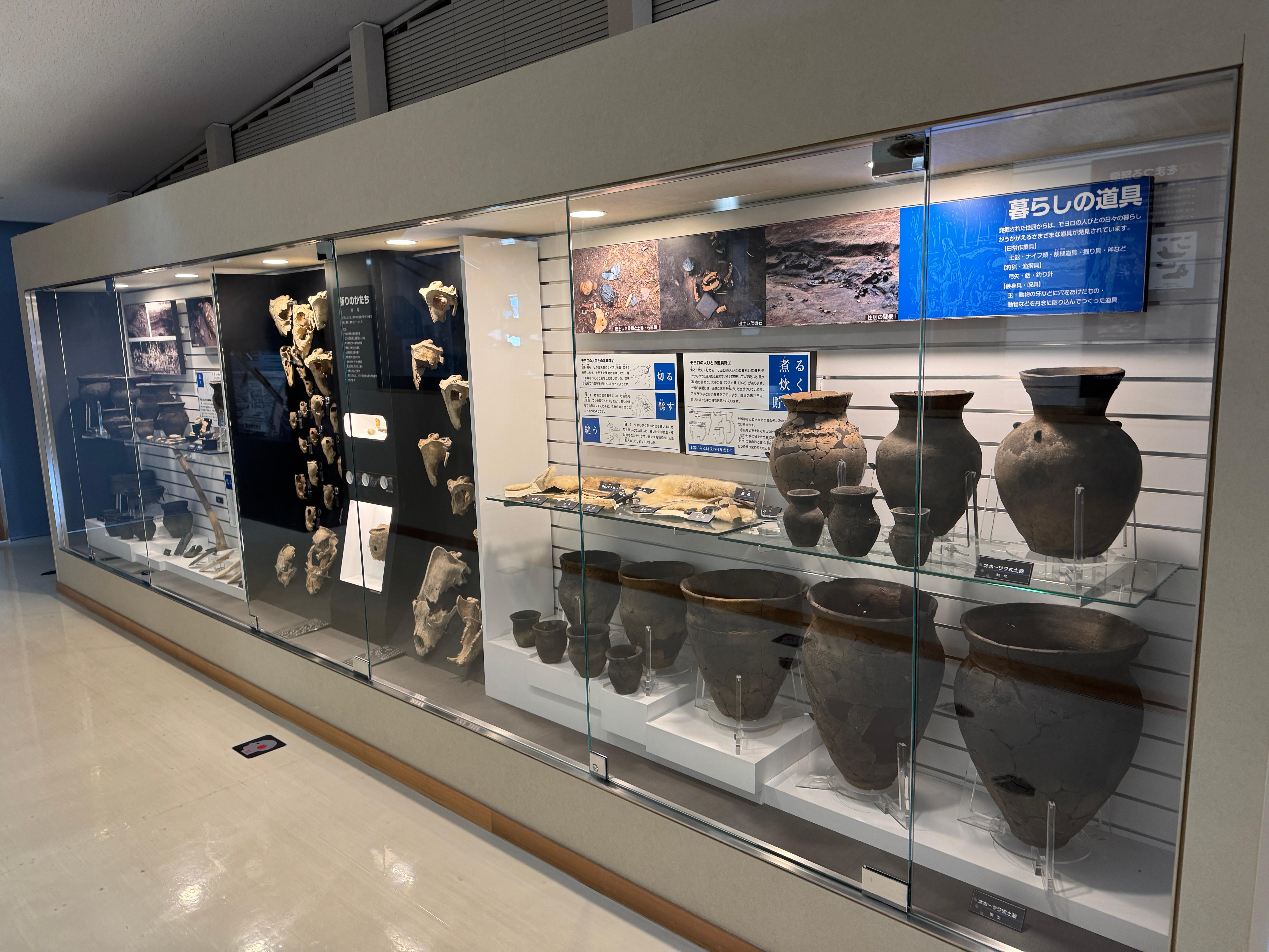 모요로 패총에서 발굴된 여러 유물들이 전시되고 있는데