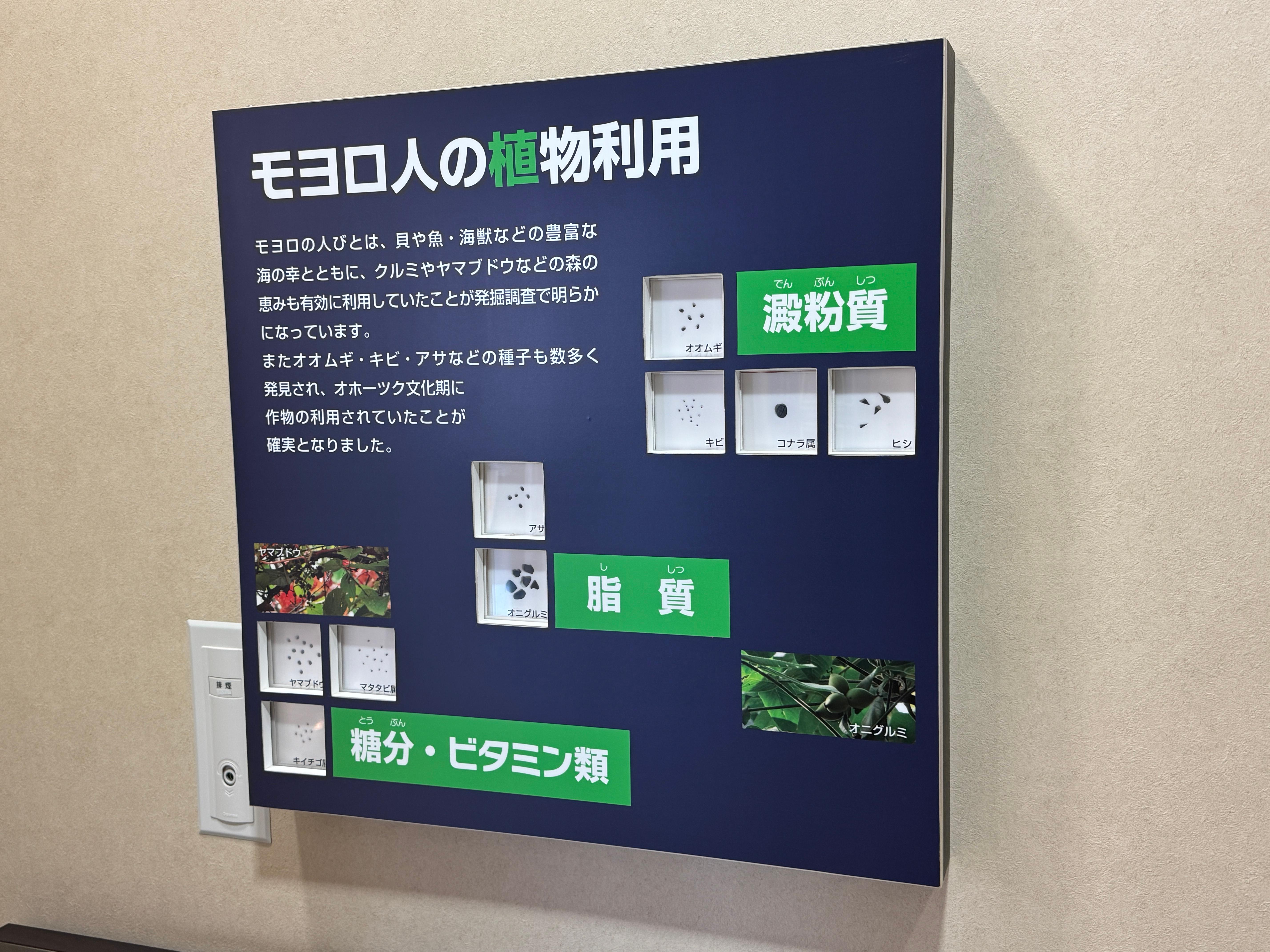 모요로 패총에 남아있는 호두, 머루, 보리, 기장, 마의 흔적에 대해서도 알아보고