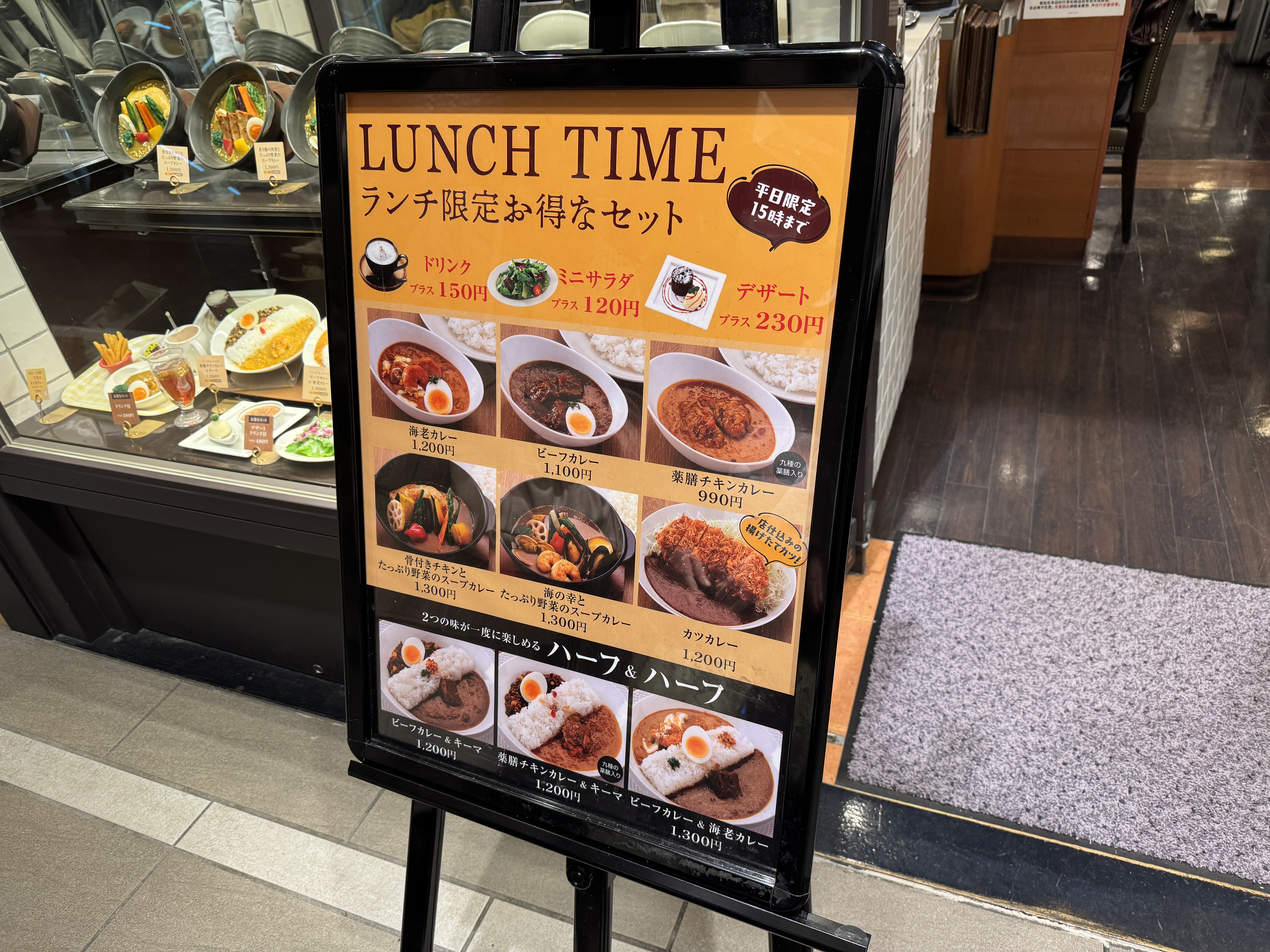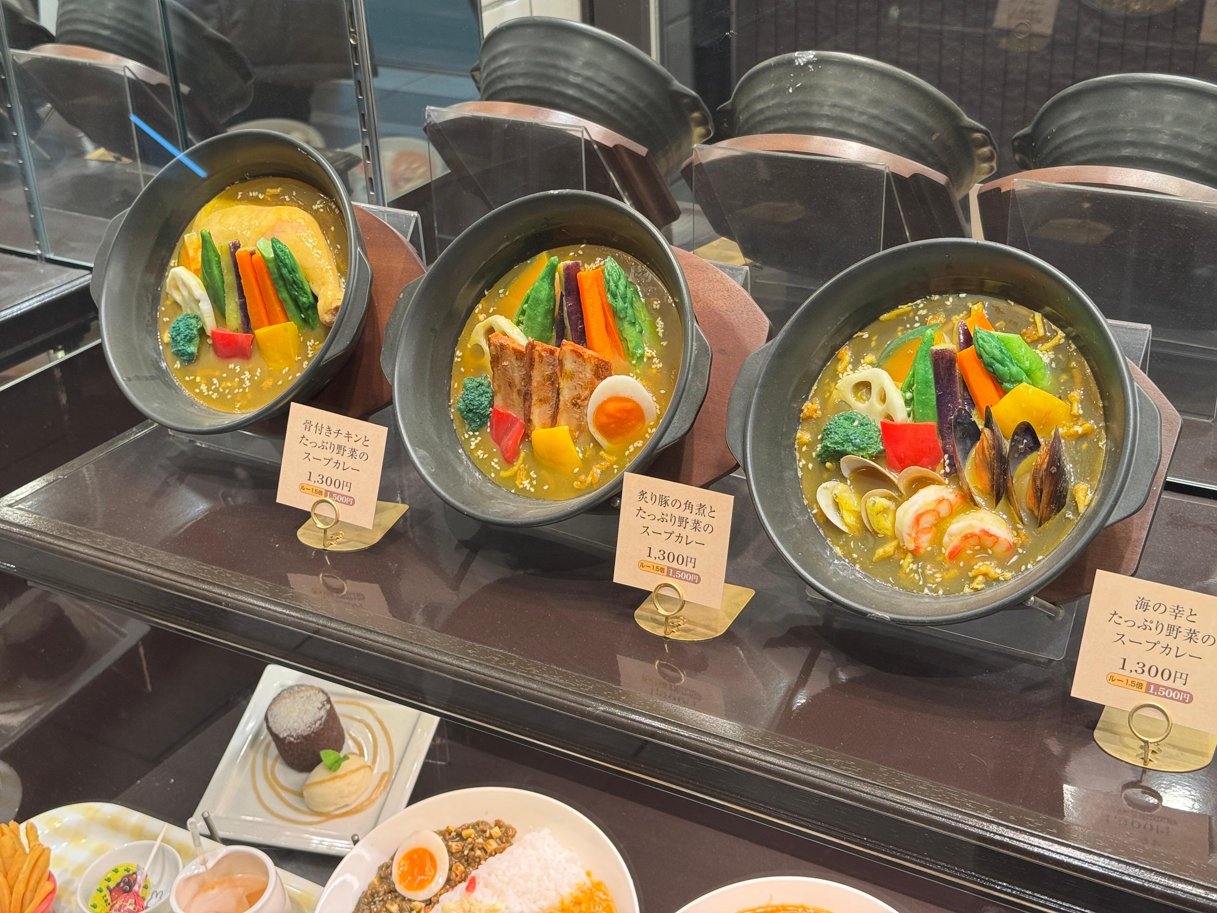 메뉴판 오른쪽에 있는 구운 돼지고기 각조림과 푸짐한 야채 스프카레를 주문.
