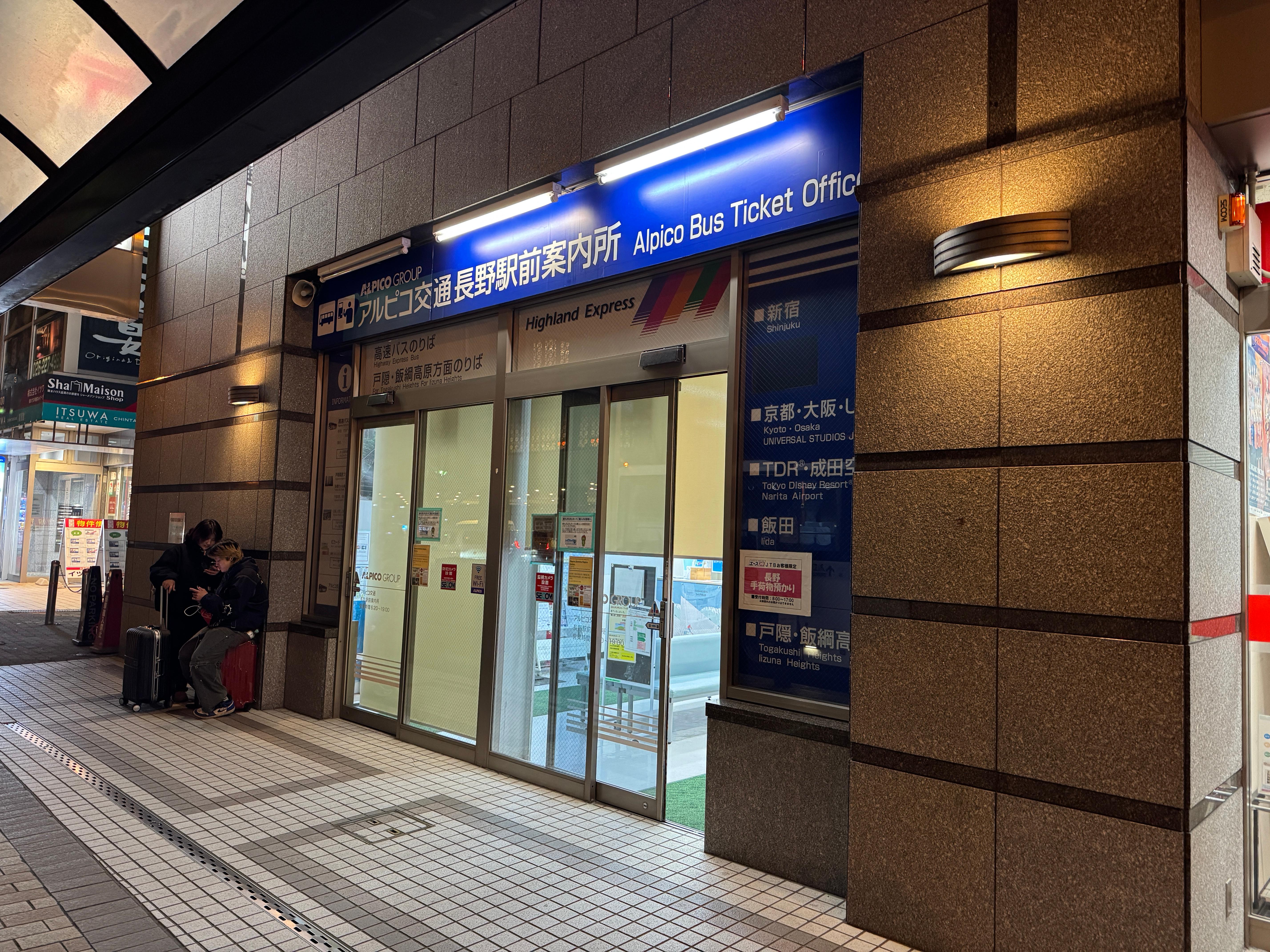 역 건너편에 있는 알피코 교통 나가노역전 영업소에 도착했습니다.