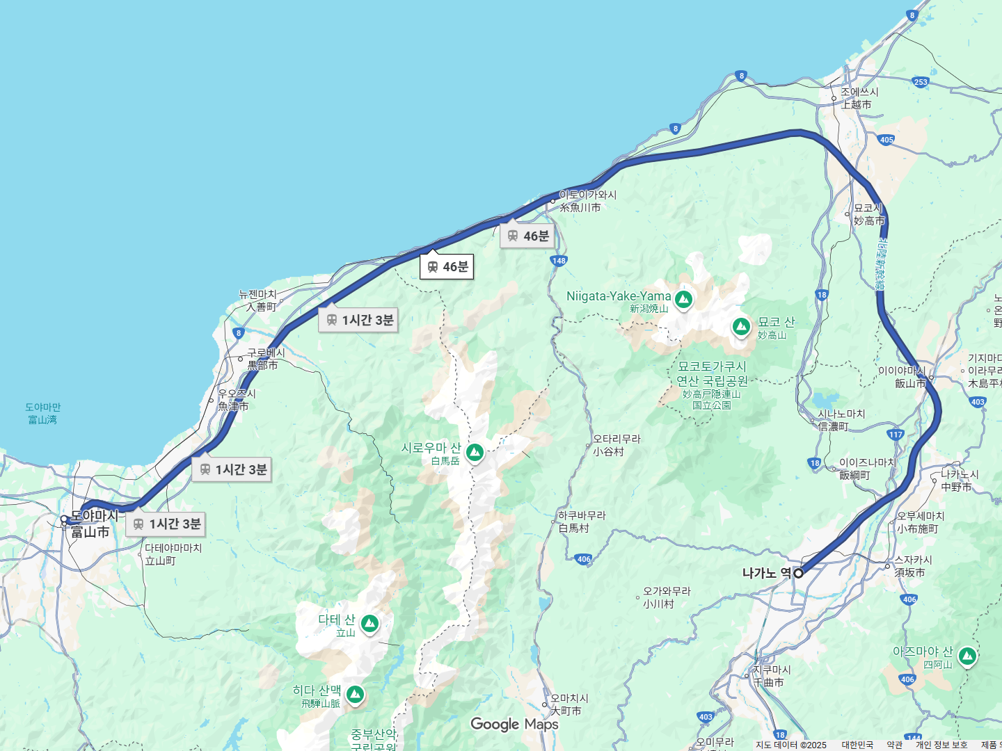 나가노역에서 토야마역까지 이동 시간이 1시간이 채 안되다 보니