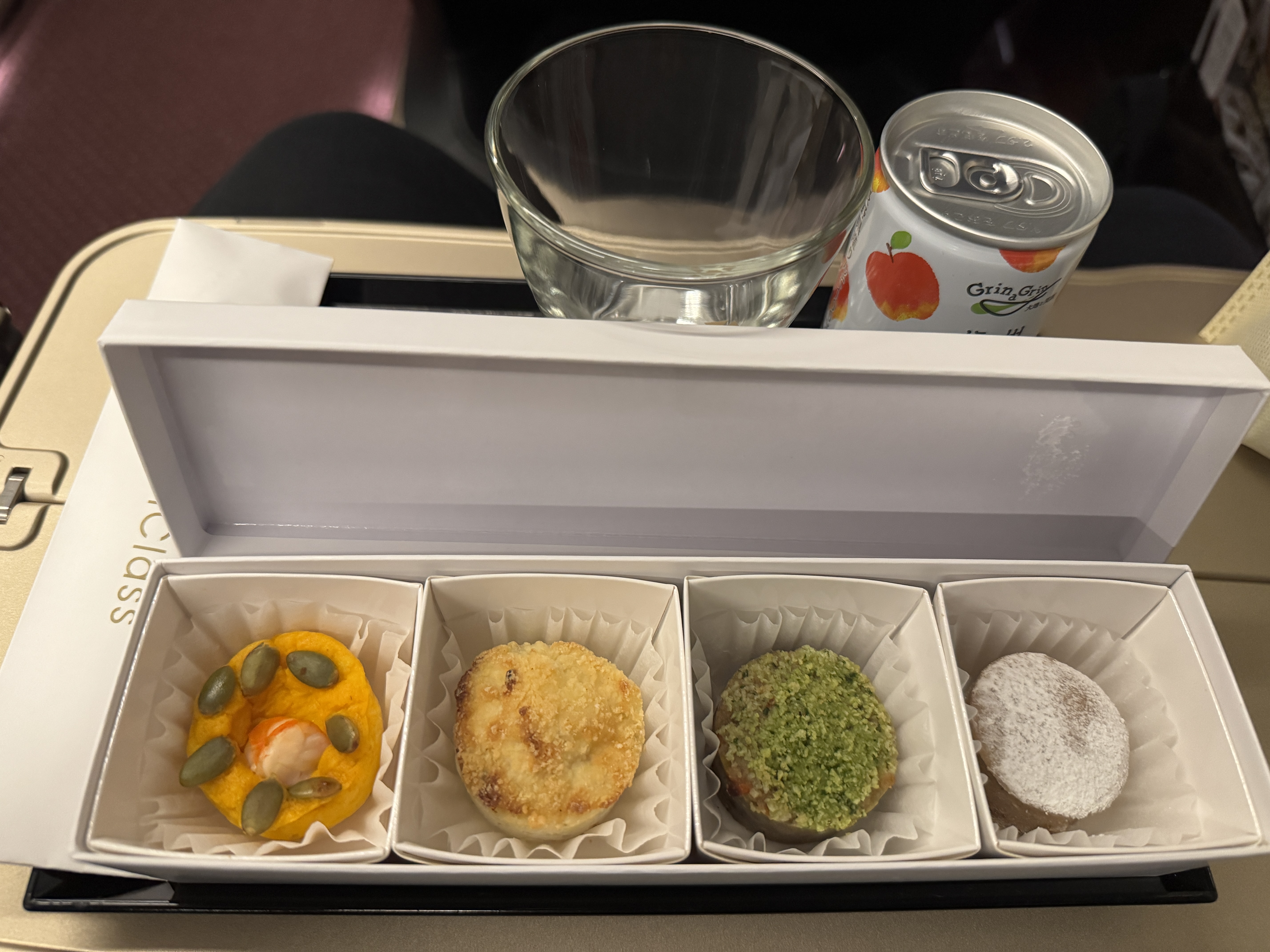 카가야키 그란클래스에 올라탔으니 전담 승무원에게 리프레시먼트 기내식을 받을 수 있는데요.