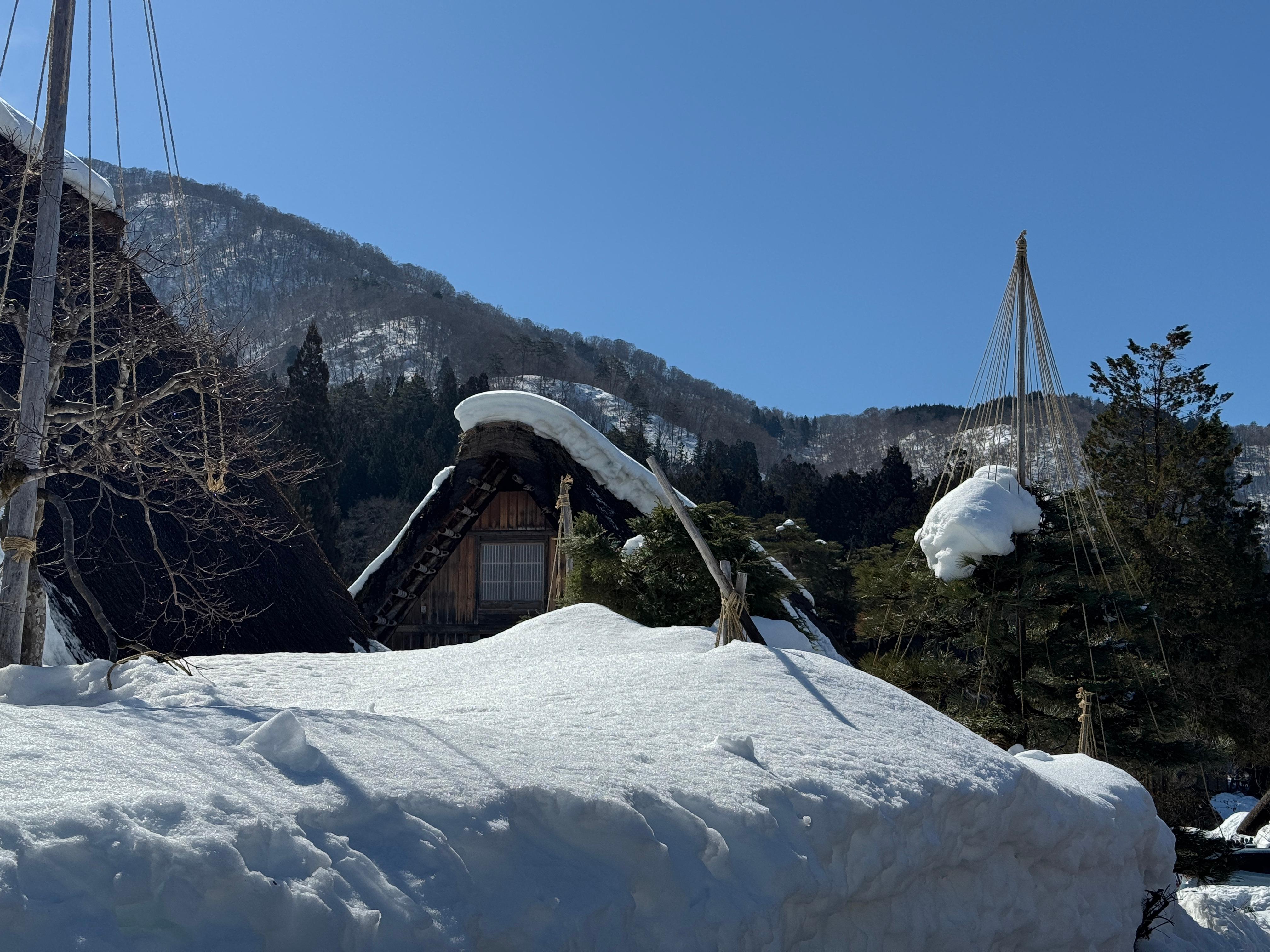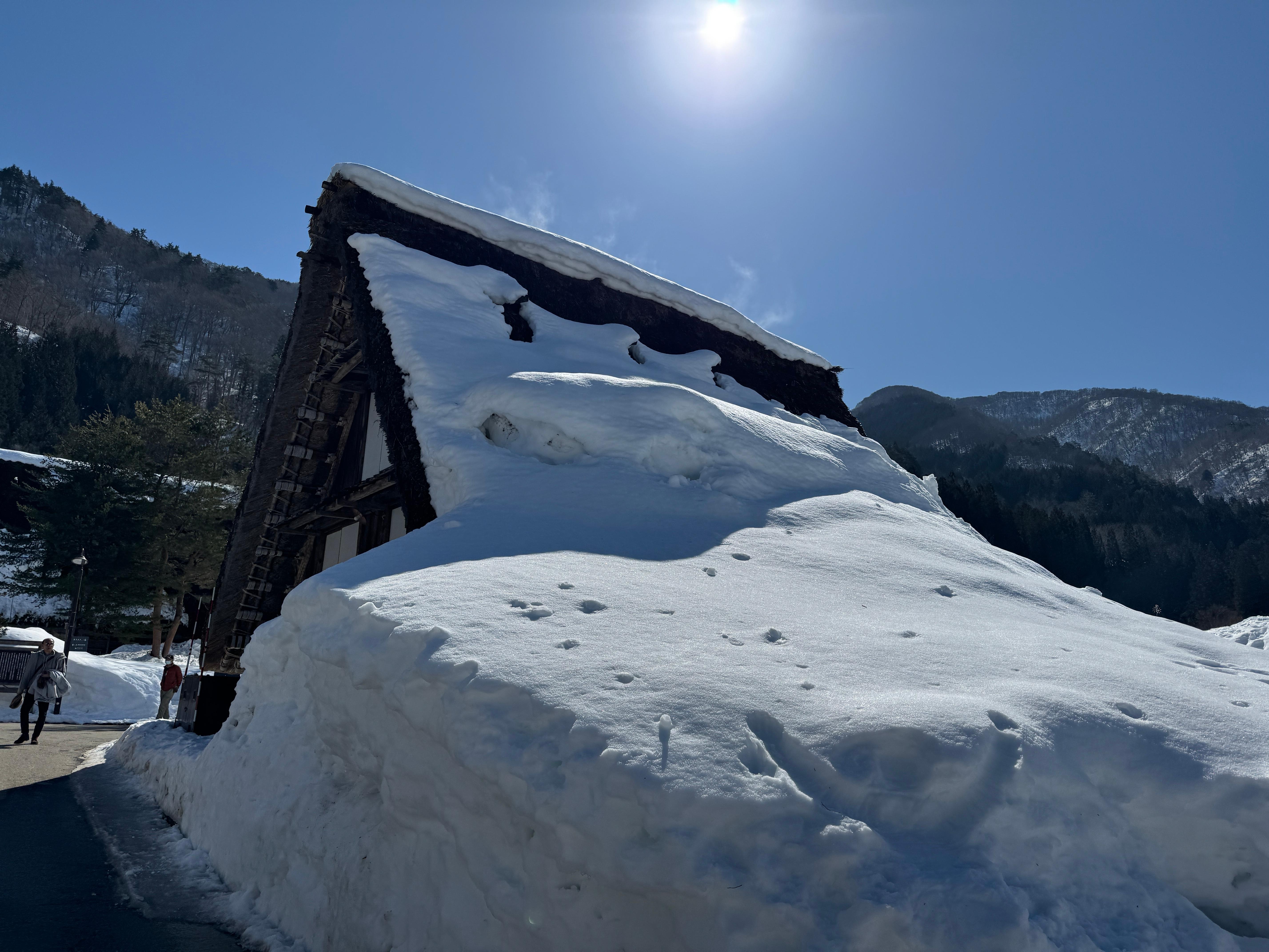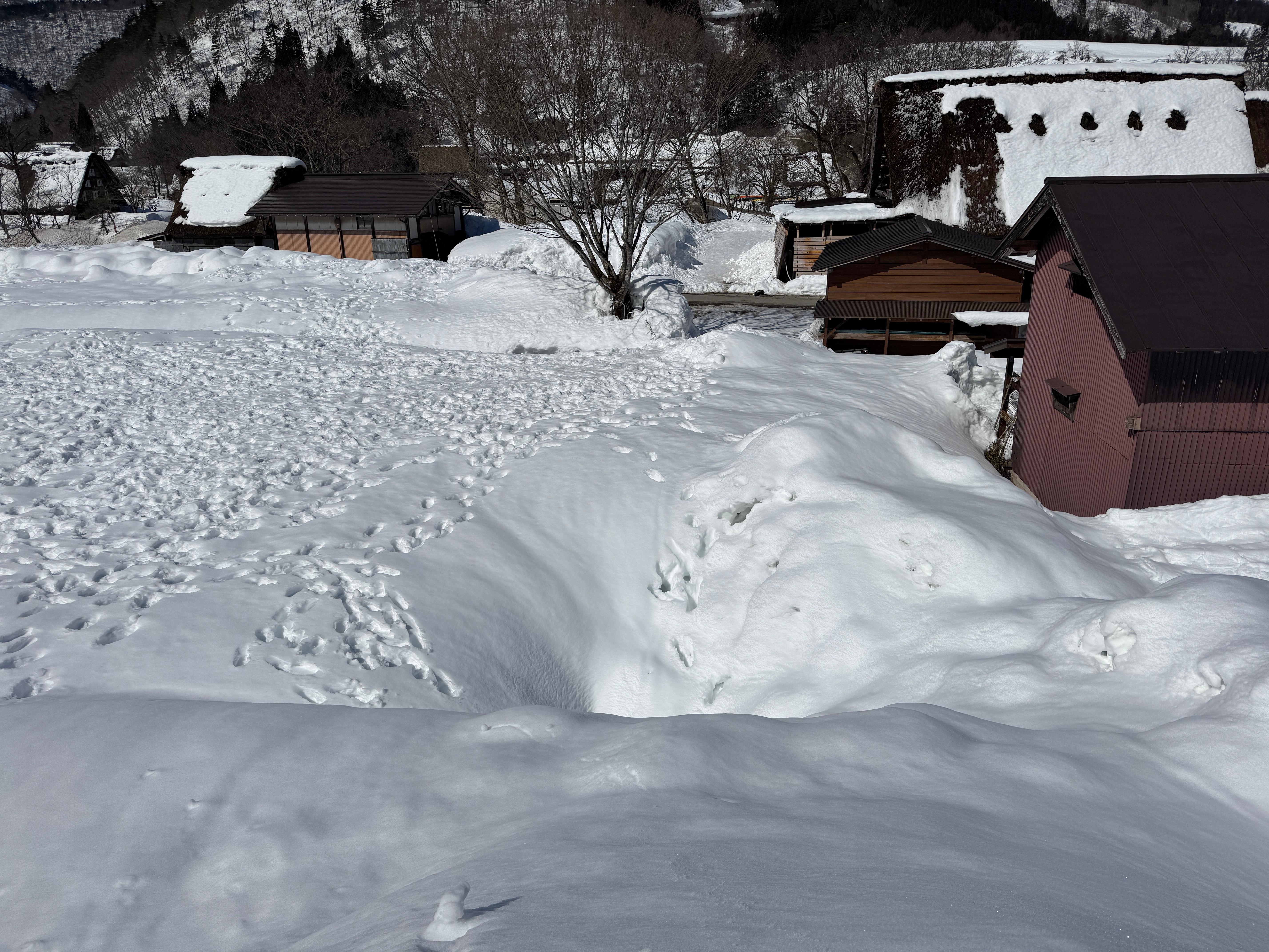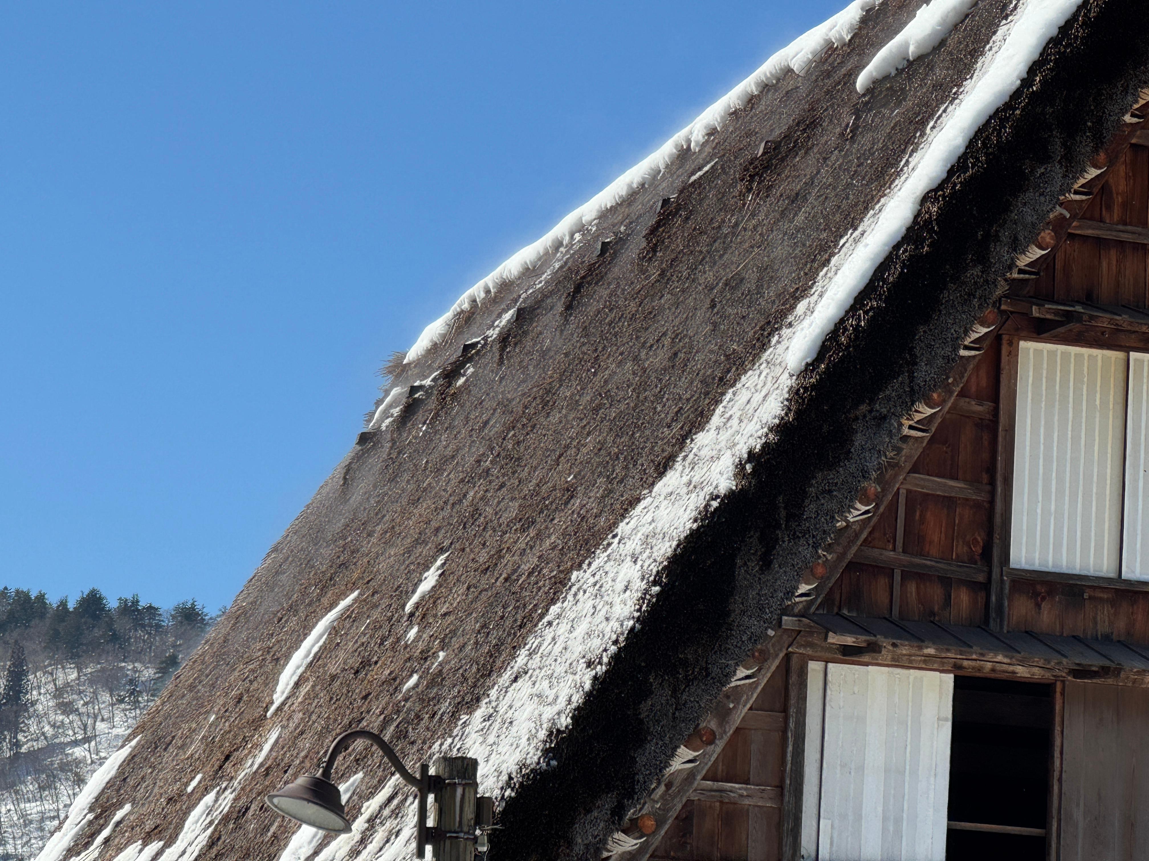 다른 곳에 비해 갓쇼즈쿠리 지붕을 한 집은 눈이 덜 쌓이는 편이지만
