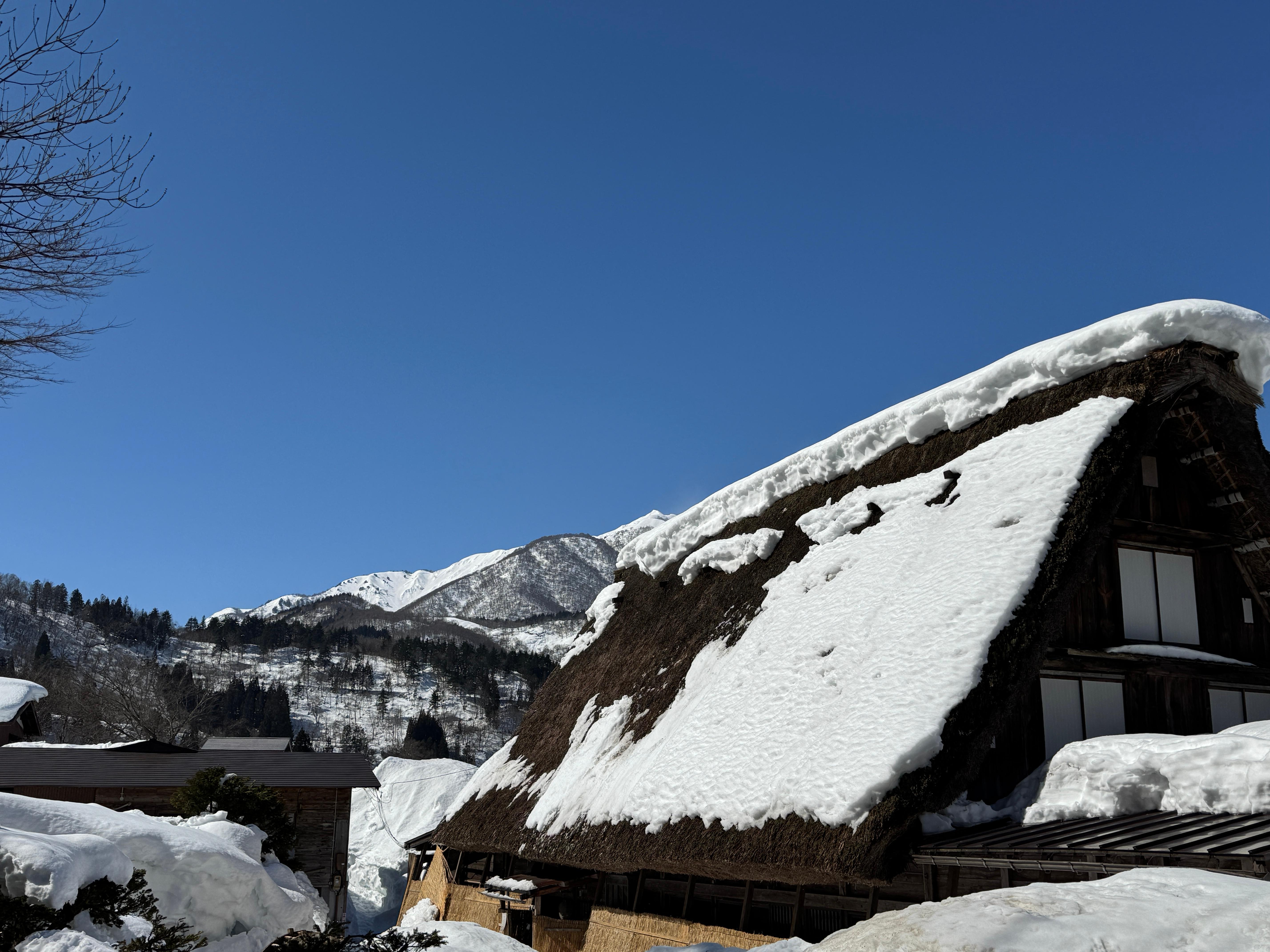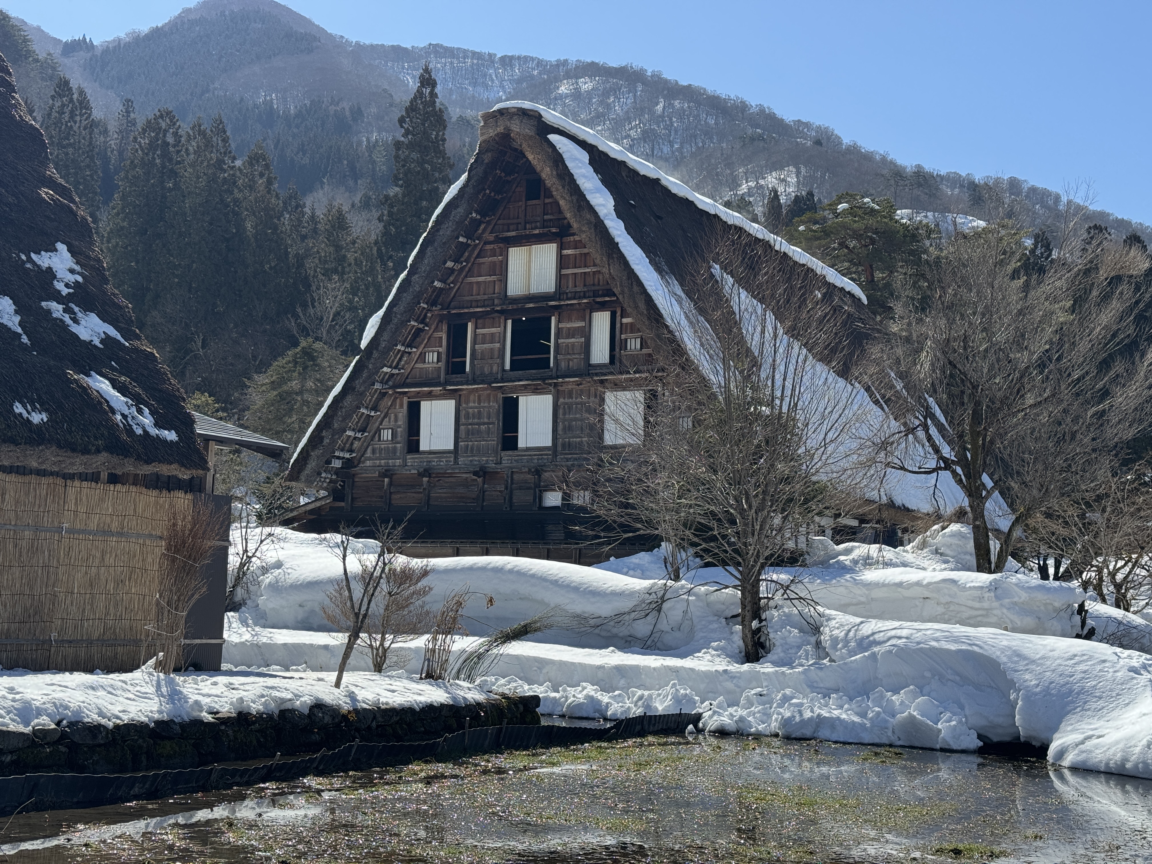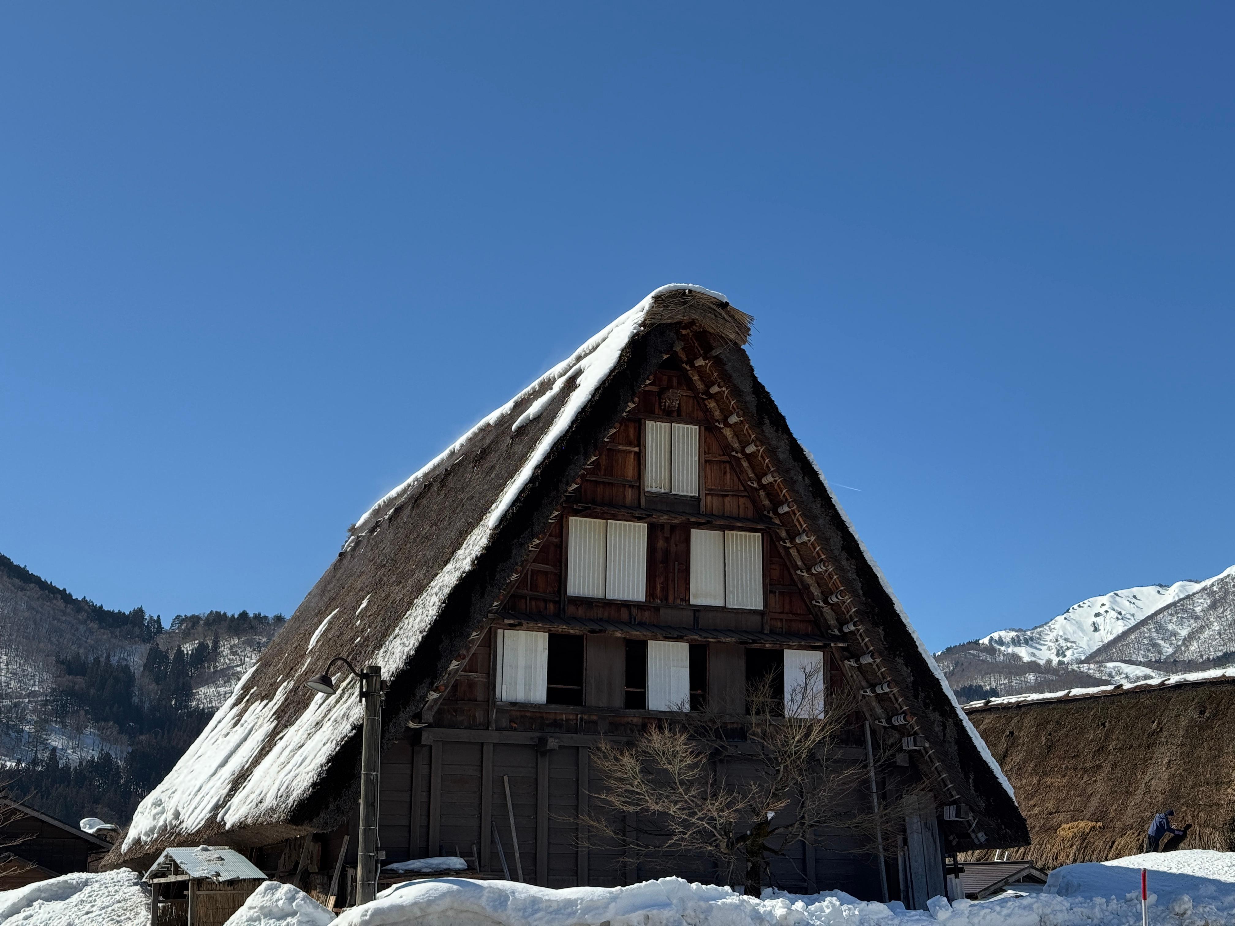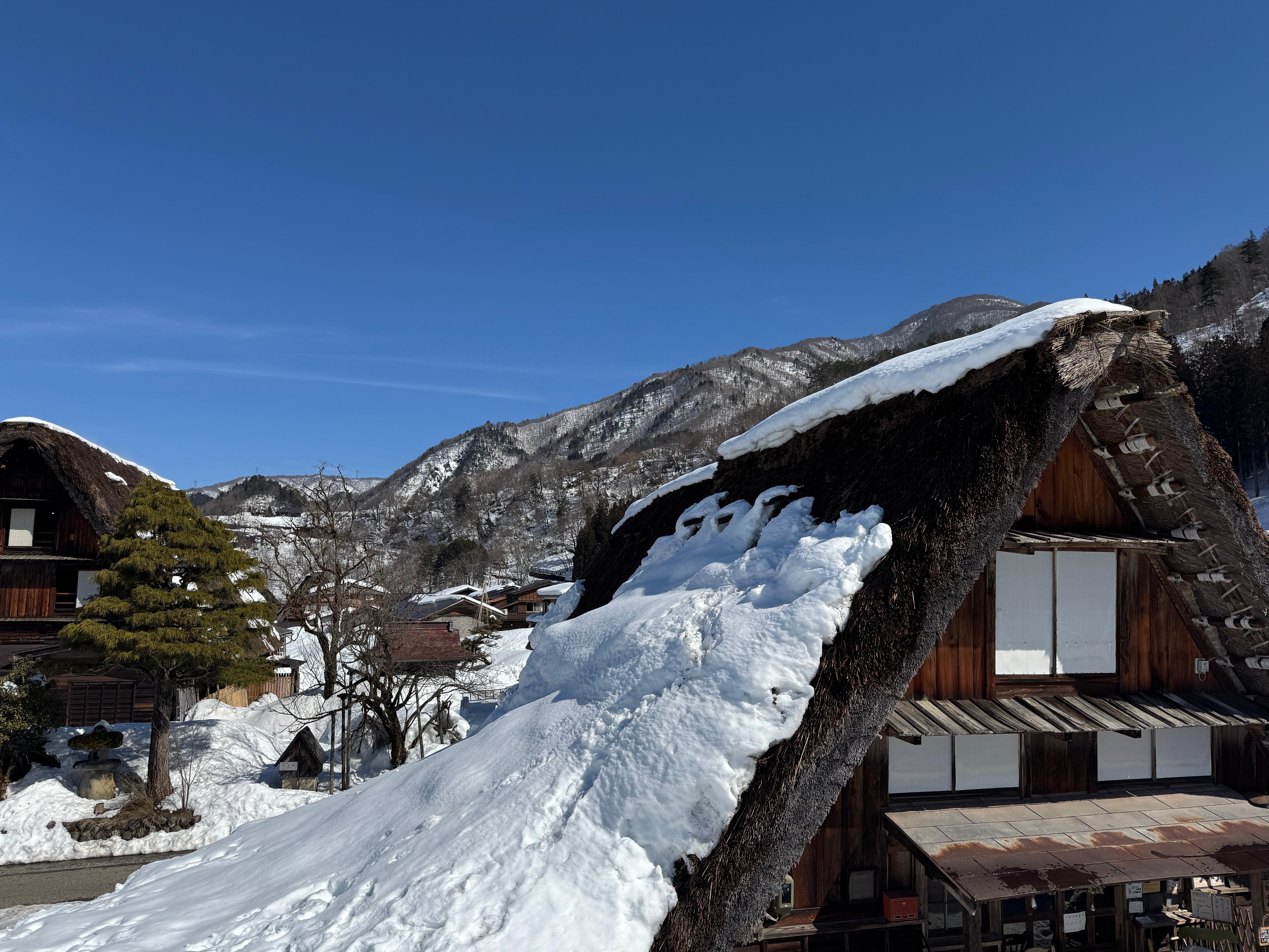 다른 곳에 비해 갓쇼즈쿠리 지붕을 한 집은 눈이 덜 쌓이는 편이지만