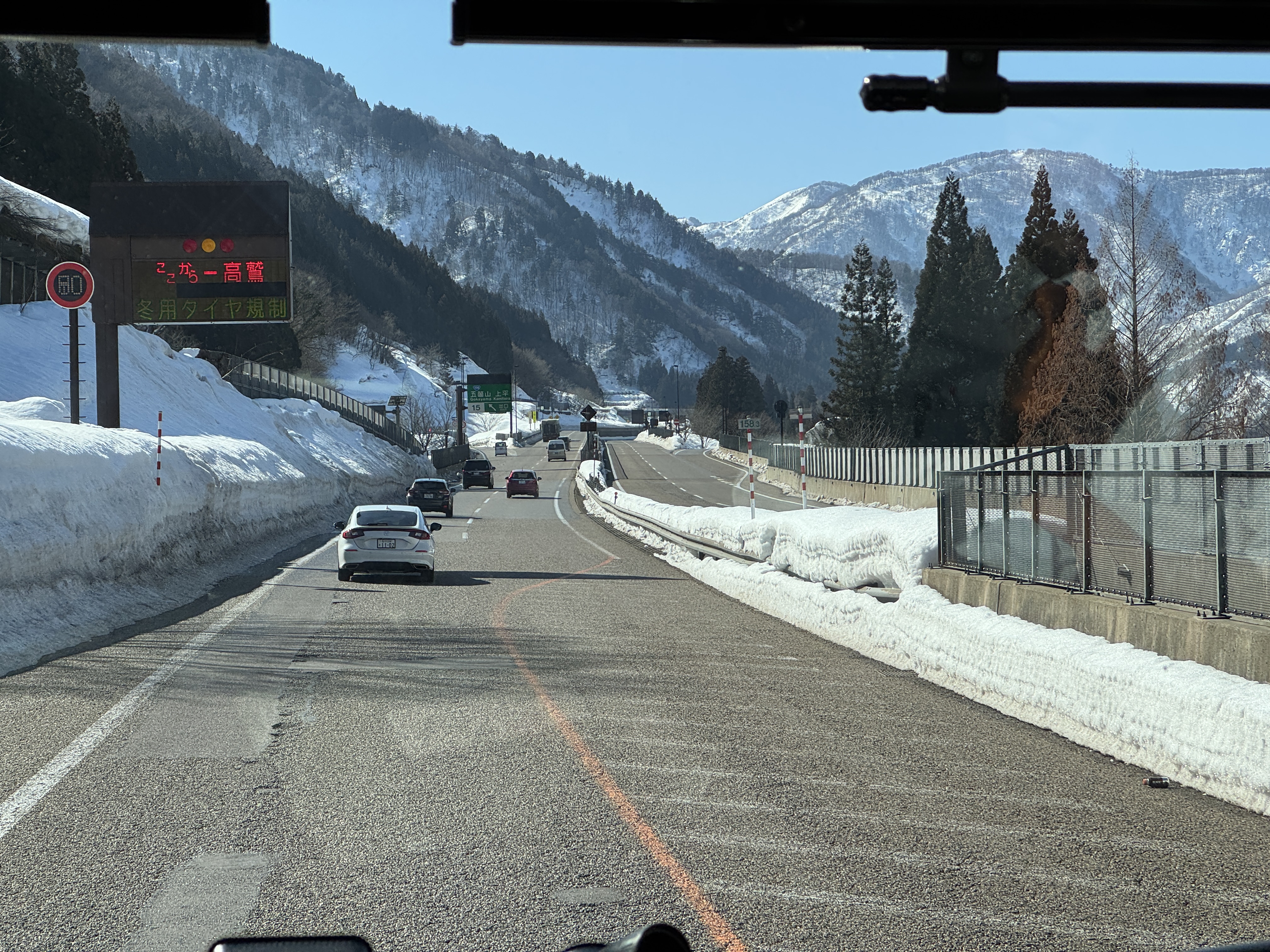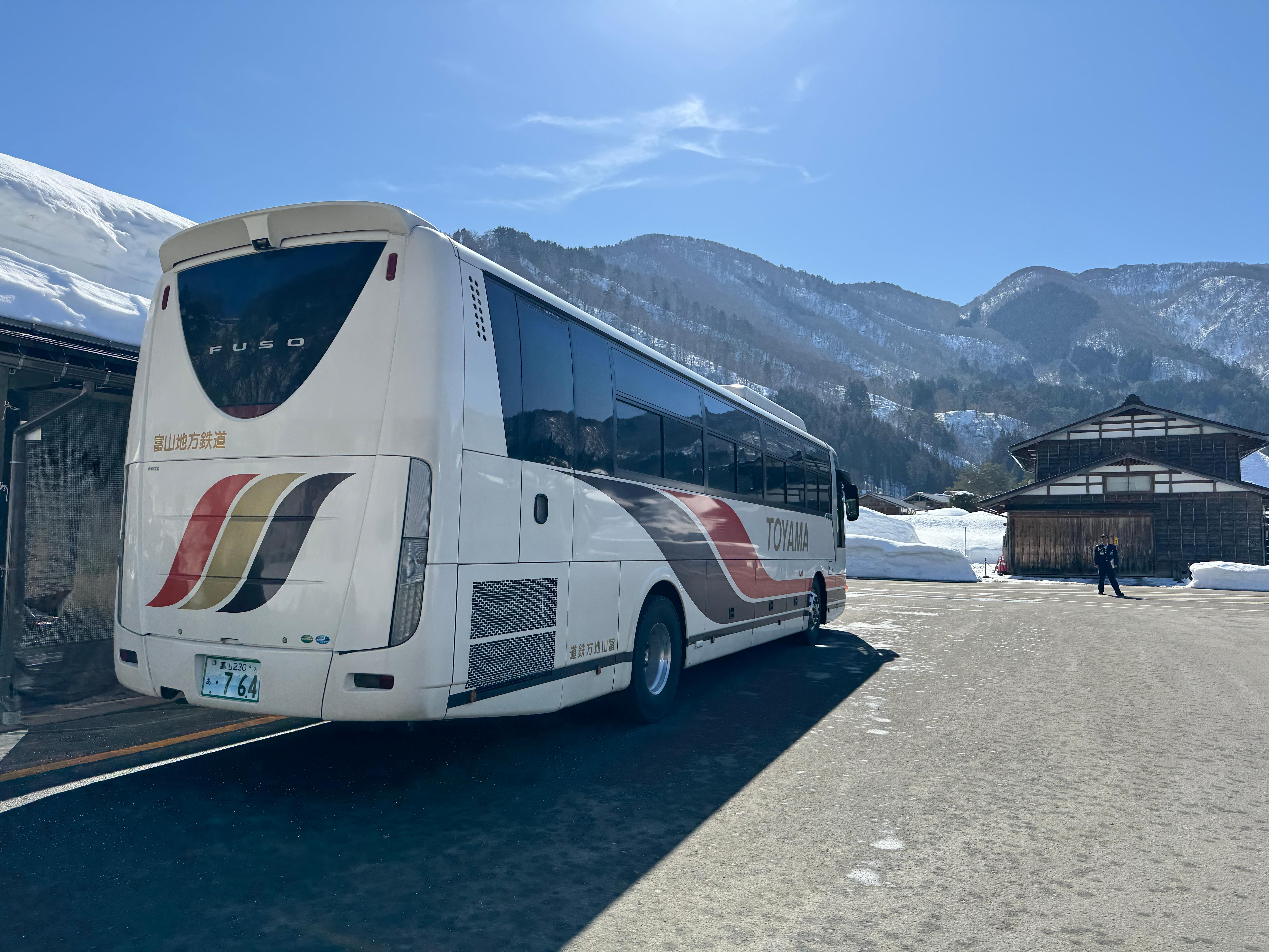 토야마 출발 시라카와고 경유 타카야마행 고속버스.