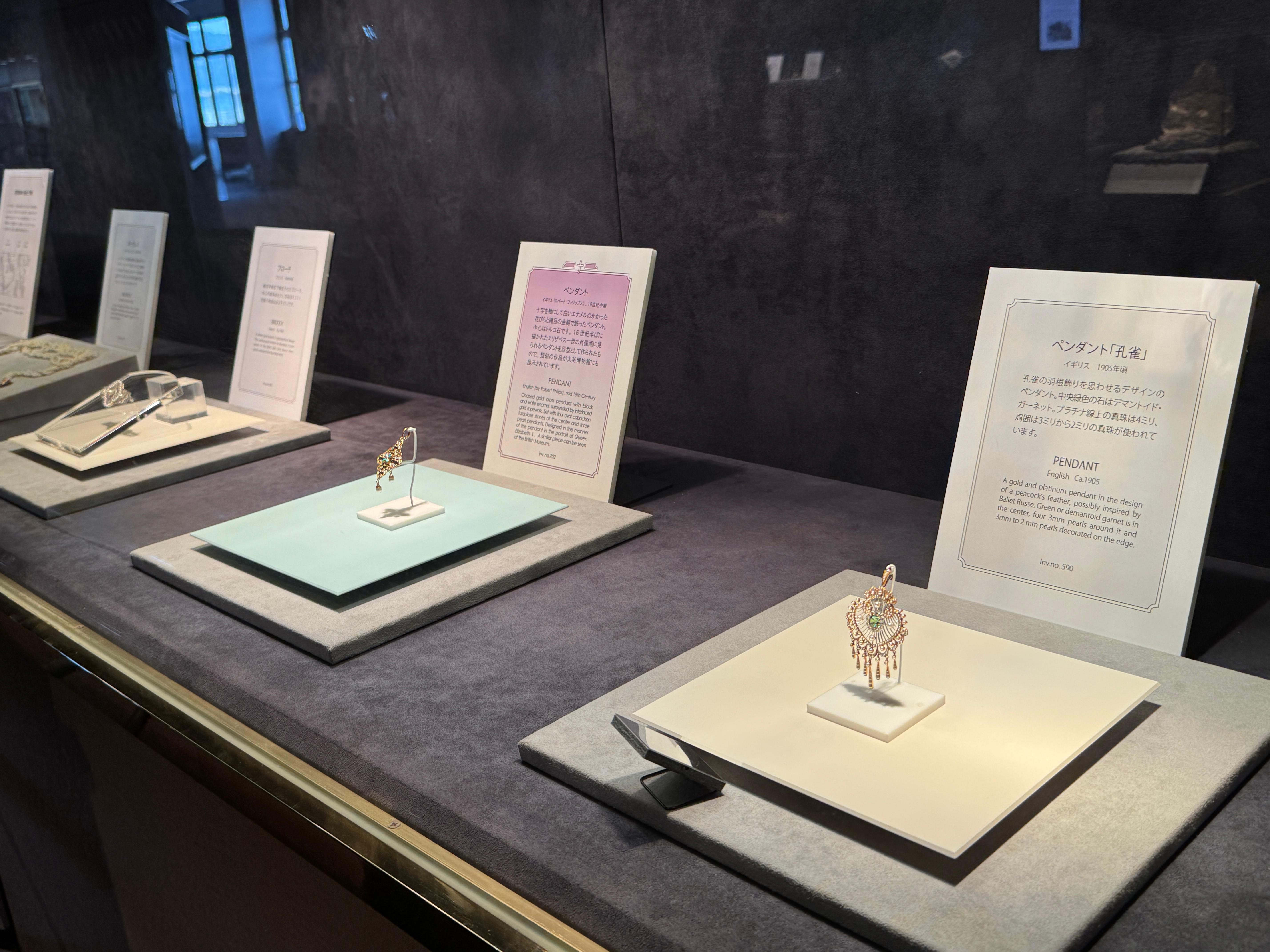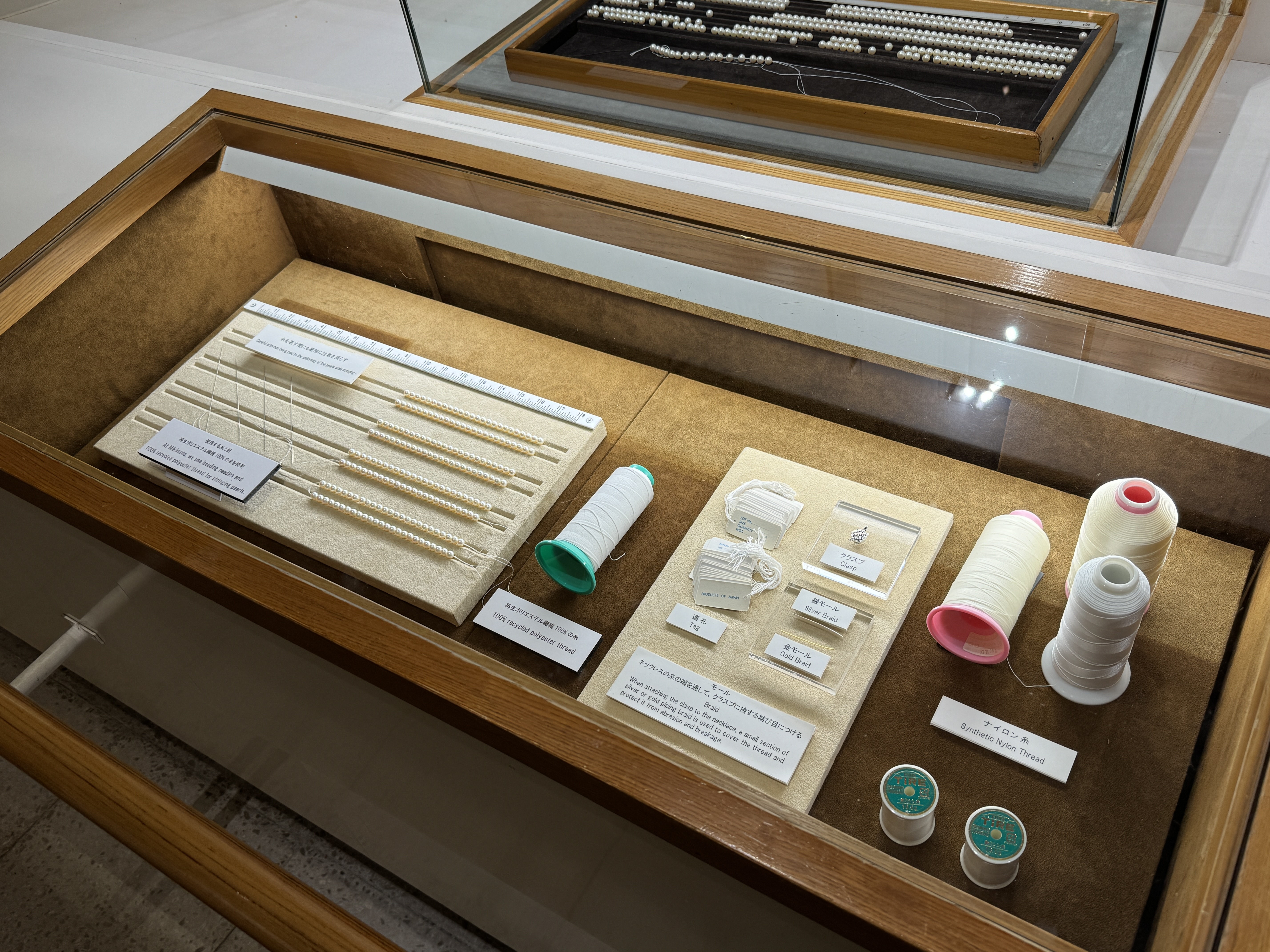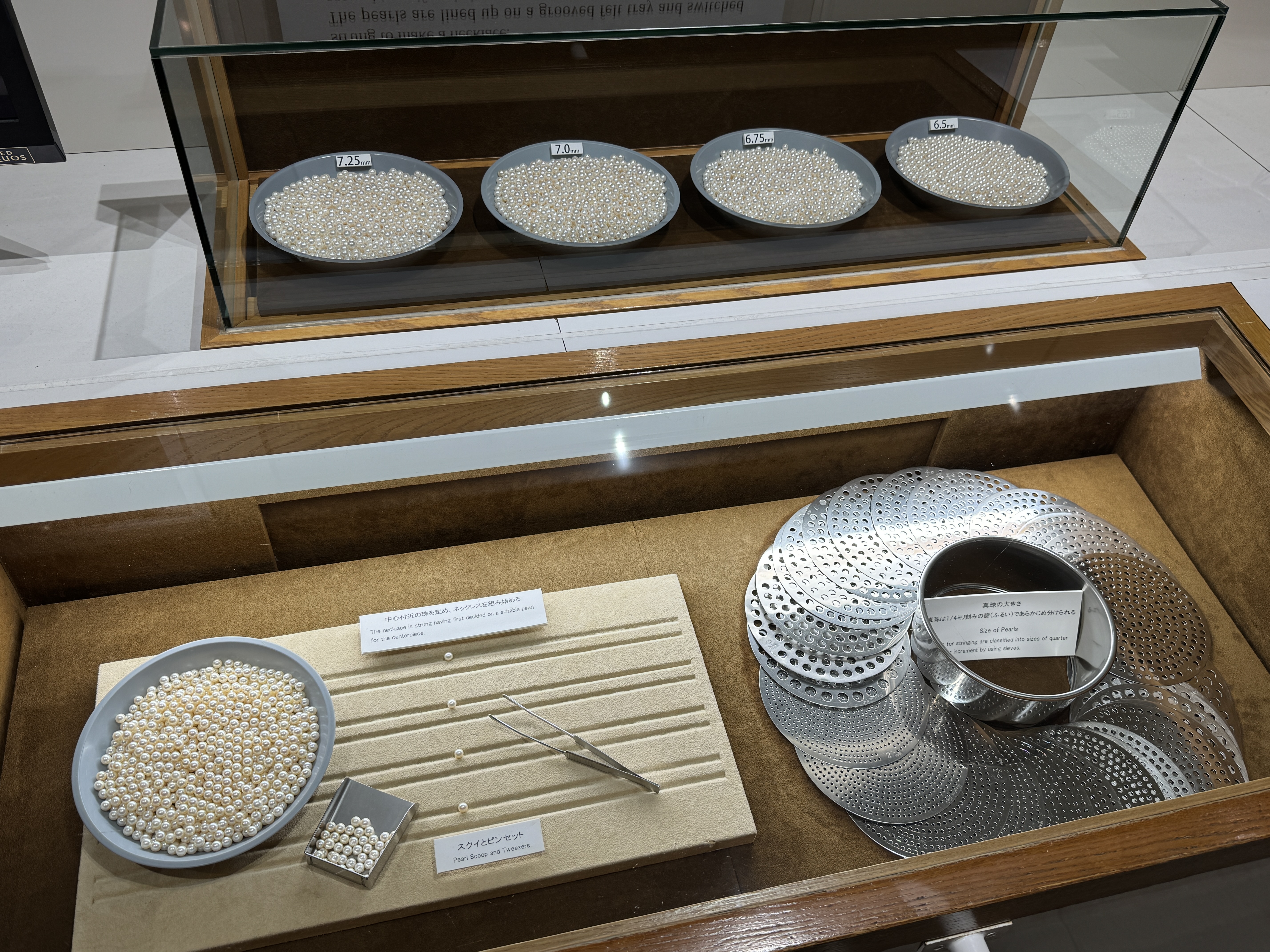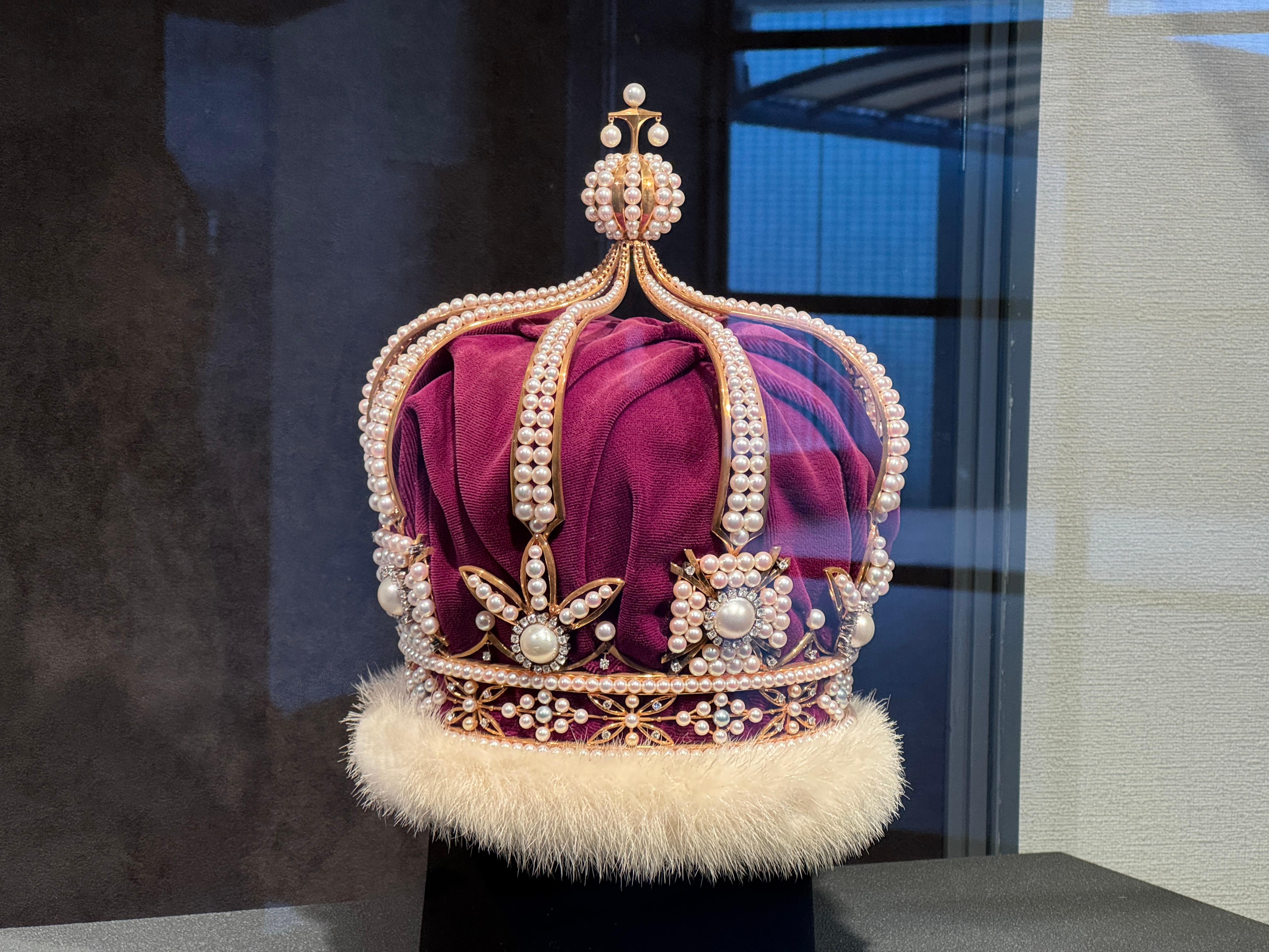 미키모토 진주로 만든 멋진 왕관 2개를 전시하고 있네요.