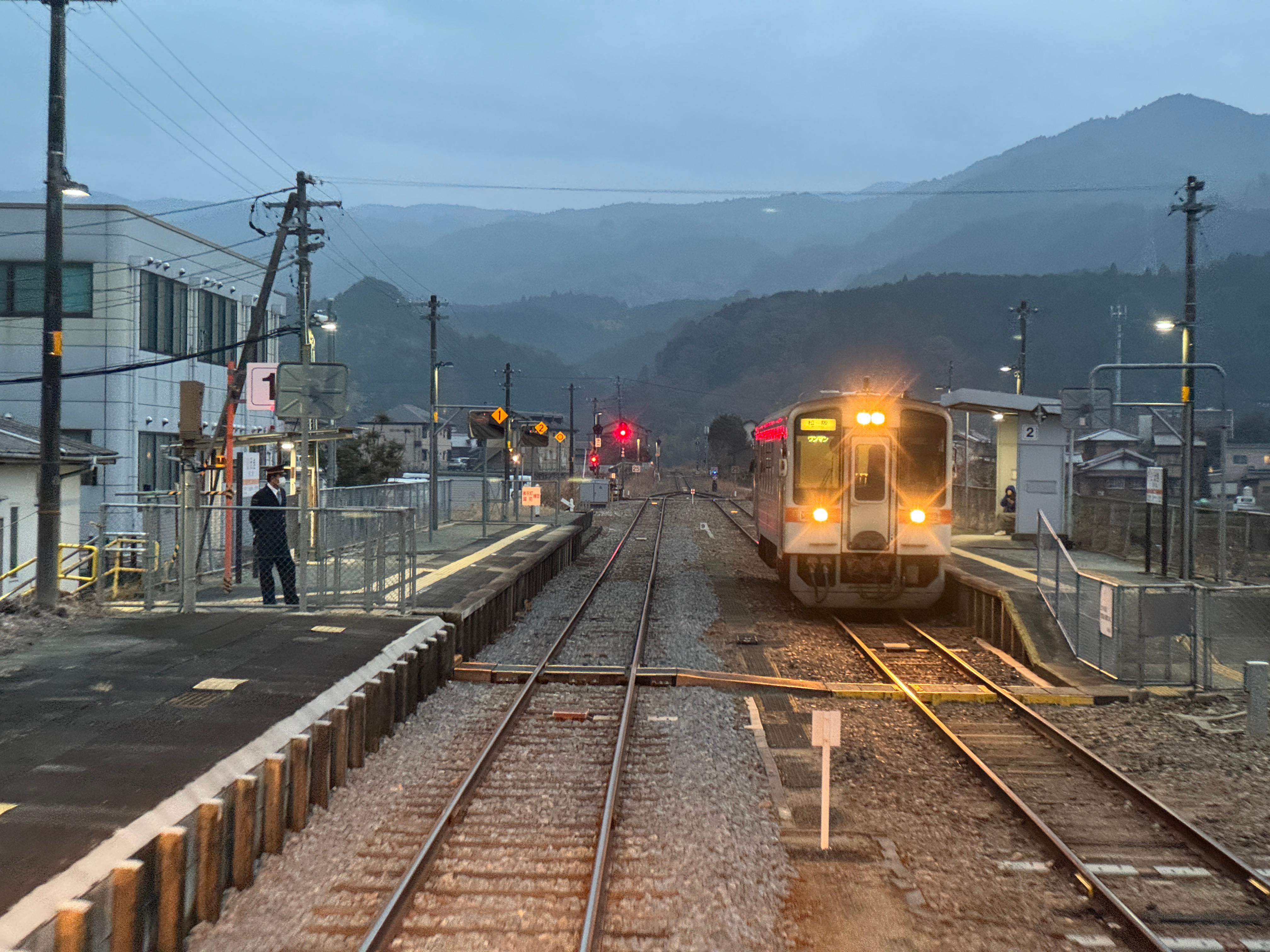 상행 열차와 하행 열차가 만나는 이에키역에 도착하면