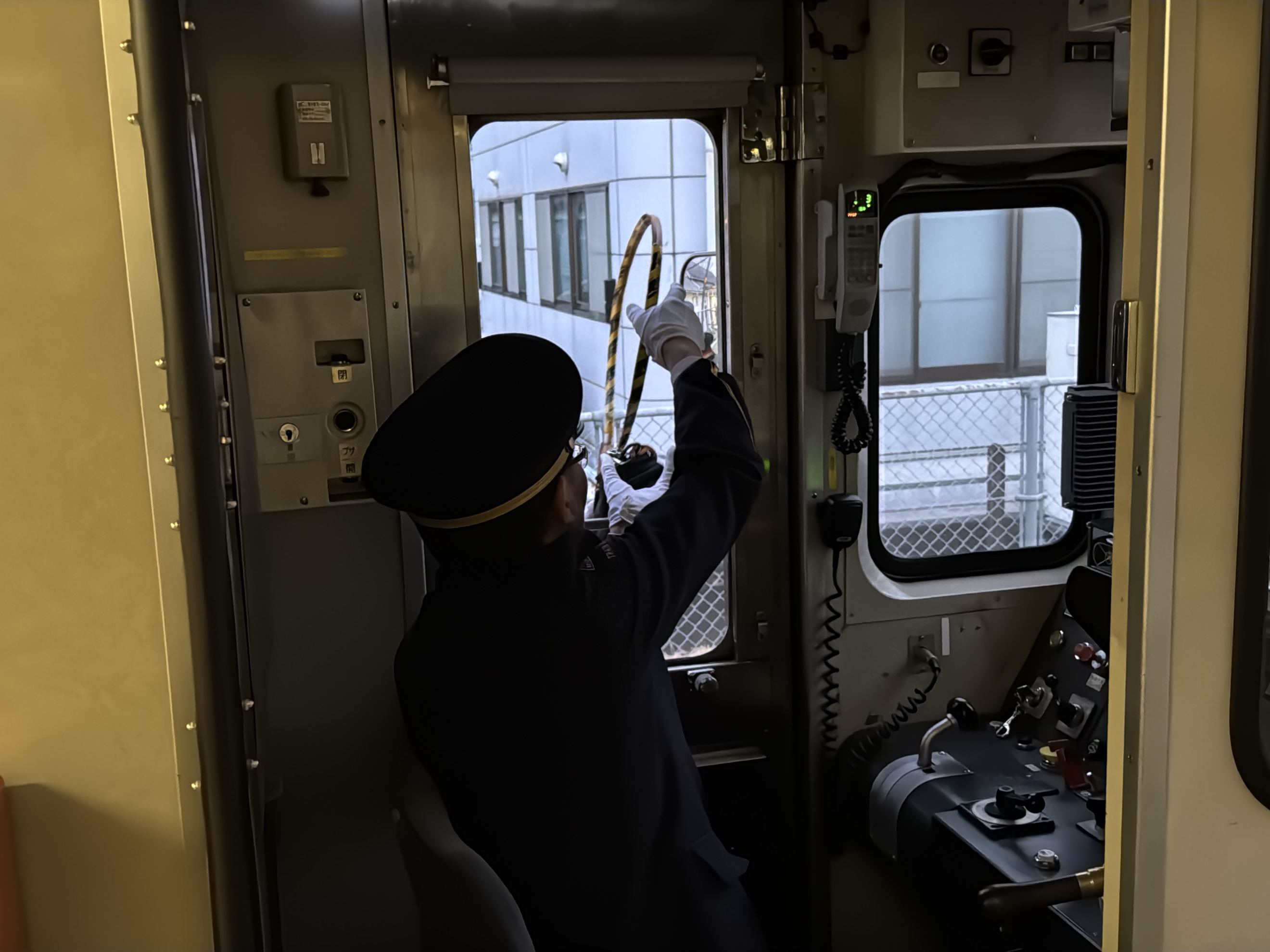 기관사가 옆에 걸고 있던 저 물건을 들고