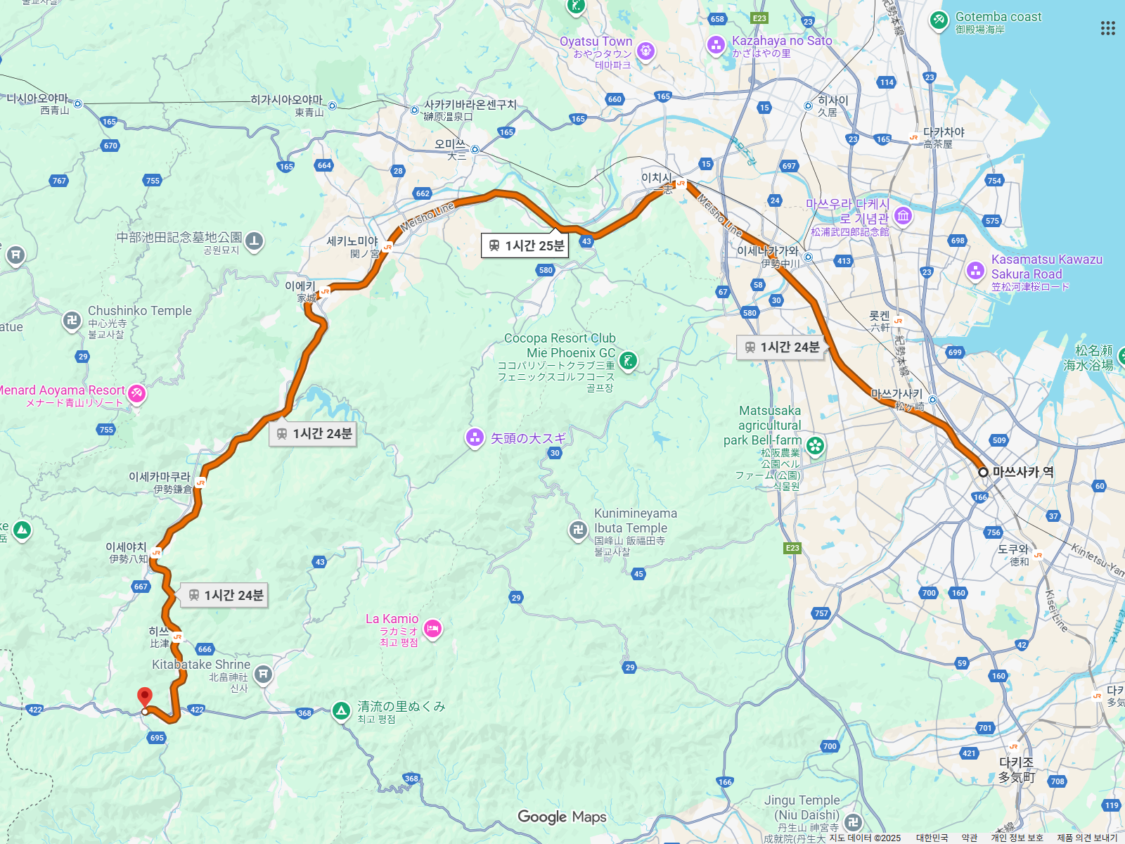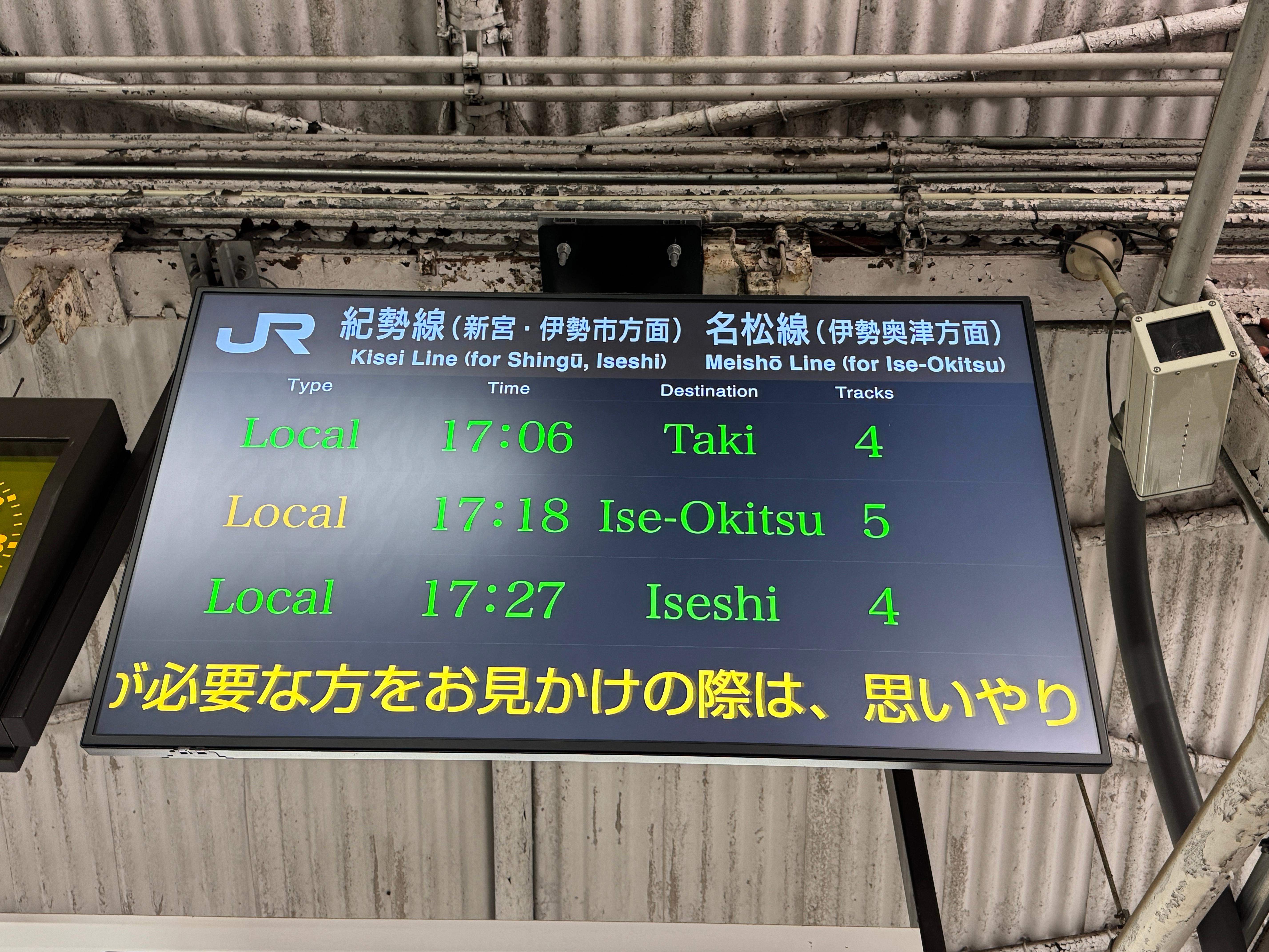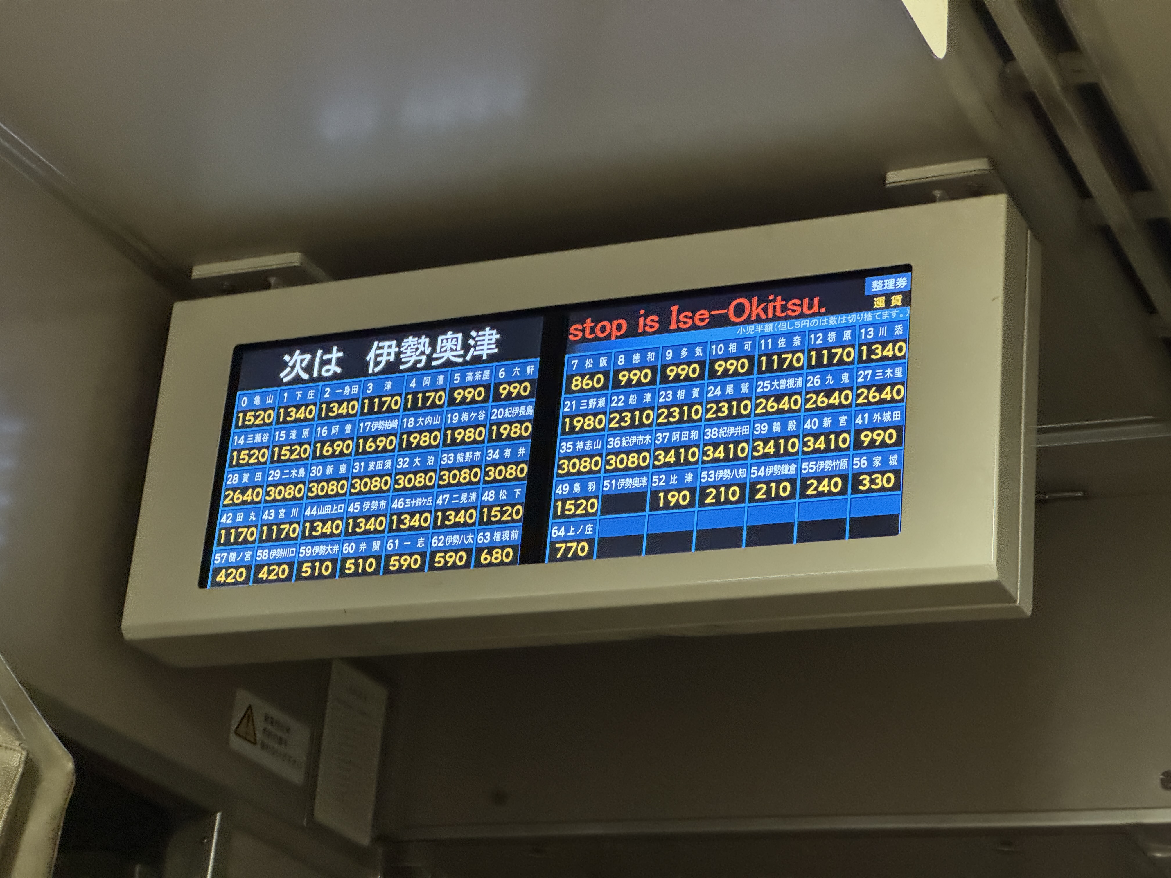 마츠사카역을 출발해서 1시간 20분쯤 지나 종점 이세오키츠역에 도착하려는 즈음