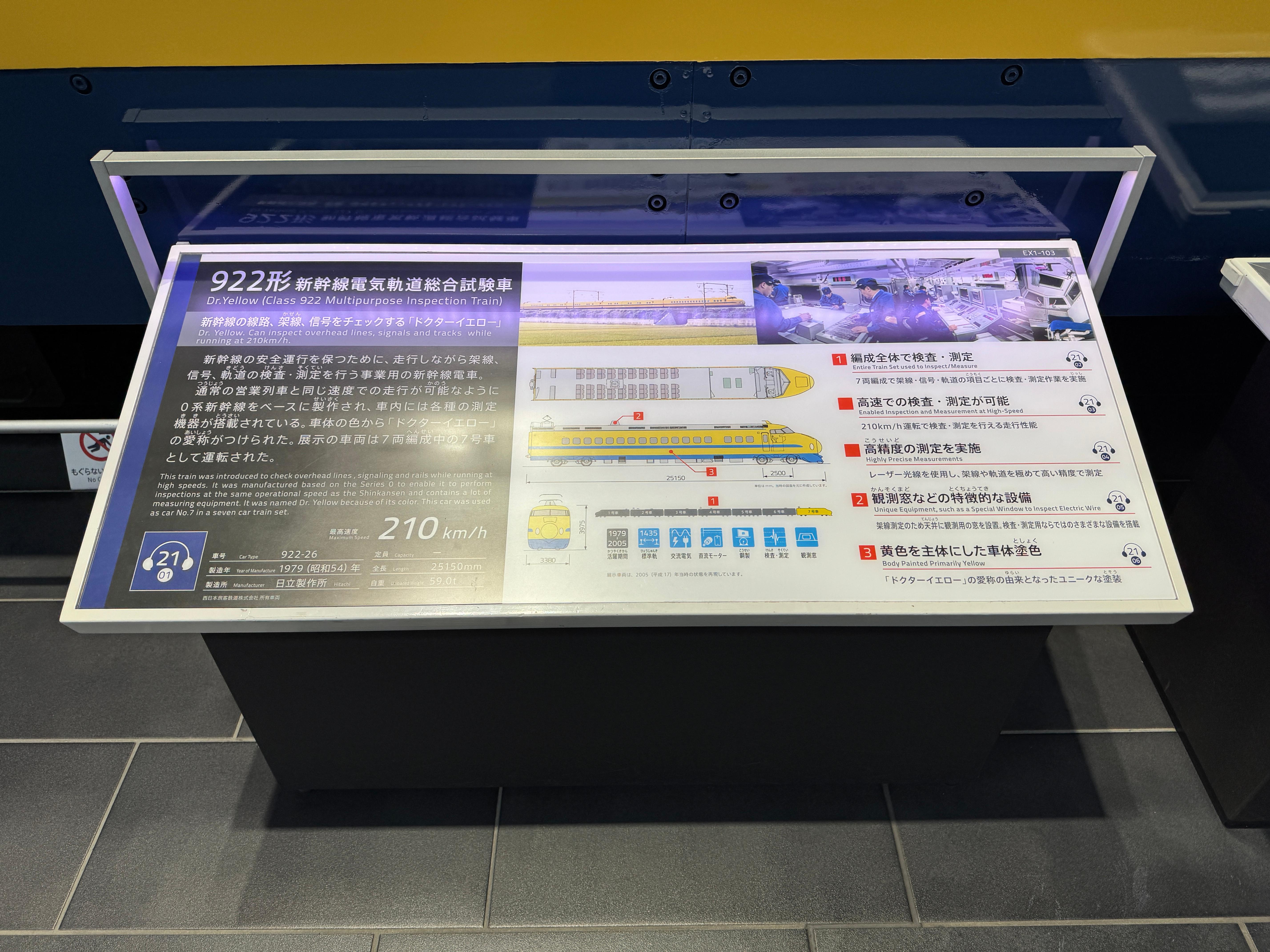 여기 있던 922형 전동차는 원래 JR 서일본에서 보유하던 것을 JR 토카이에서 빌려와서 전시했었는데