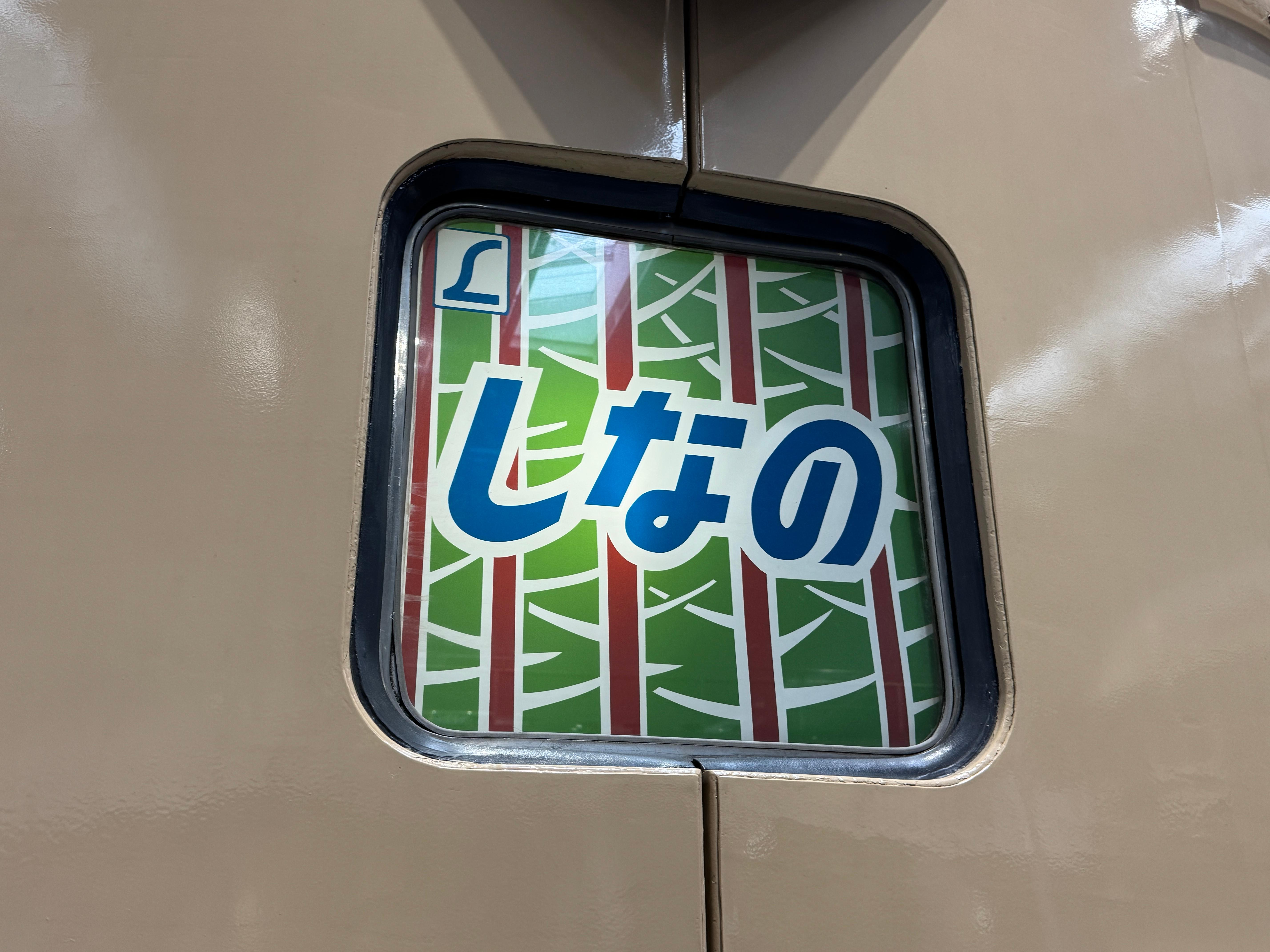 재래선 열차로 넘어가면 특급 시나노 헤드마크가 달린 전동차가 보이는데