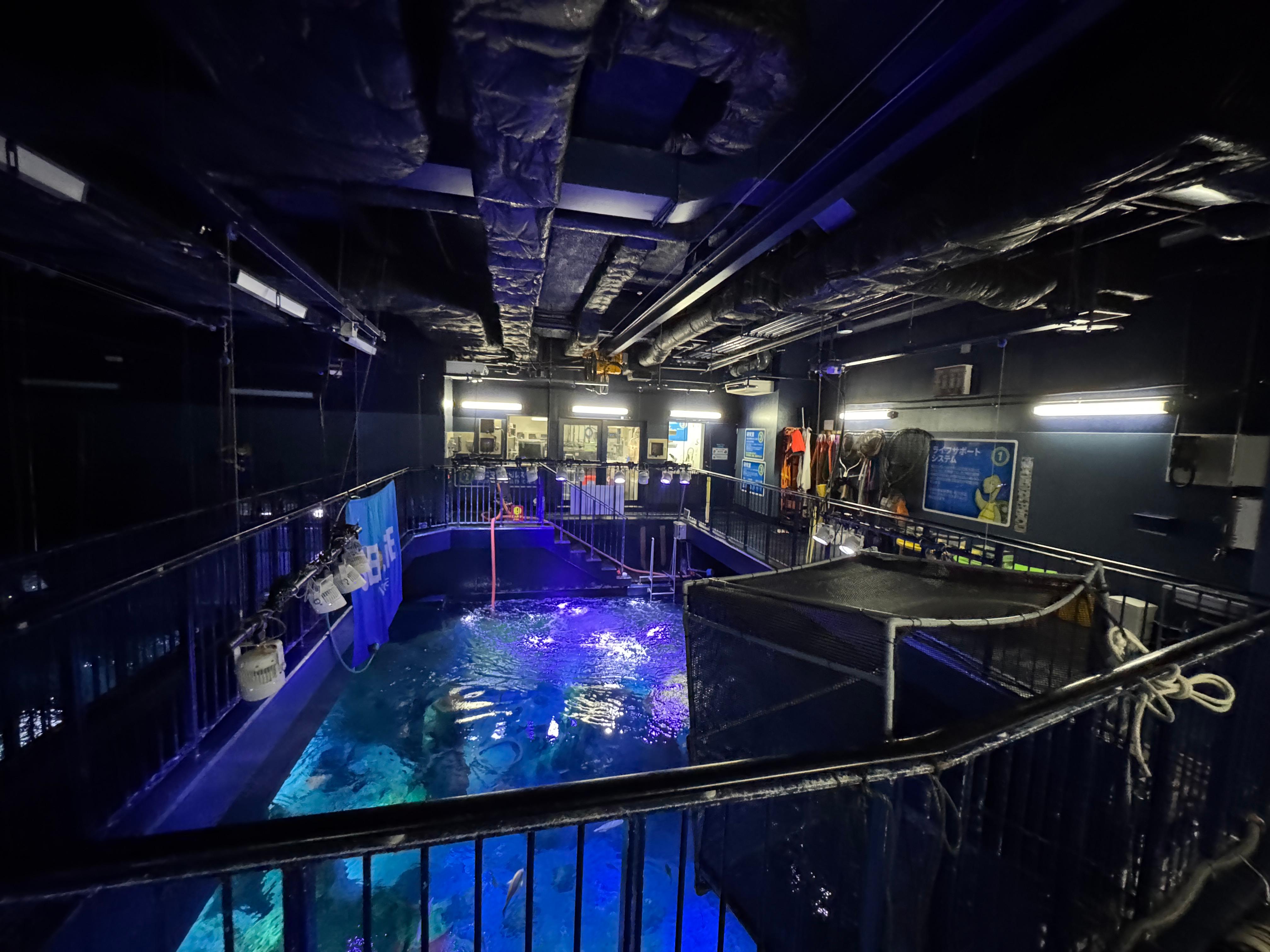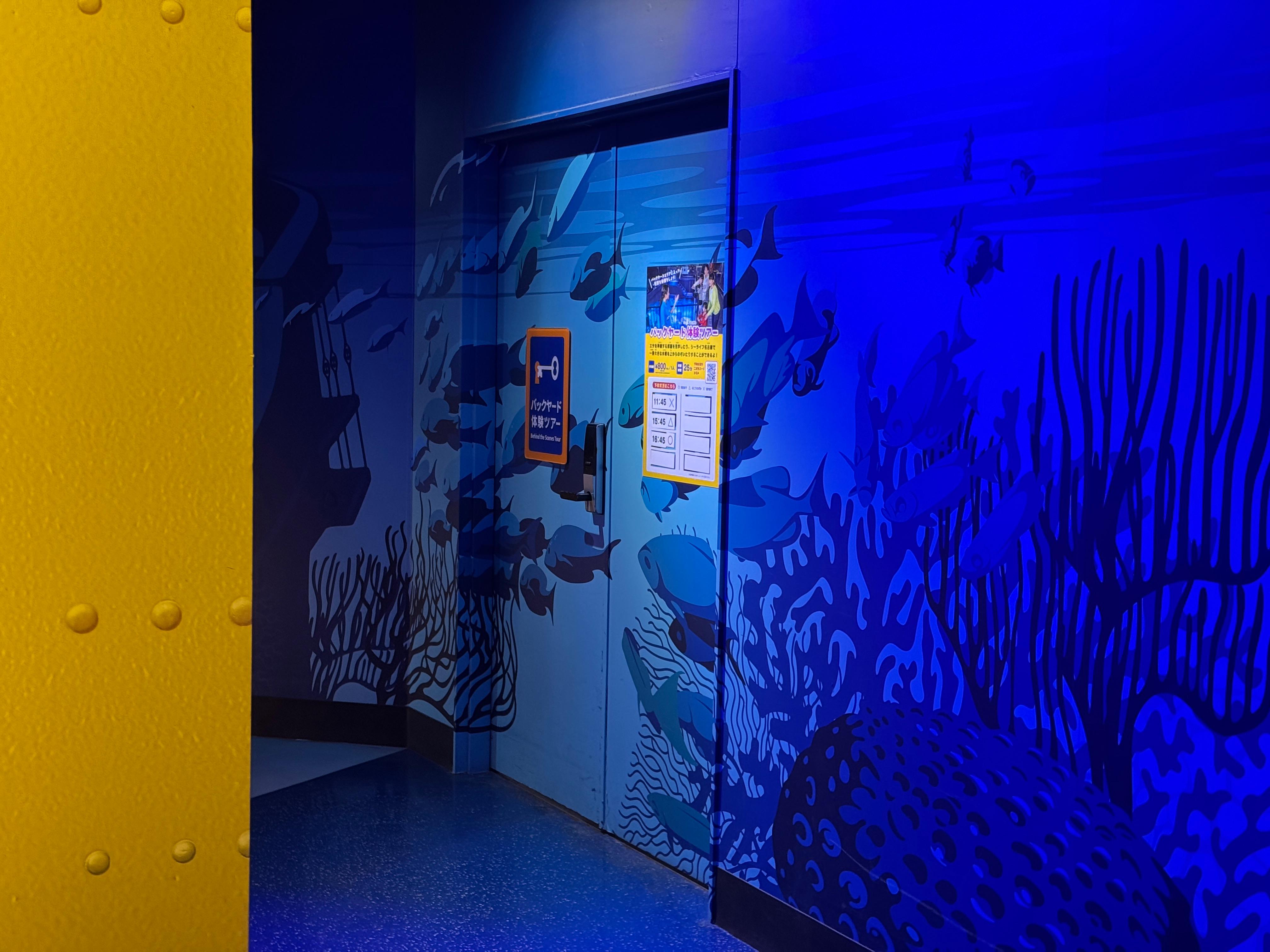 물고기들 먹이를 준비하거나 수조 점검을 위해 물속으로 들어가는 백 야드를 들어가 보는 체험 프로그램.