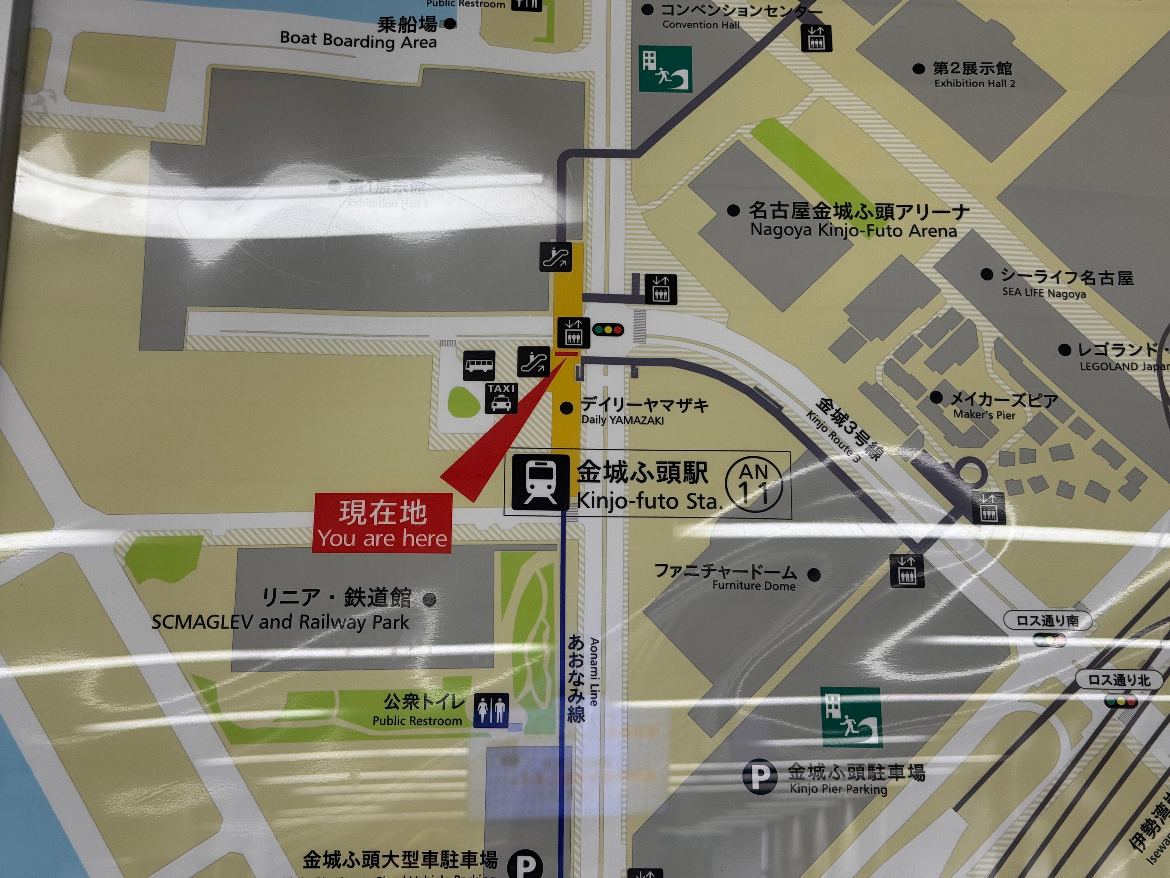 아오나미선의 종점 킨죠후토역에는 리니어 철도관 외에도 랜드마크가 여럿 있는데