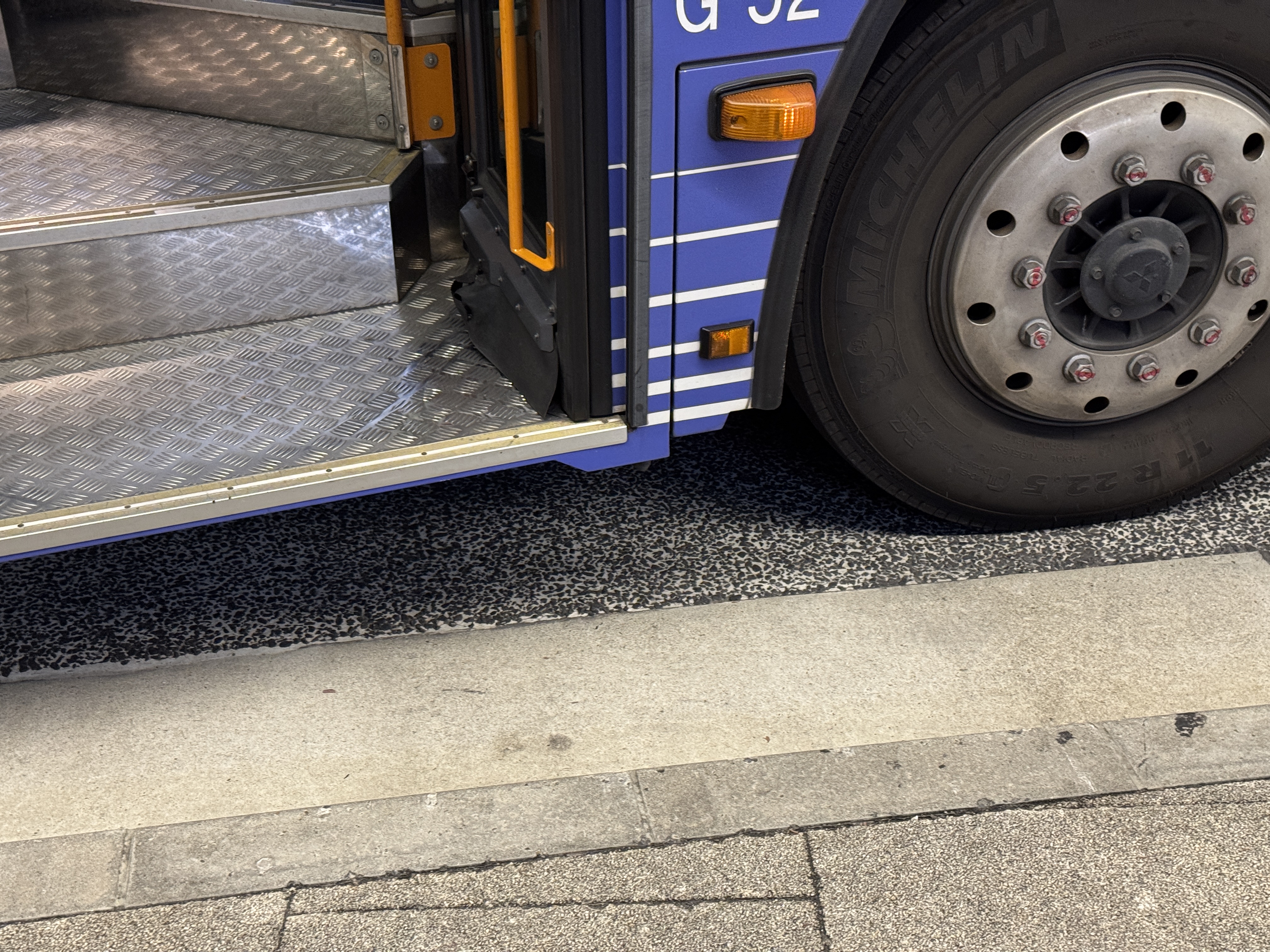 바로 옆 철골과 딱 붙어 버스가 달리는 것을 알 수 있는데