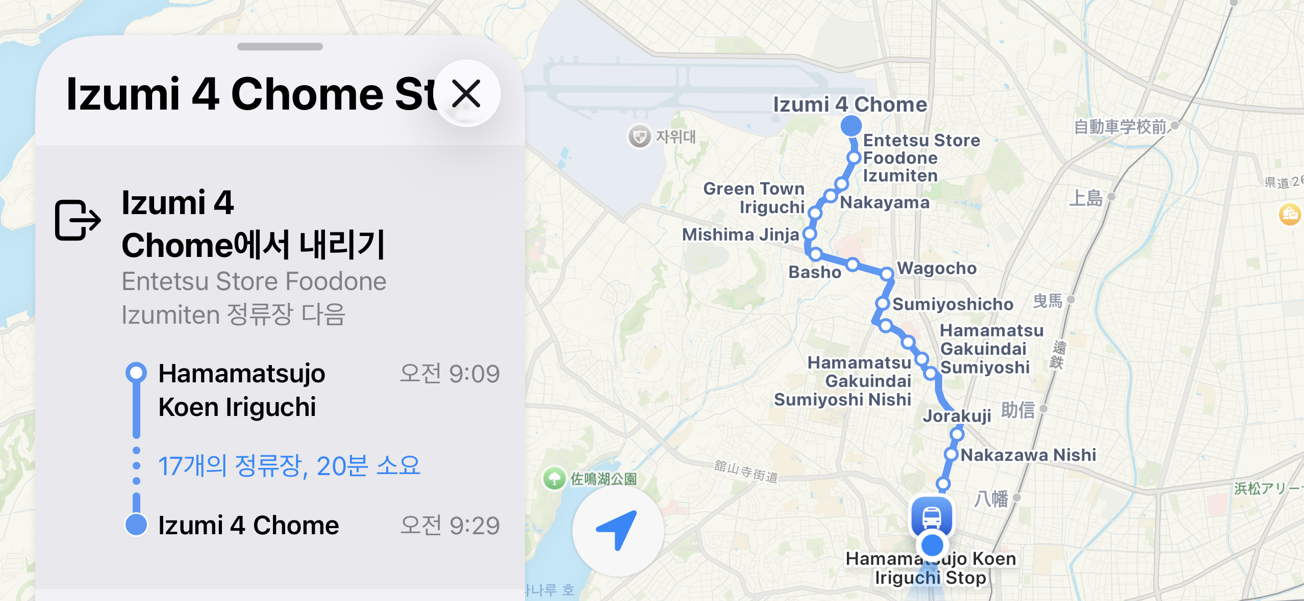 하마마츠죠코엔이리구치(浜松城公園入口) 버스 정류장에서