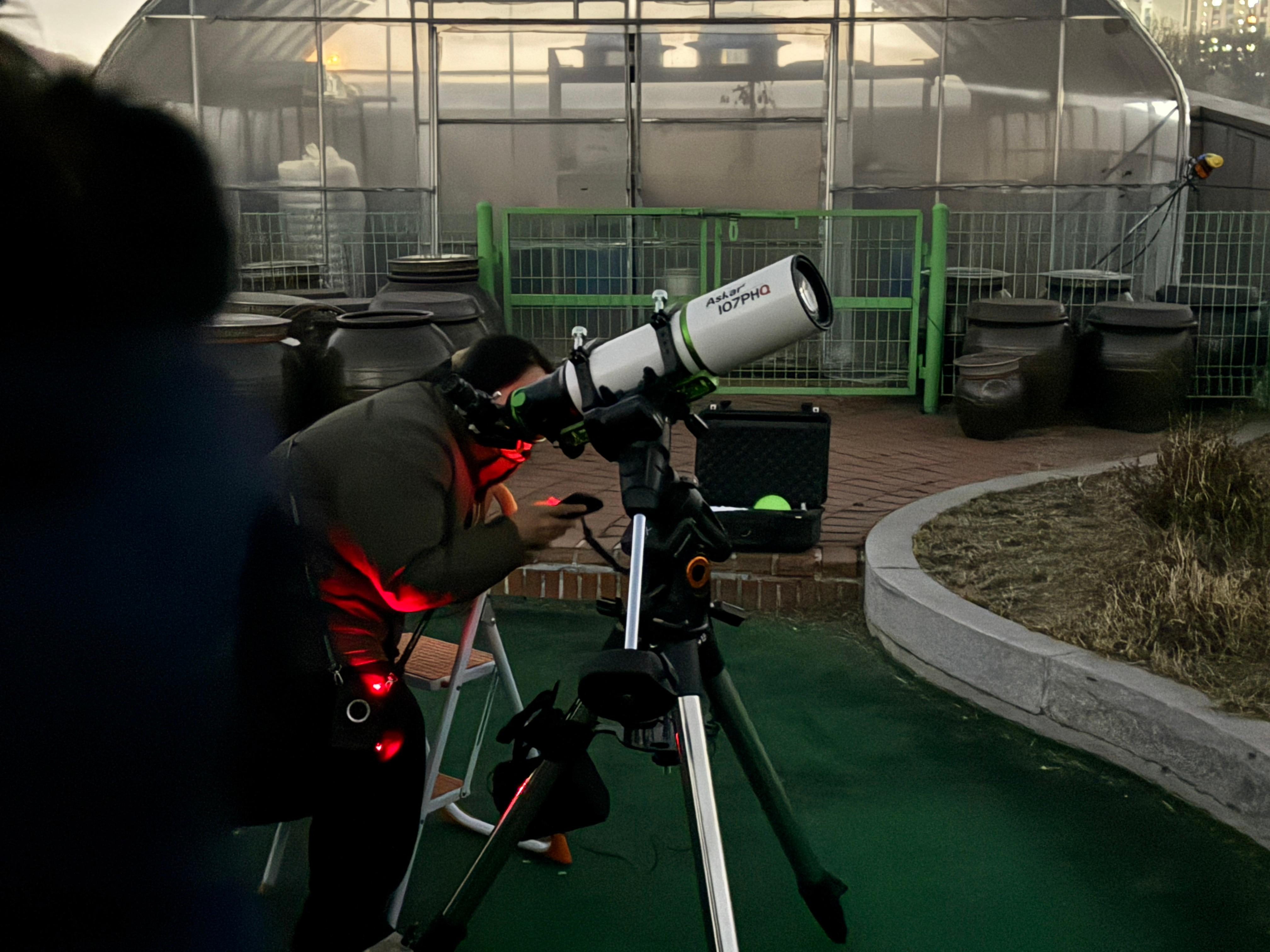옥상에 있는 보조 망원경으로는 보기 어려우니