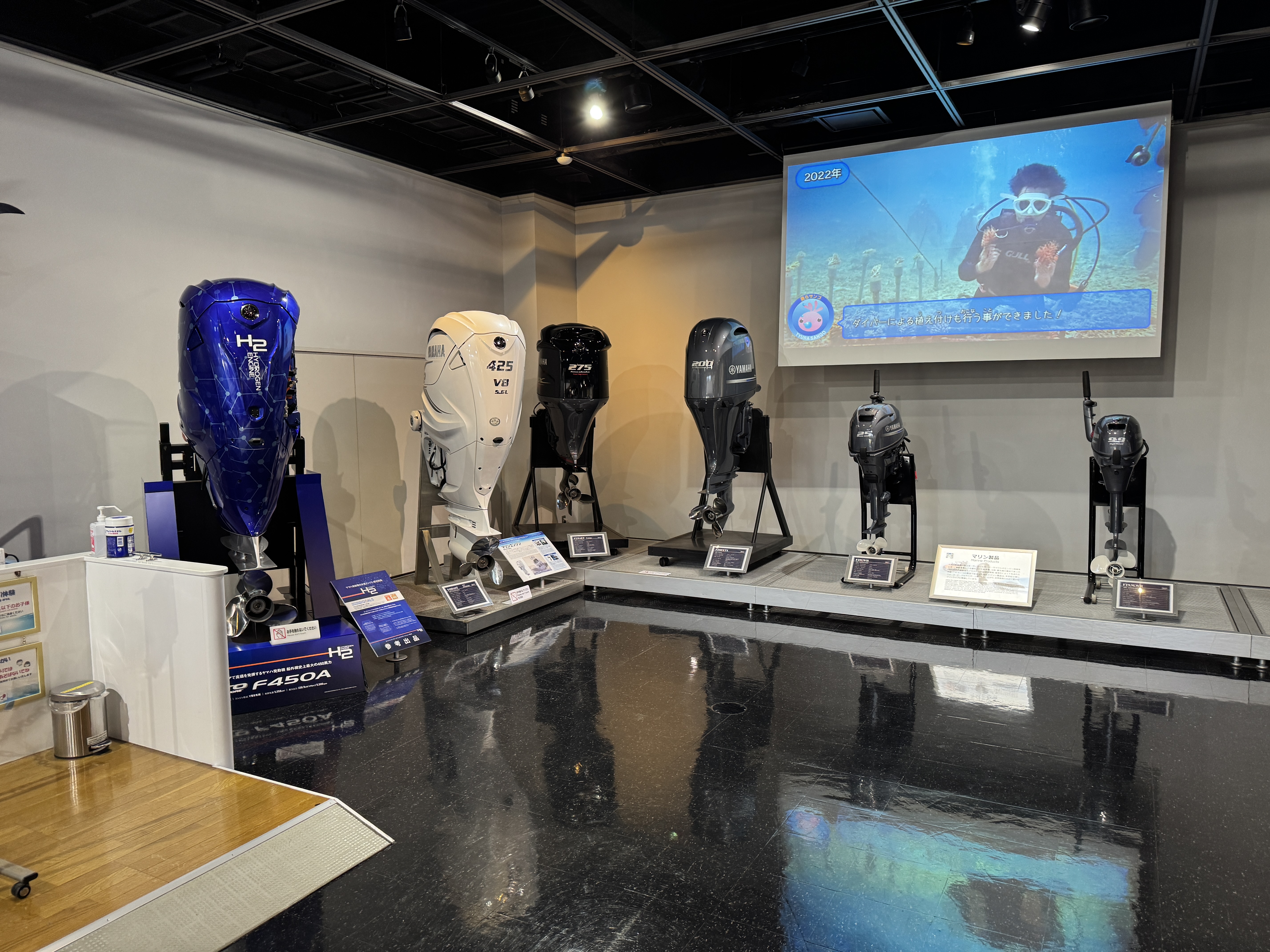 야마하 발동기 역사 전시실이 나옵니다.