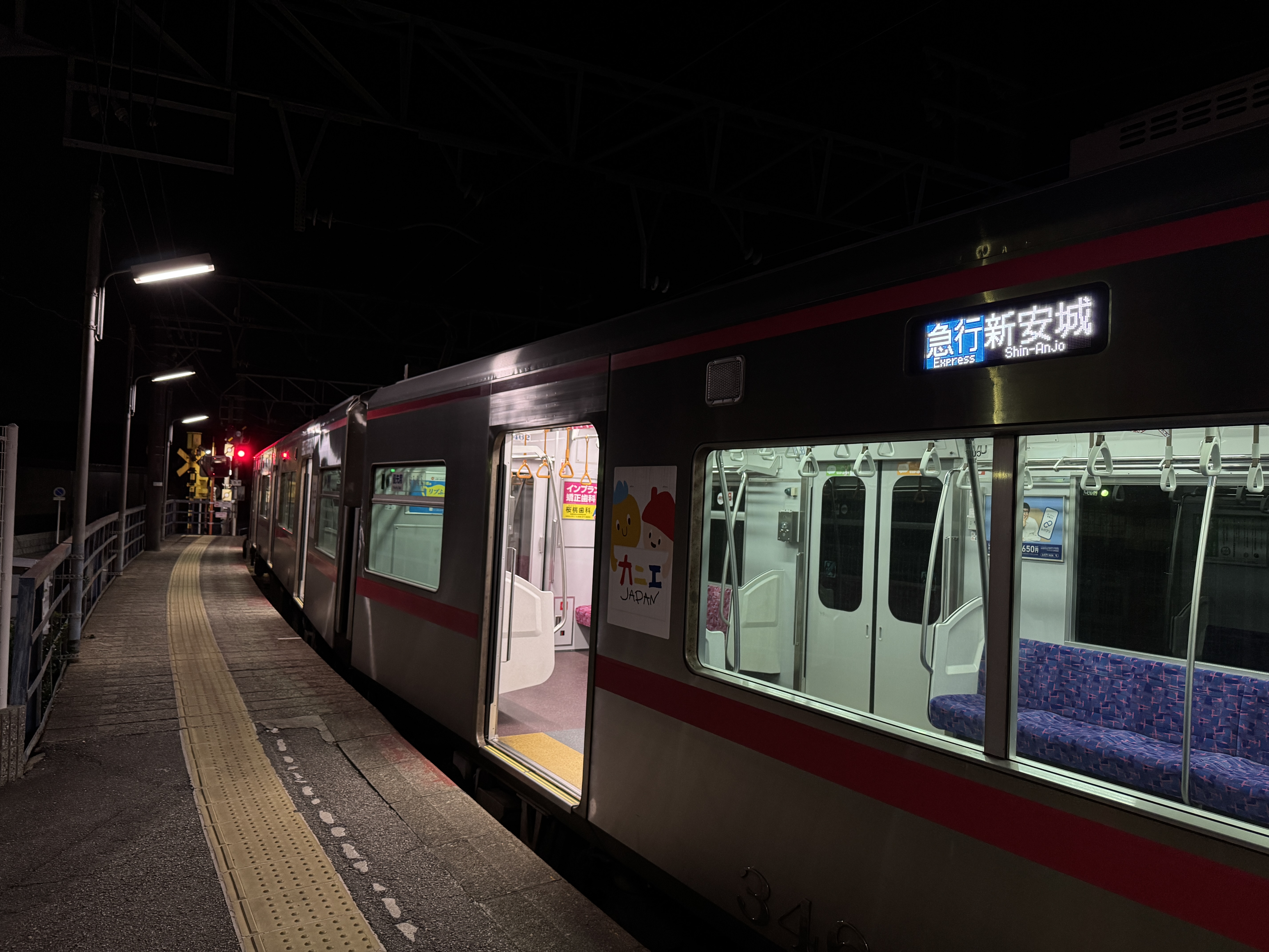 그러니 신안죠역에서 메이테츠 특급으로 갈아타