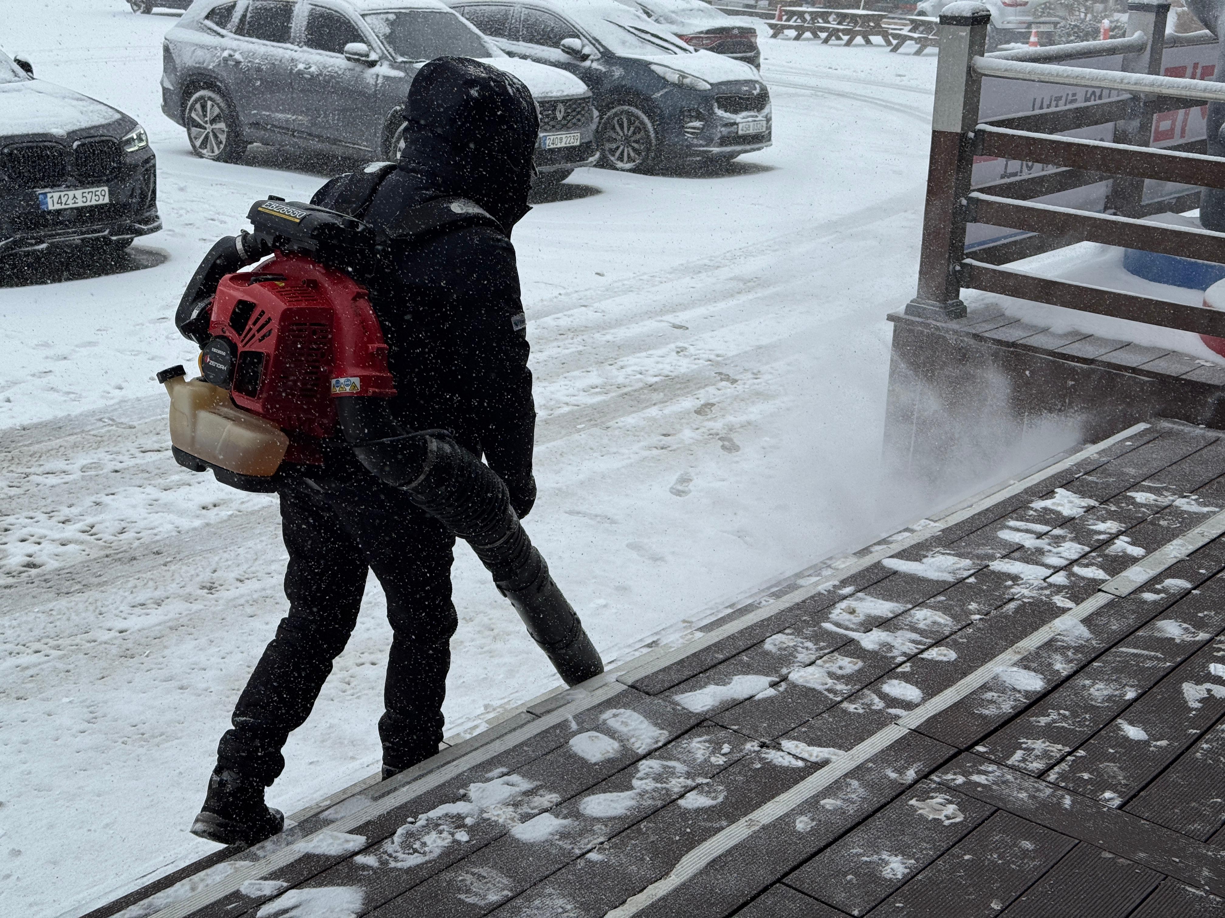 더 오래 있다가는 차에 쌓일 눈이 감당이 안 될 테니