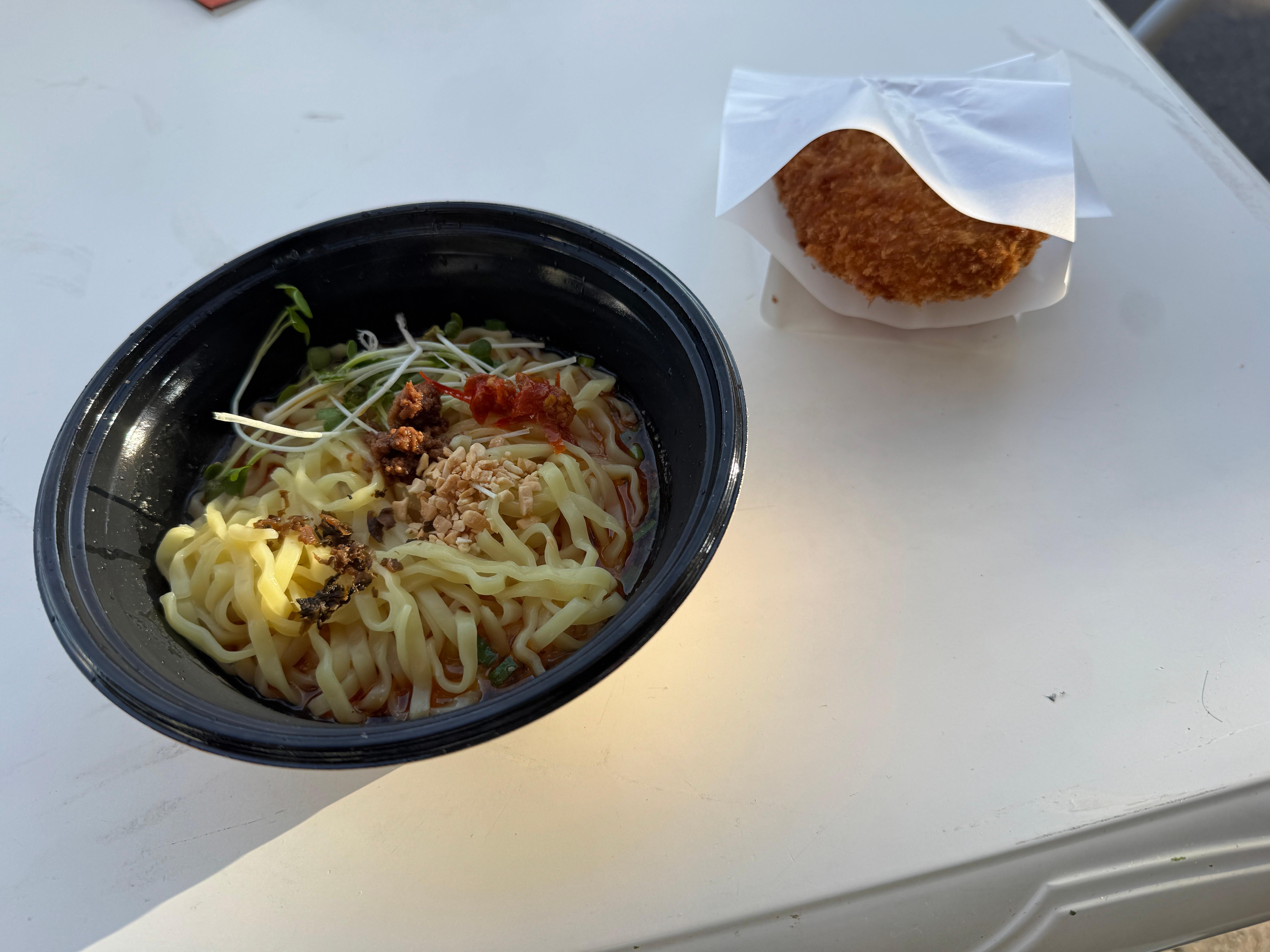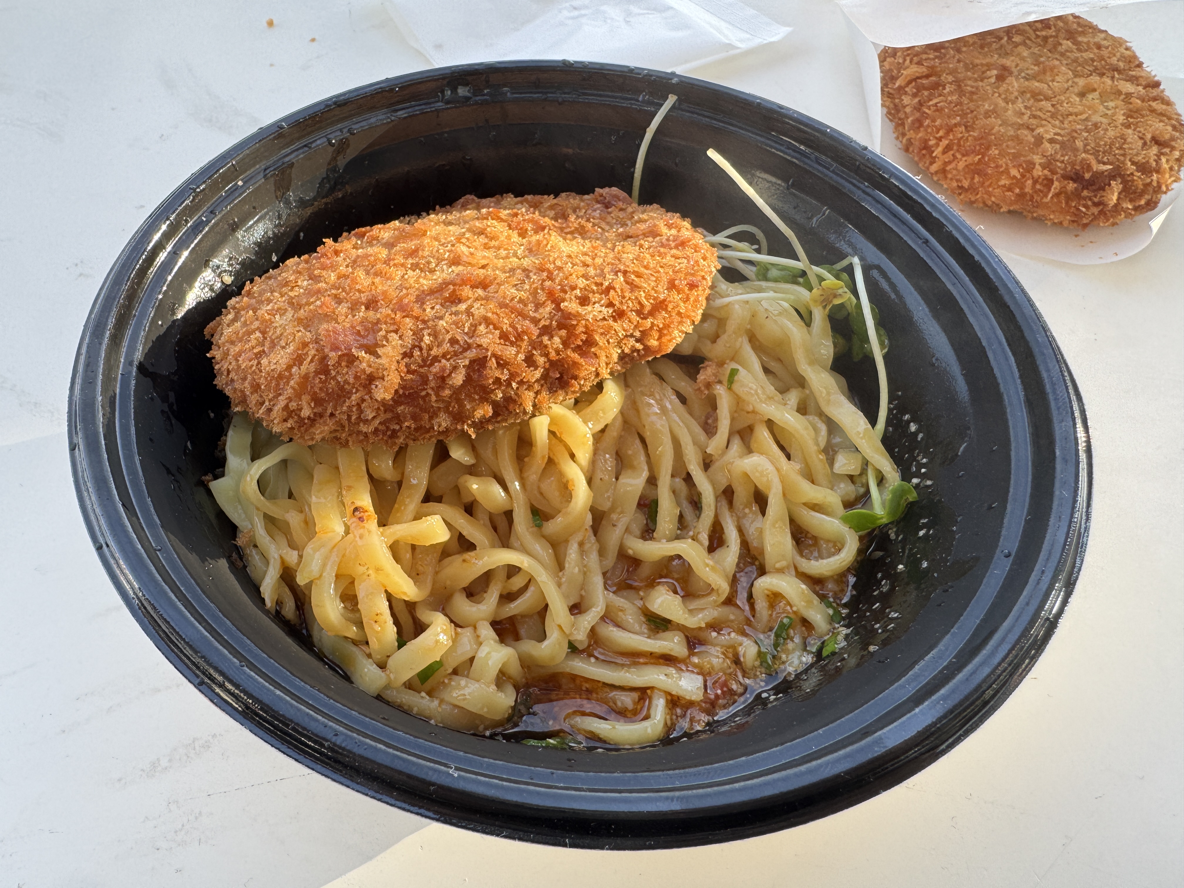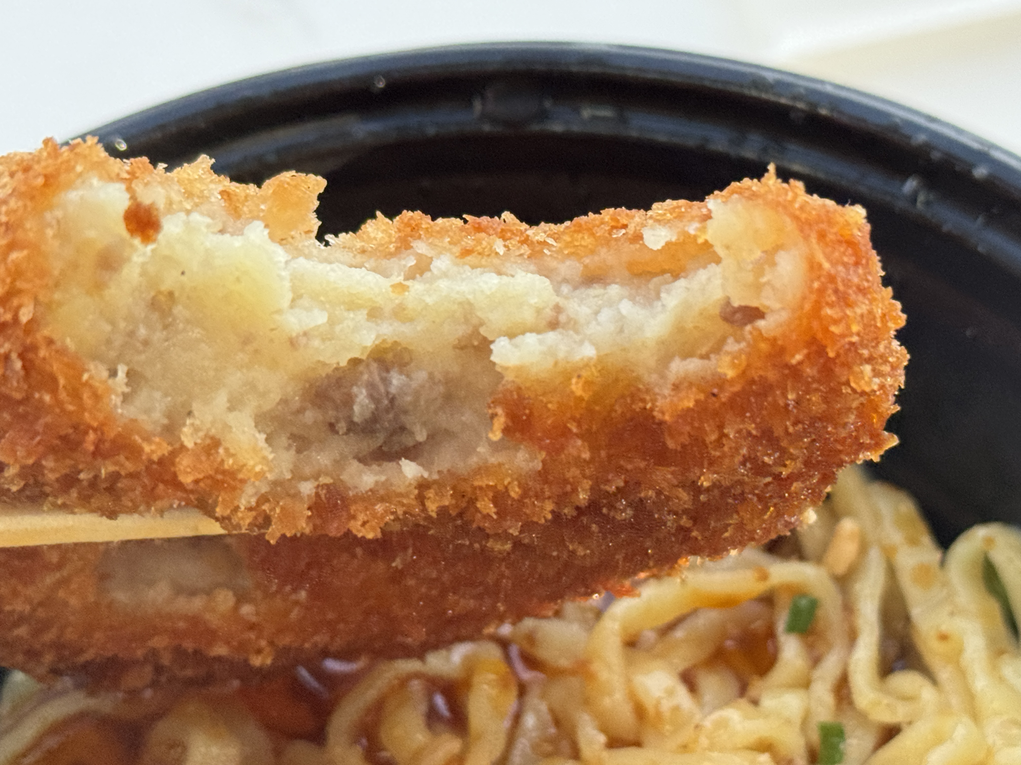 국물이 없는 사천 탄탄면과 점보 비프 코로케 2개를 산 뒤