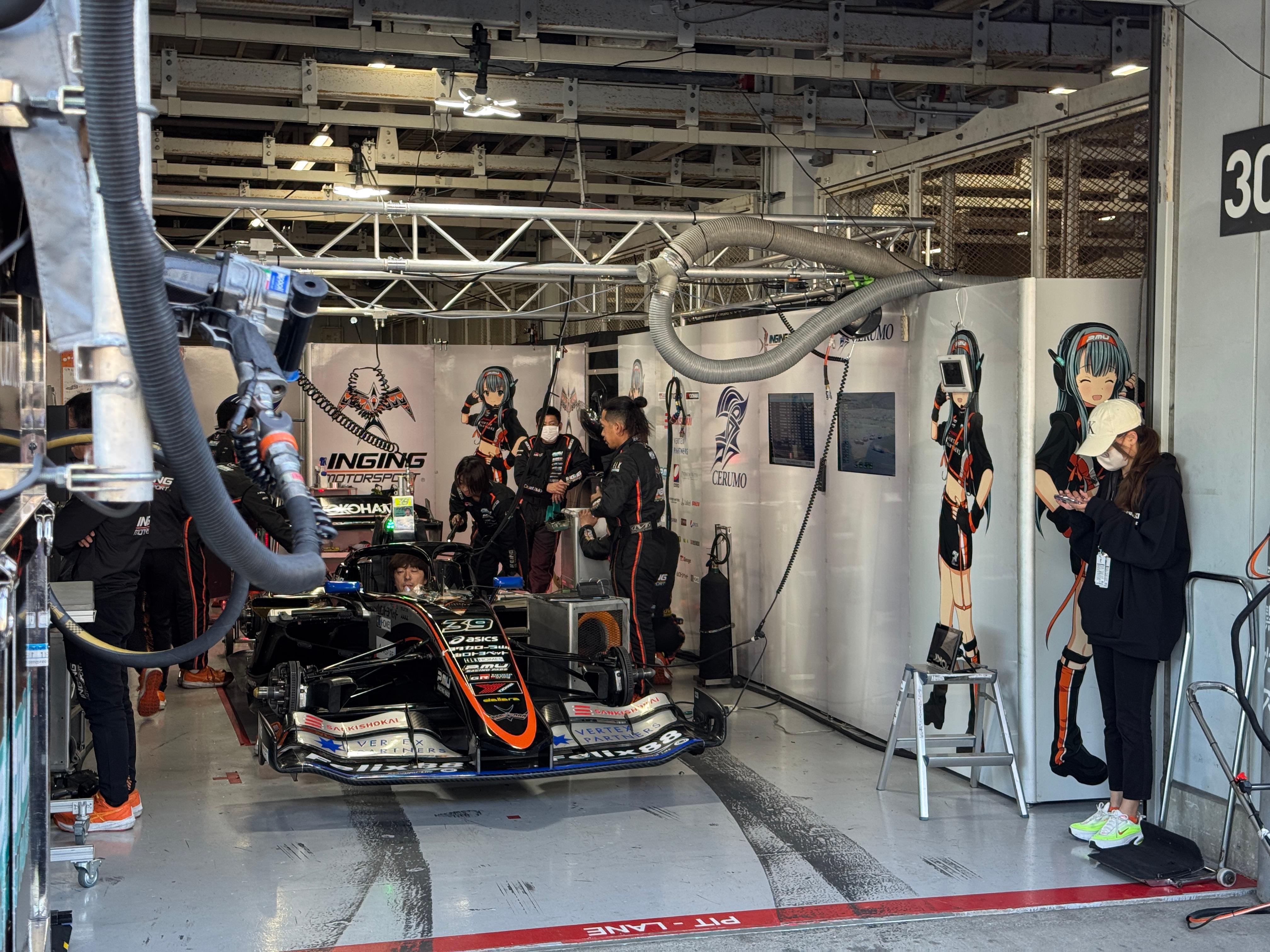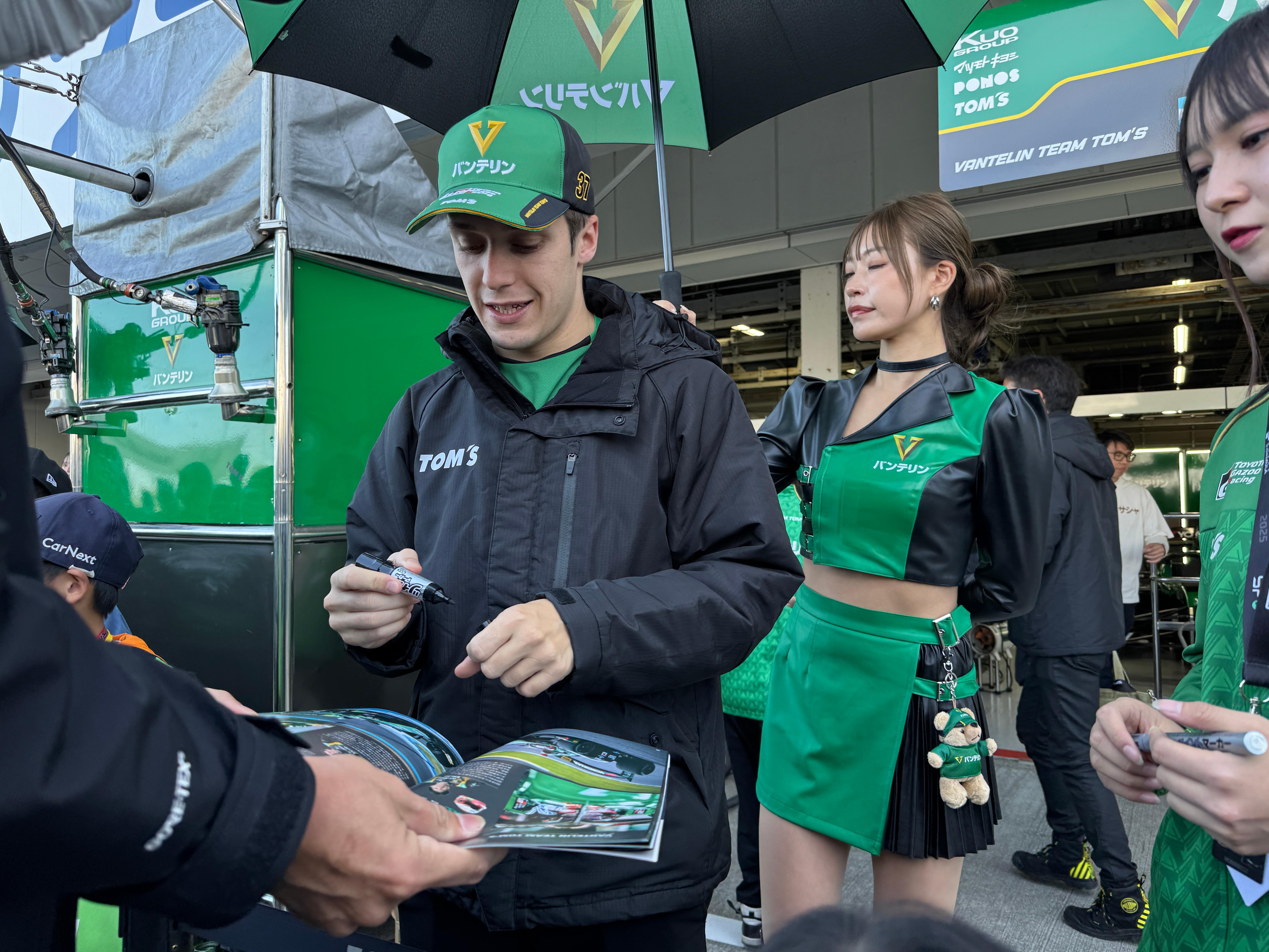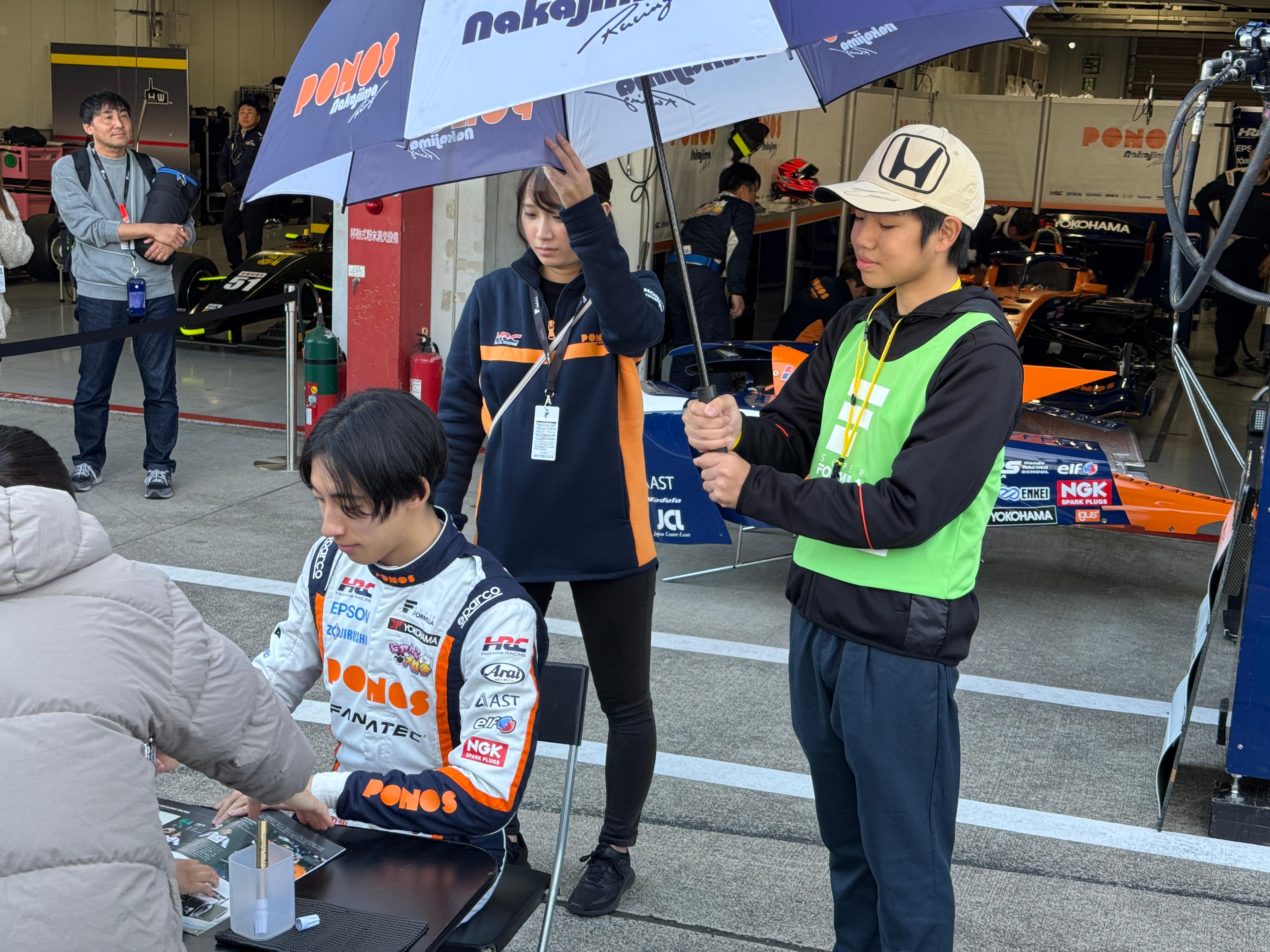 마침 포모스 나카지마 레이싱 차고 앞에서 선수 사인회가 열려서