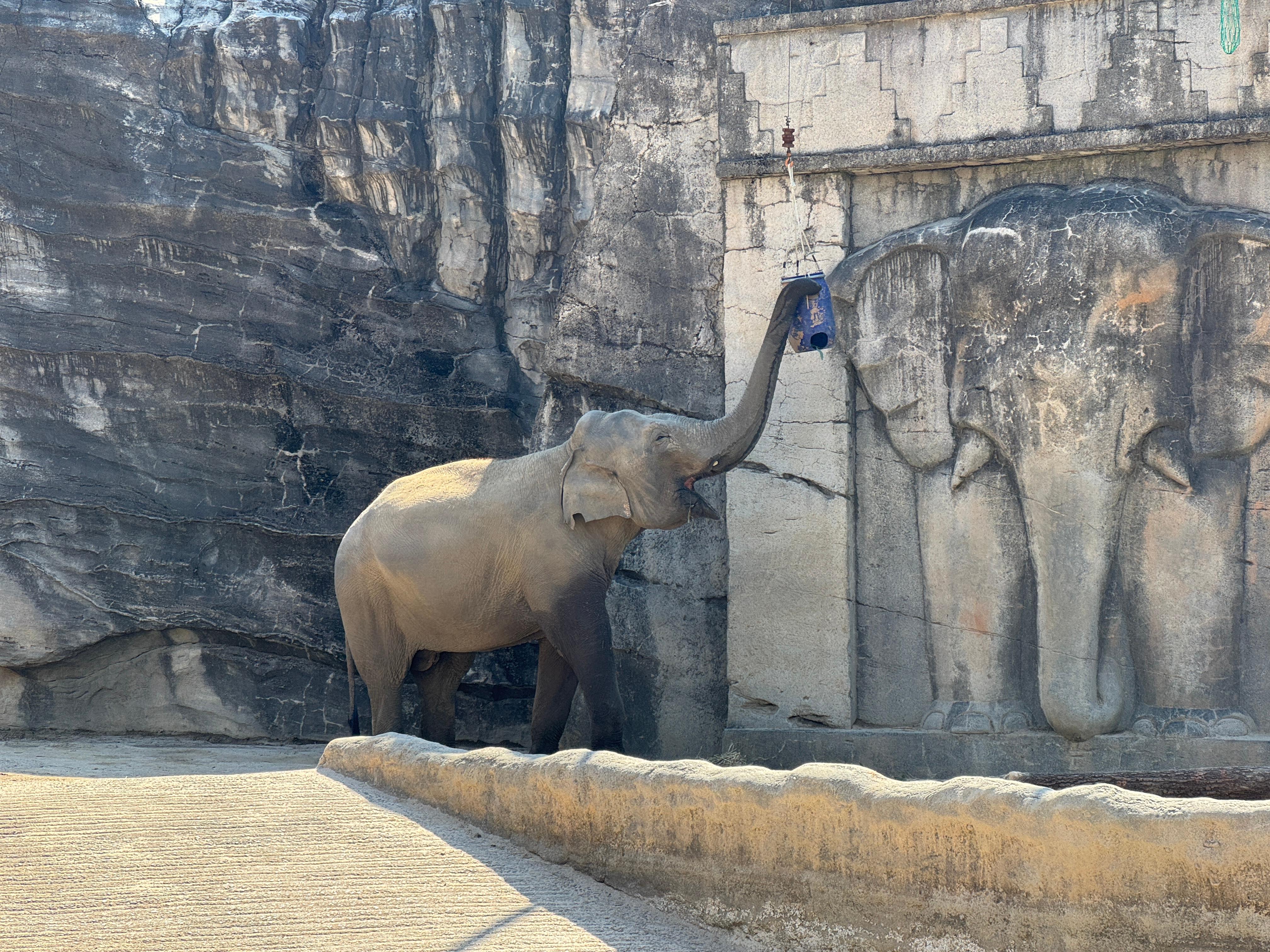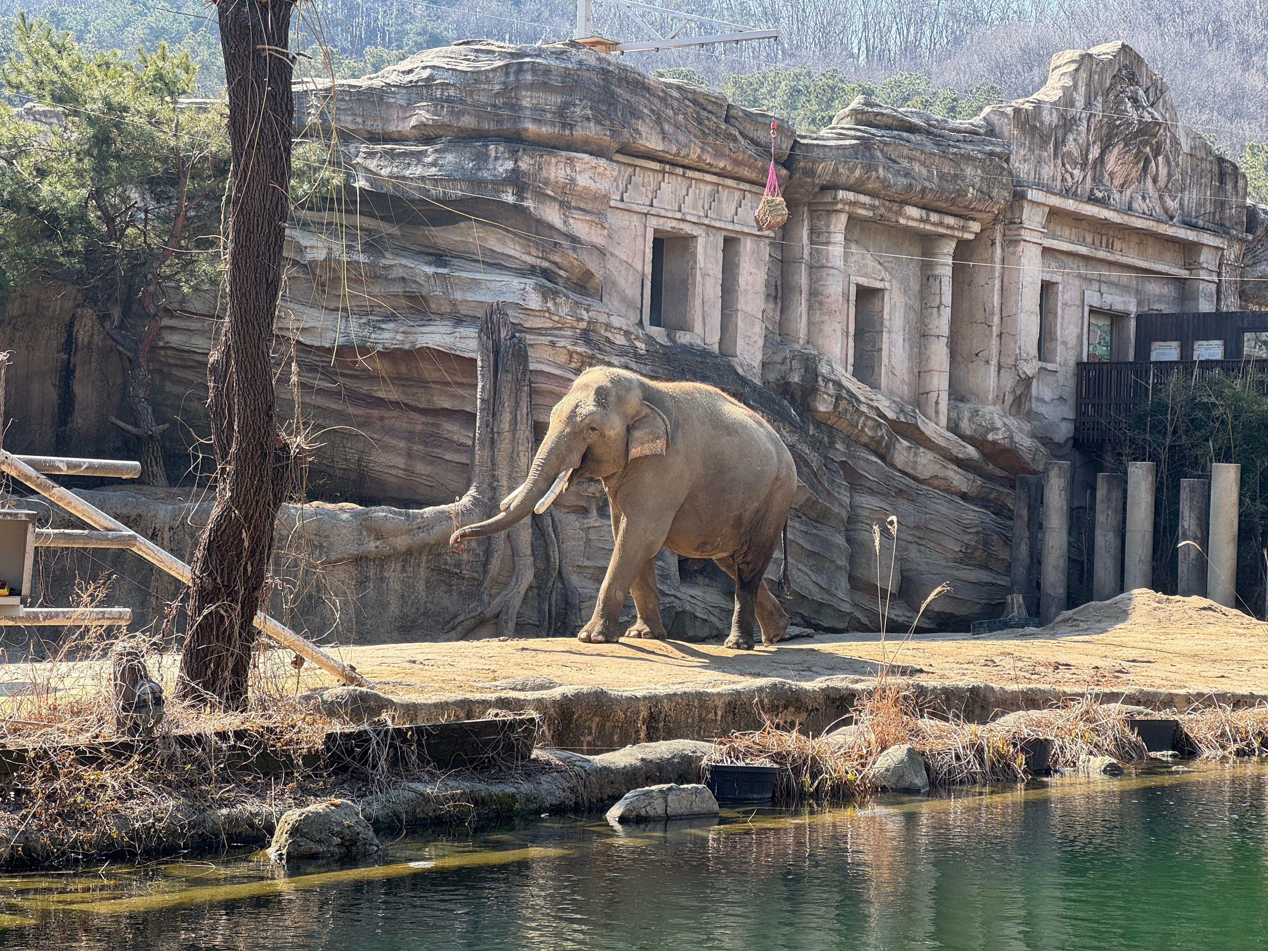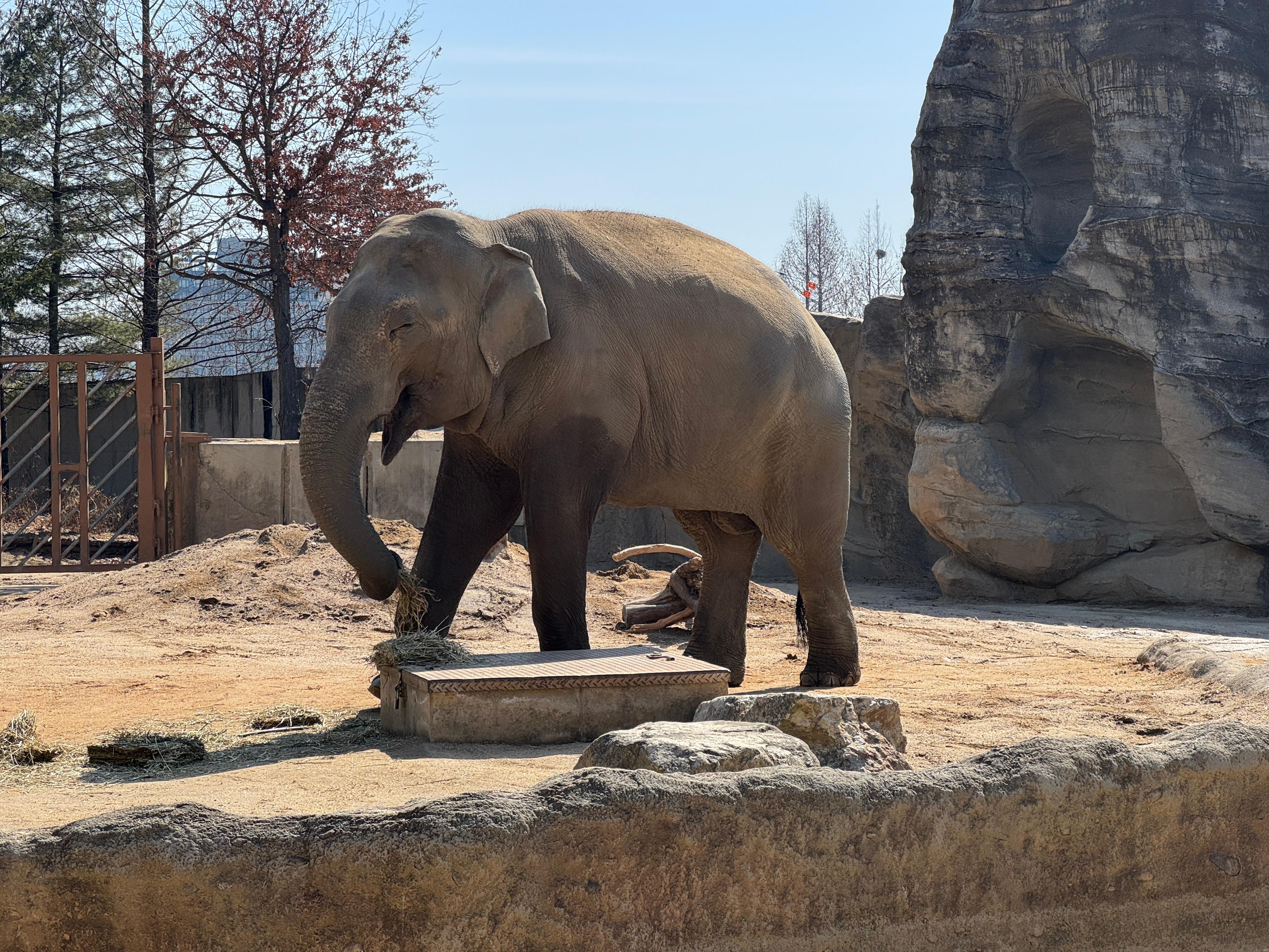 반대편 구역에서 터벅터벅 걷고 있는 아시아코끼리가 보입니다.