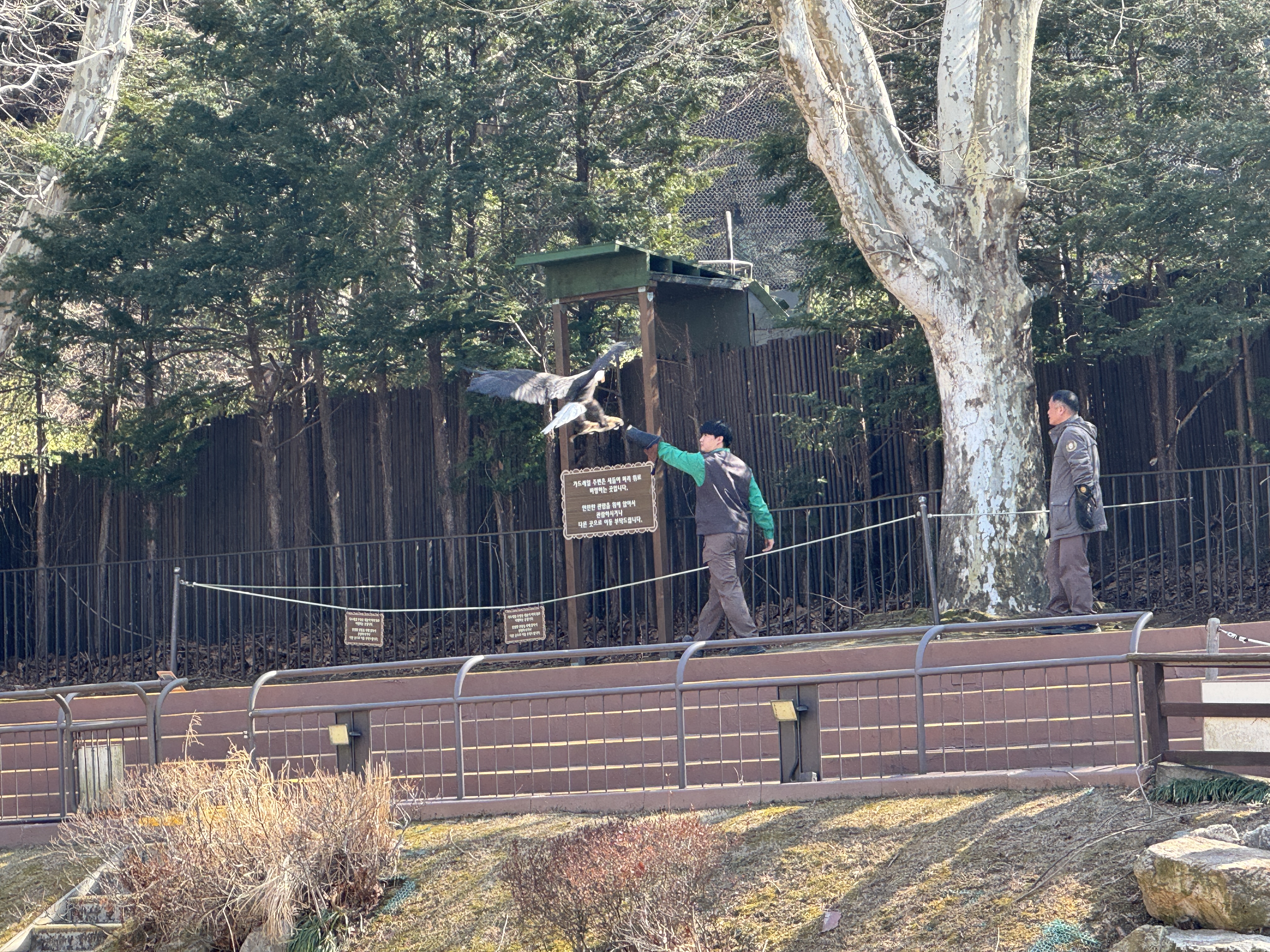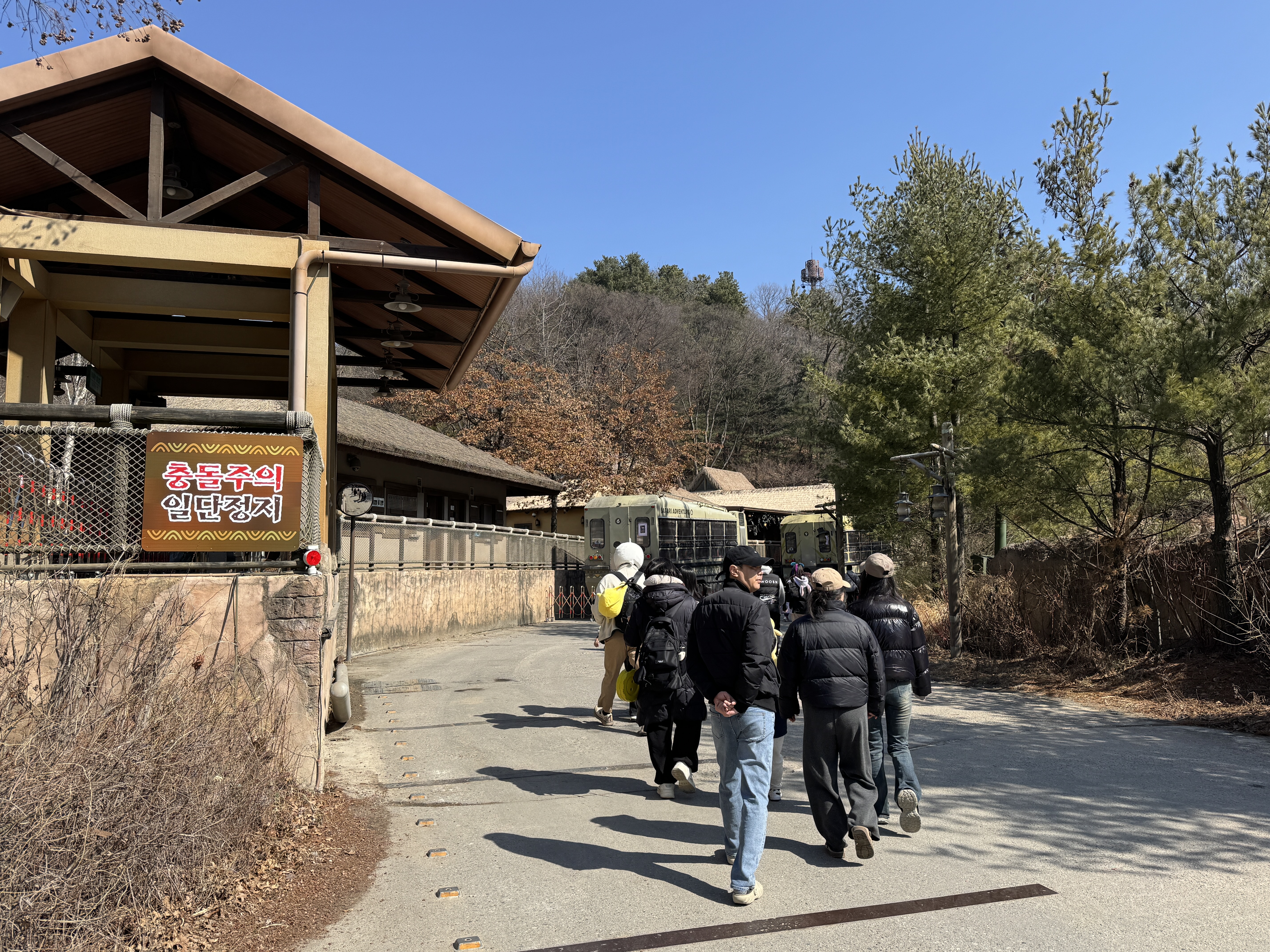 울타리 밖 노란선 밖에서 동물을 봐야 하니