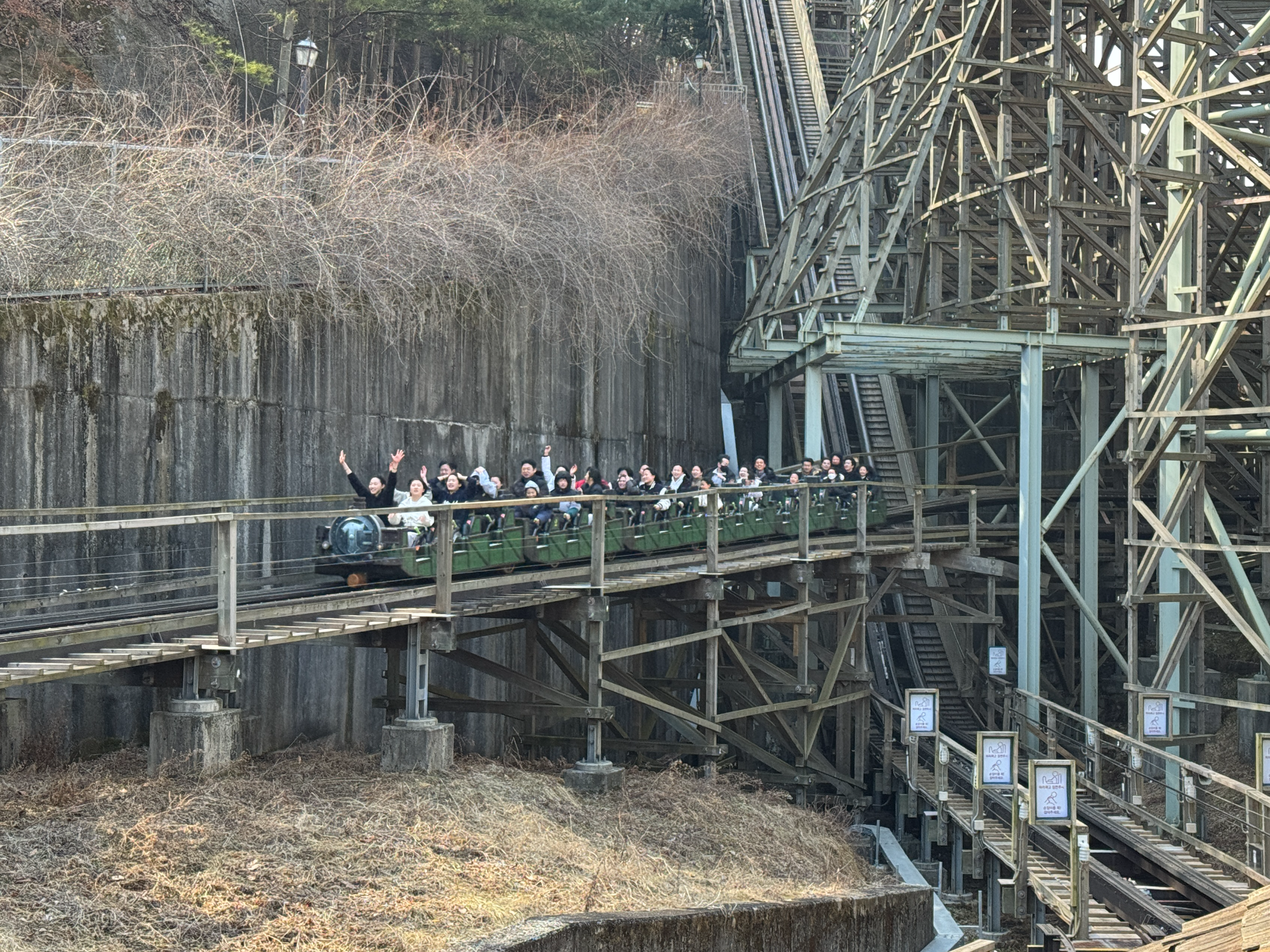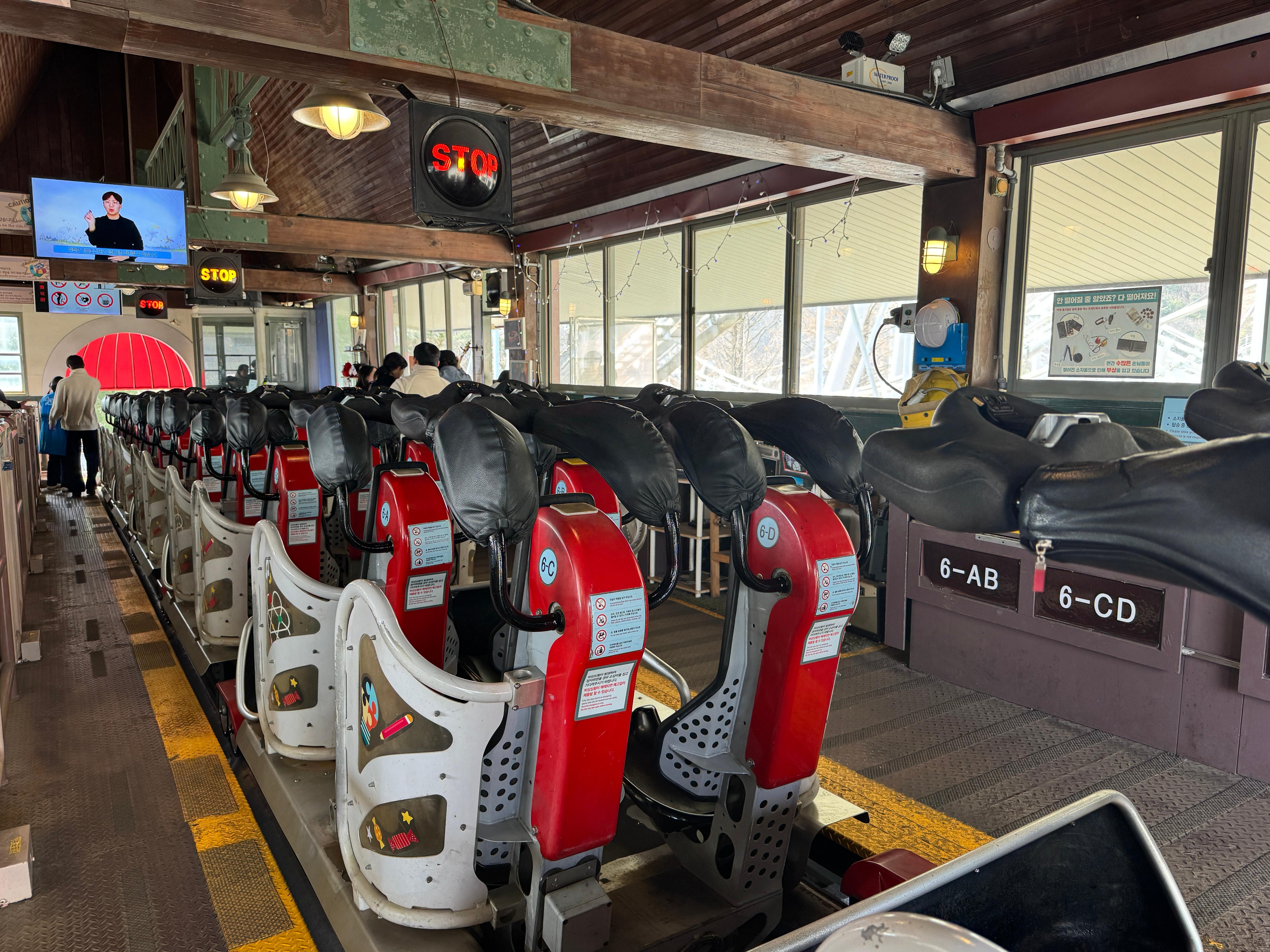 맨 뒷자리에 타서 편안하게 롤러코스터를 즐기고
